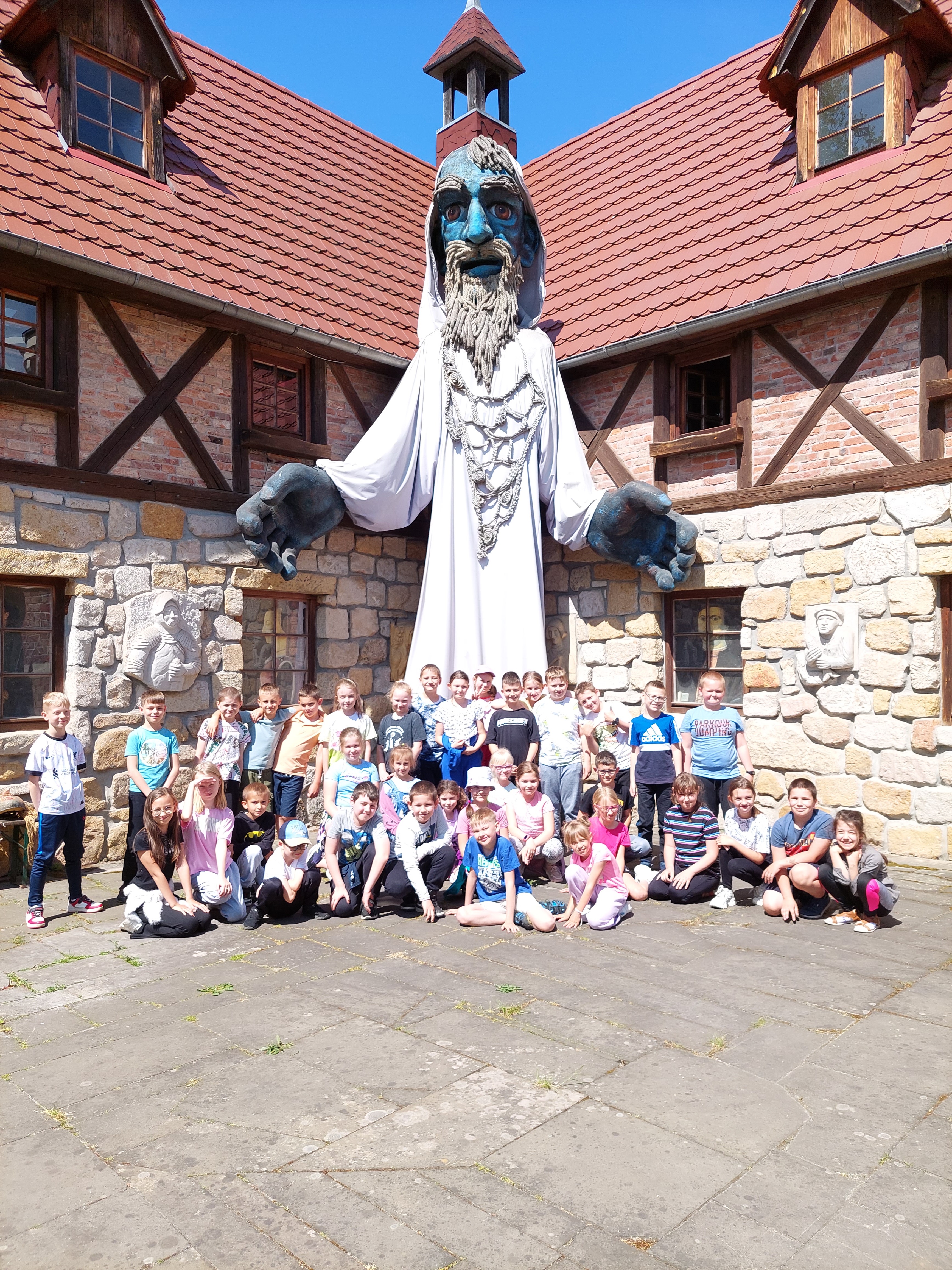 Pod okiem instruktorów uczniowie zgłębiali tajniki litografii i aktorstwa. Podczas przedstawienia dzieci wysłuchały kilku legend przedstawiających historię regionu, ilustrowanych lalkami naturalnej wielkości. Uczniowie zwiedzili również Zamek Śląskich Legend. Kolejną atrakcją była Arka Noego, znajdująca się nieopodal zamku, gdzie uczniowie oglądali dzieła sztuki sakralnej z różnych zakątków świata. Ostatnim punktem programu był Gród Piastowski a w nim możliwość wejścia do Konia Trojańskiego oraz wspinaczki na wieże warowne. Podczas wycieczki dzieci, jak za sprawą czarodziejskiej różdżki, mogły przenieść się w świat sztuki, baśni i historii.