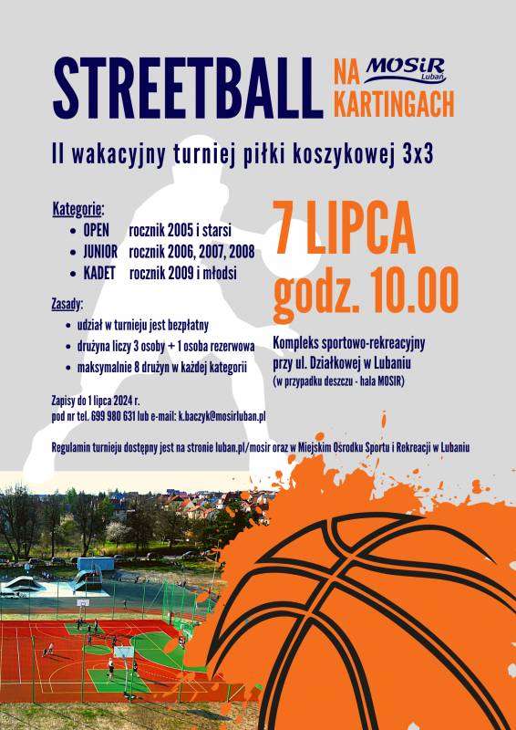 - Zapisy do dnia 1 lipca 2024 r. (ilość miejsc ograniczona-max 8 drużyn w każdej kategorii), pod nr tel. 699 980 631 lub e-mail: k.baczyk@mosirluban.pl