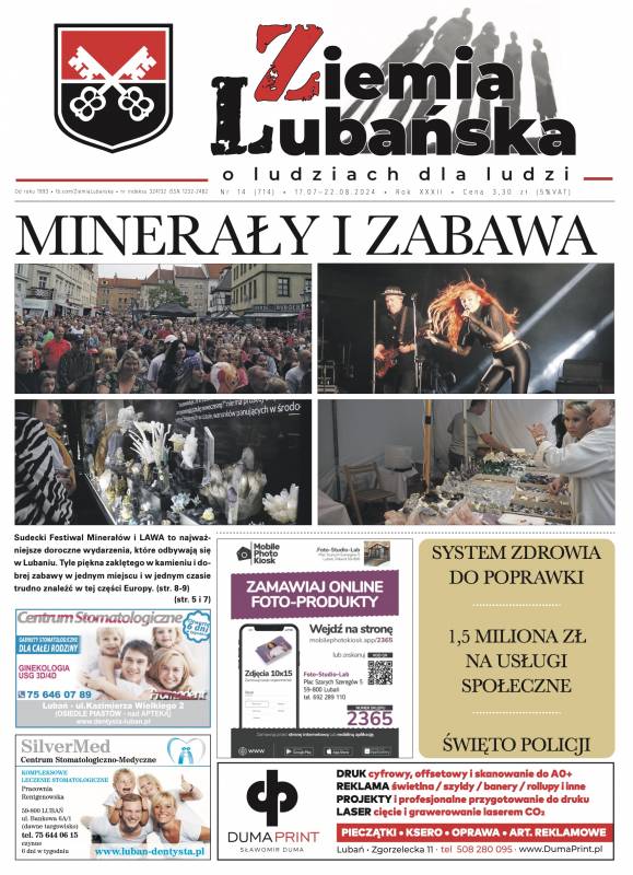 W wydaniu relacjonujemy obszernie Sudecki Festiwale Minerałów i LAWĘ'24; piszemy o poprawkach systemu zdrowia oraz prezentujemy list czytelniczki o lubańskim szpitalu; przyglądamy się co dzieje się aktualnie z lubańskim brydżem oraz wspominamy o dziesiątkach ważnych bieżących informacjach z życia miasta i powiatu.