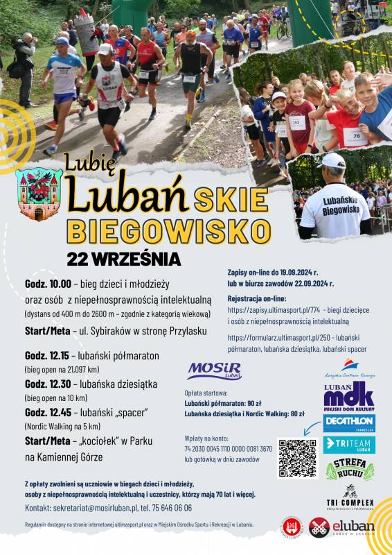 2) lubański półmaraton (21,097 km), lubańska dziesiątka (10 km), lubański spacer (Nordic Walking 5 km) - zapisy on-line: https://formularz.ultimasport.pl/250