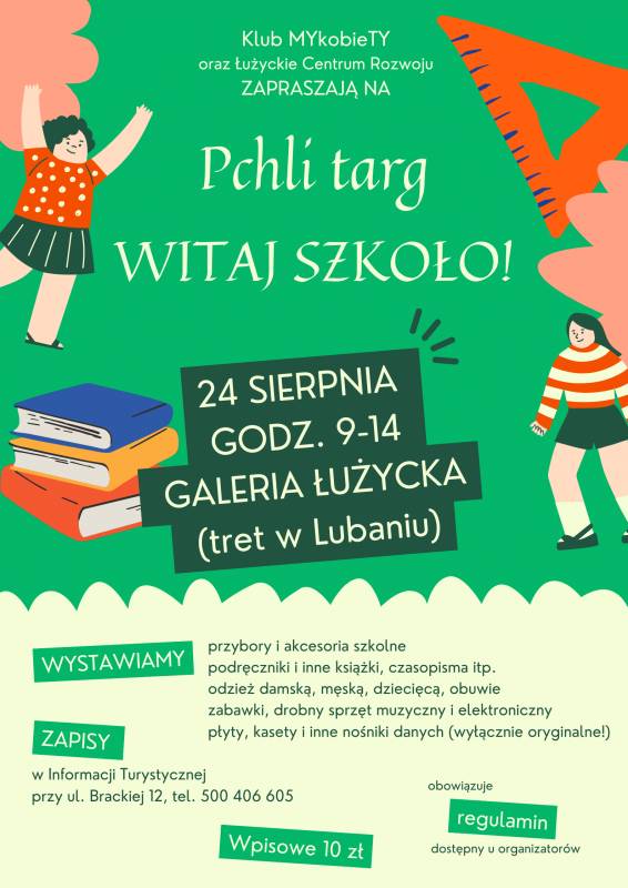 Pchli targ "Witaj szkoło!" odbędzie się 24 sierpnia w godz. 9.00-14.00 w Galerii Łużyckiej (tret w Lubaniu).