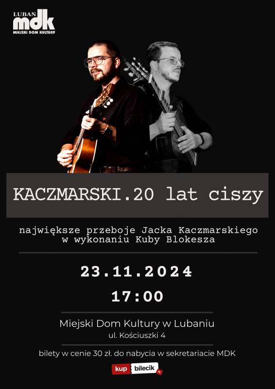 BILETY w cenie 30 zł. do nabycia w sekretariacie MDK lub online: https://www.kupbilecik.pl/imprezy/141625/Luba%C5%84/Kuba+Blokesz/