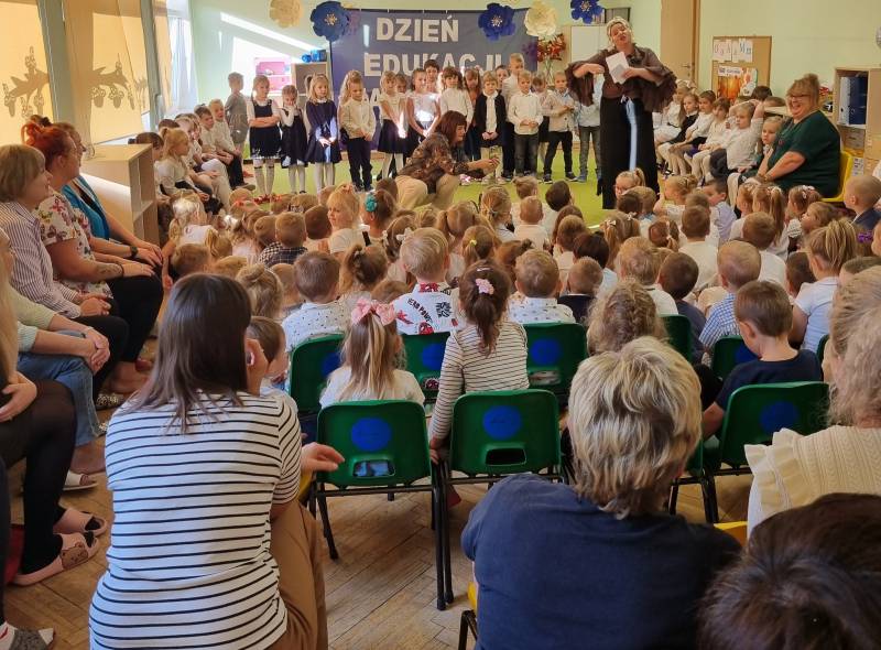 Tego dnia w naszym przedszkolu dzieci poprzez śpiew i recytowane wiersze wyraziły swoją wdzięczność nauczycielom i personelowi przedszkola za za serce, opiekę i trud włożony w ich edukację. Każde słowo małych artystów wzbudzało zachwyt i wzruszenie na twarzach zgromadzonych gości. Na zakończenie części artystycznej, nauczycieleoraz pracownicy przedszkola obdarowani zostali laurkami z życzeniami wykonane przez przedszkolaków, a pani dyrektor podziękowała wszystkim pracownikom za trud codziennej pracy.