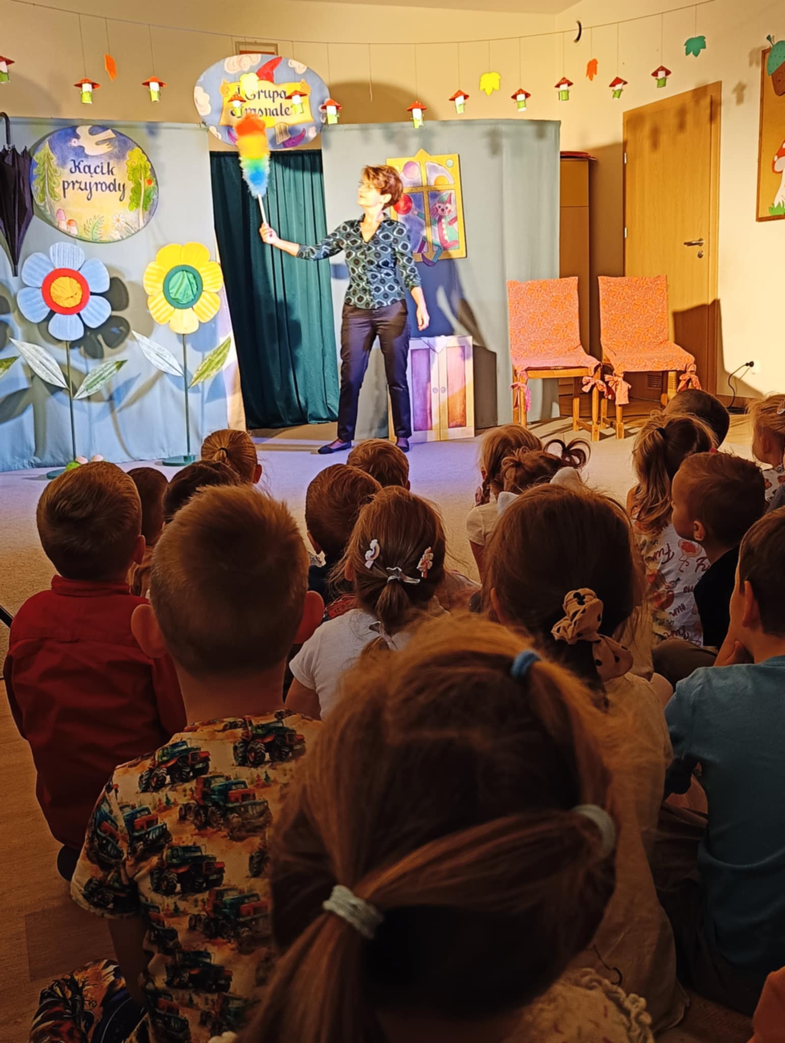 Spektakl zawierał sporą dawkę wartości wychowawczych. W tym przedstawieniu mogły wykazać się także nasze przedszkolaki, które wystąpiły razem z aktorami na scenie. Uczyły się jak należy segregować śmieci, przechodzić bezpiecznie przez ulicę, oraz opiekować się swymi pupilami. Dzieci z uwagą oglądnęły spektakl i nagrodziły aktorów brawami.