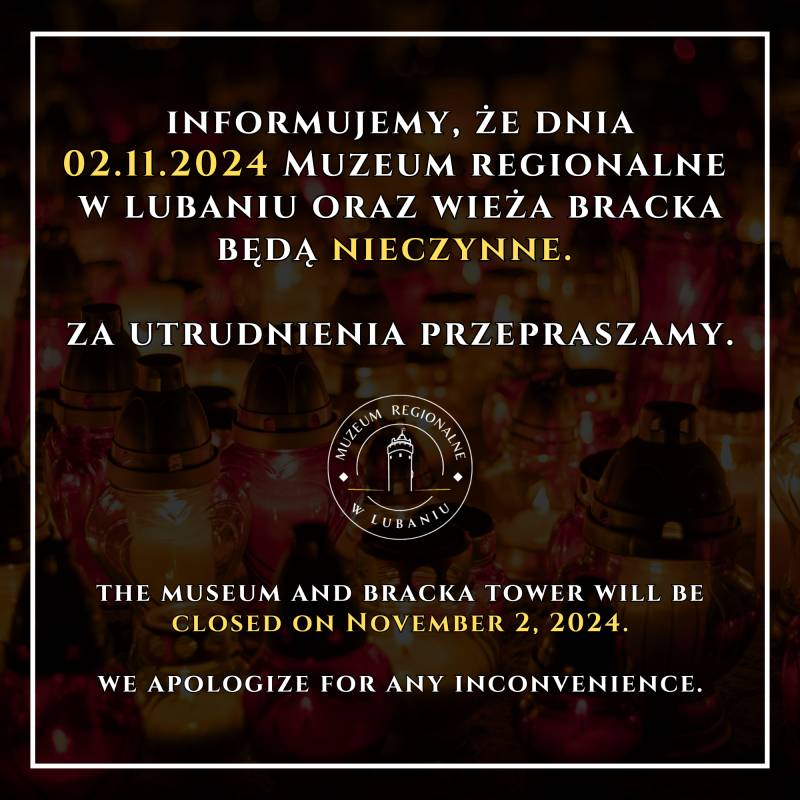 Informujemy, że dnia 02.11.2024 Muzeum Regionalne w Lubaniu oraz Wieża Bracka będą nieczynne. Za utrudnienia przepraszamy.