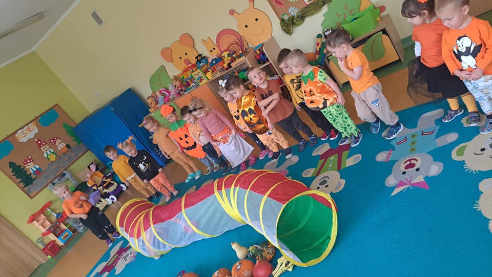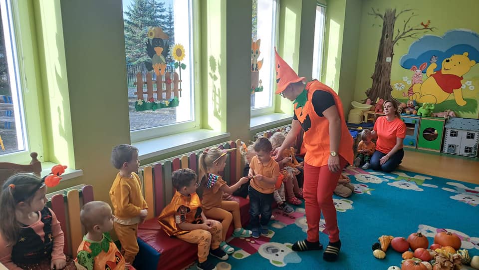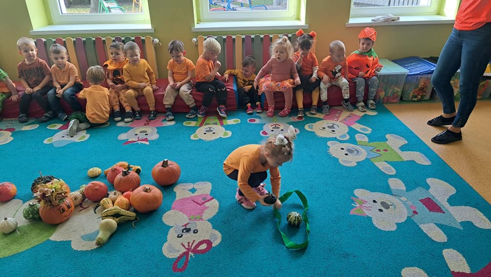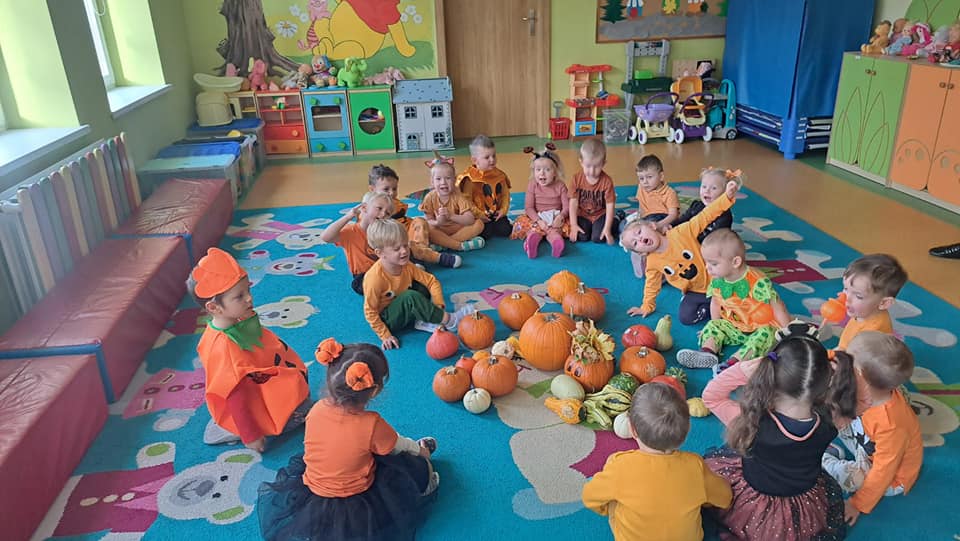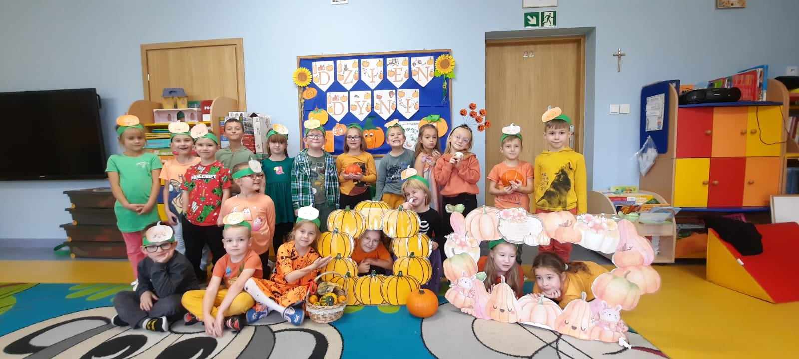 W czwartek 31 października obchodziliśmy w naszym przedszkolu Dzień Dyni, który był fantastyczną okazją do wspólnej zabawy, przepełnioną pięknym jesiennym kolorem pomarańczowym. W świętowaniu wzięły udział wszystkie przedszkolaki, które tego dnia przyniosły do przedszkola dynie o różnych kształtach, kolorach i gabarytach. Dzieci zobaczyły, co kryje się w środku dyni oraz co można z niej przyrządzić. Każda z grup przygotowała piękne prace plastyczne, które stały się ozdobą naszego przedszkola.  Nie zabrakło zawodów sportowych z wykorzystaniem dyni oraz dyniowych tańców. Niemałą atrakcją okazała się fotobudka, która zwieńczyła ten pełen atrakcji dzień.
