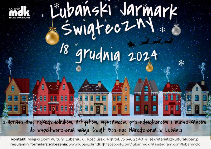 Trwają przygotowania do Lubańskiego Jarmarku Świątecznego 2024. Wydarzenie odbędzie się w środę 18 grudnia 2024r. Zapraszamy wystawców do rezerwacji stoisk wystawienniczych.