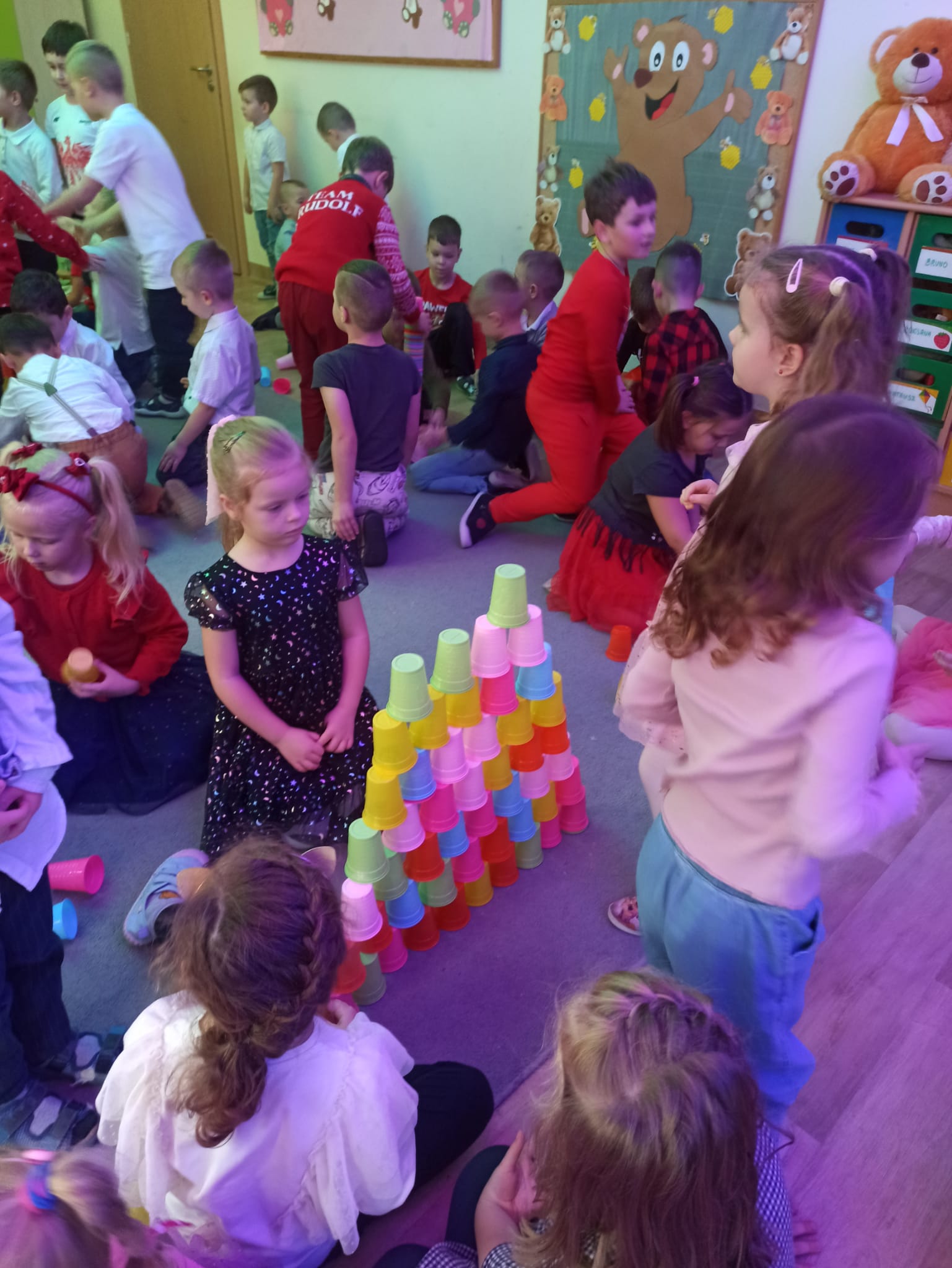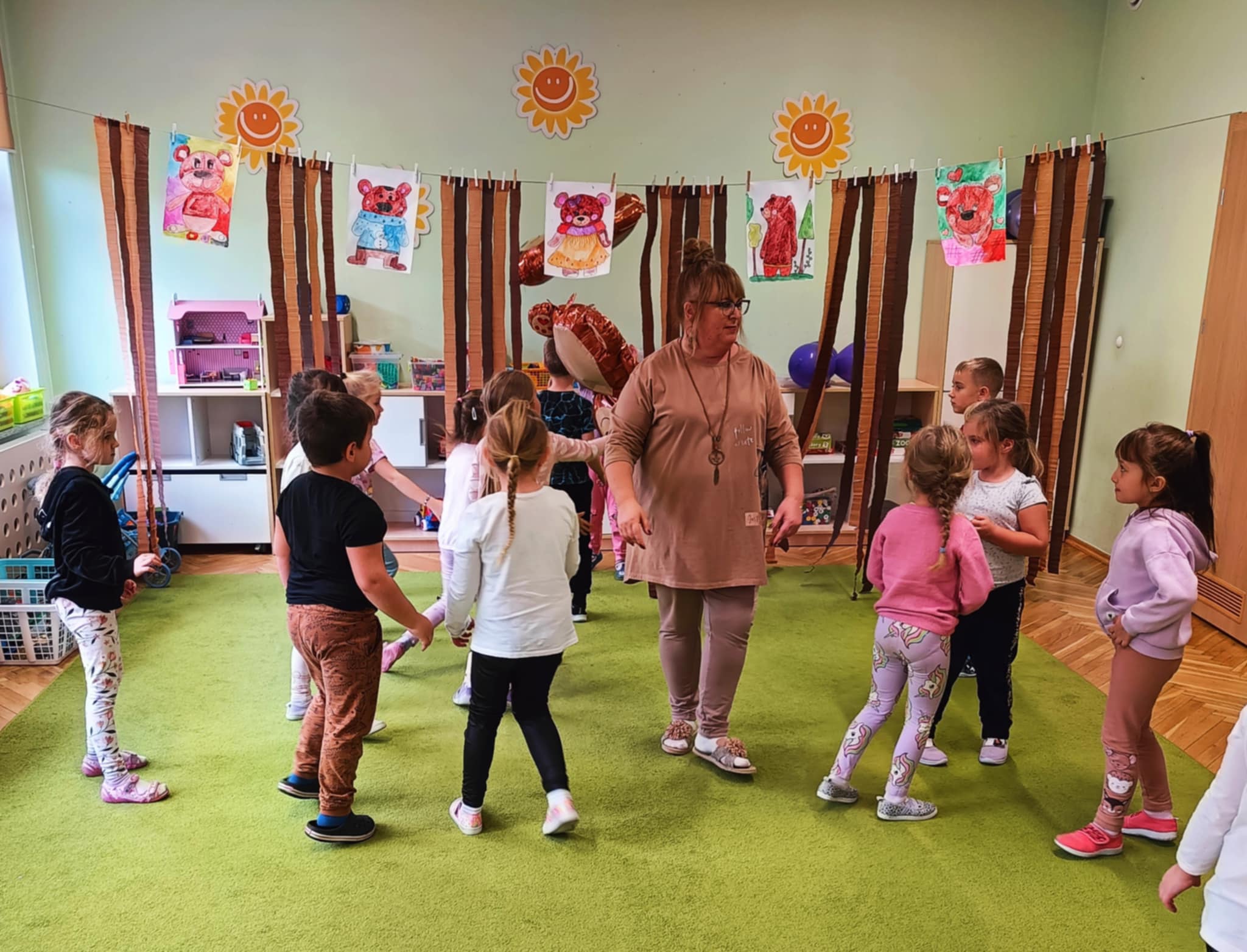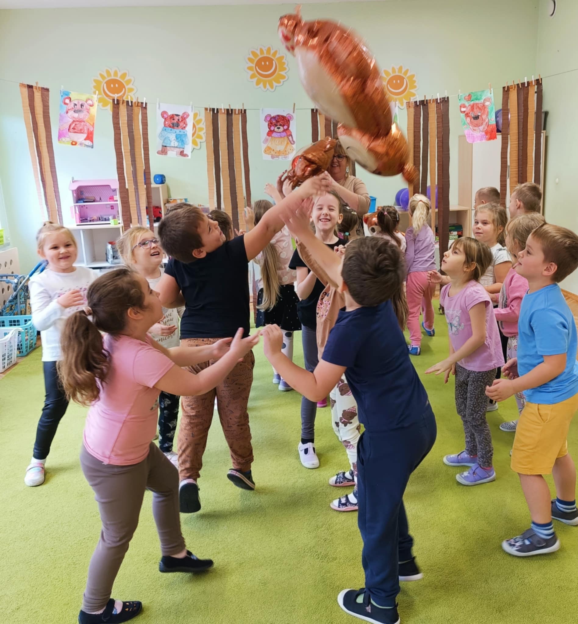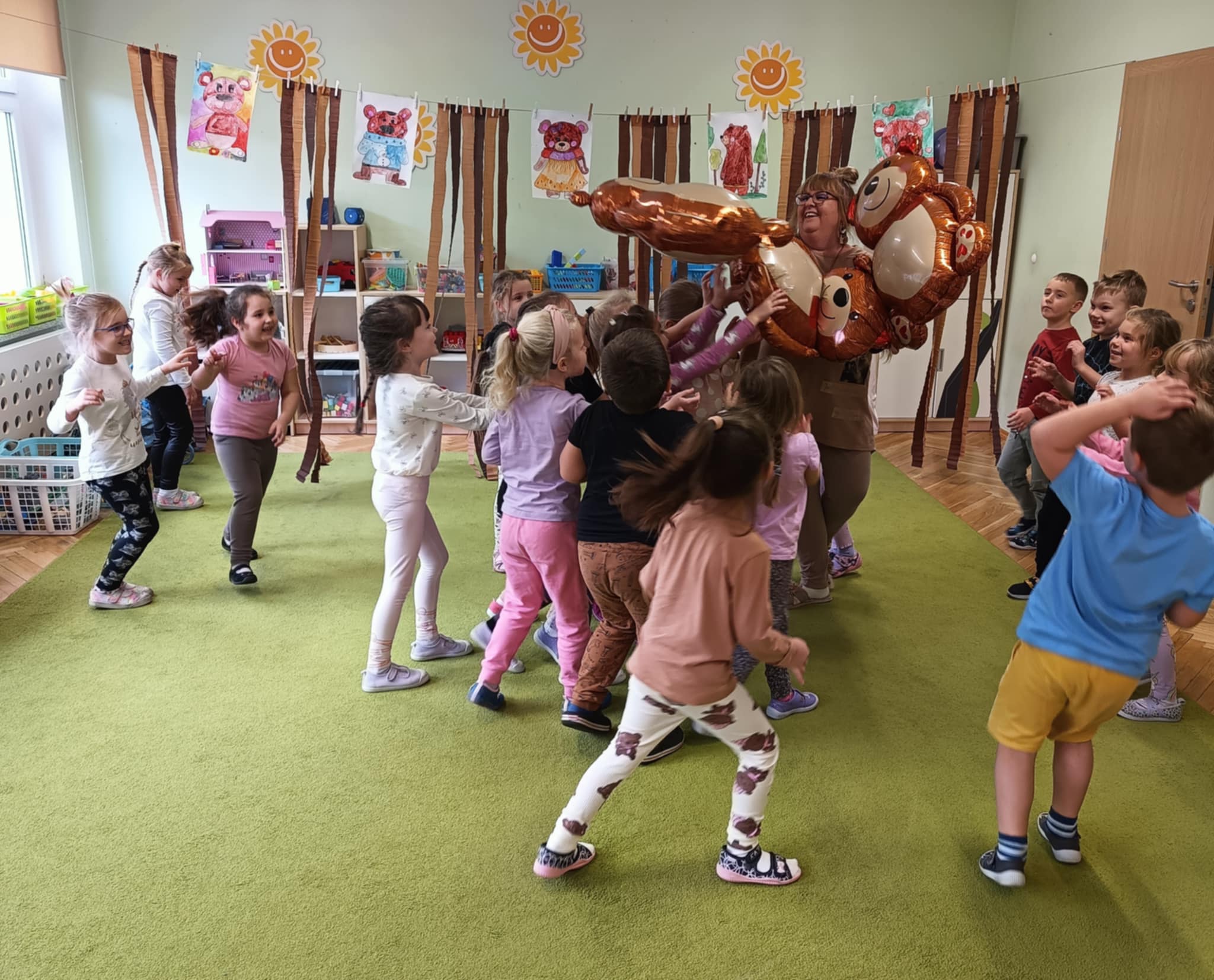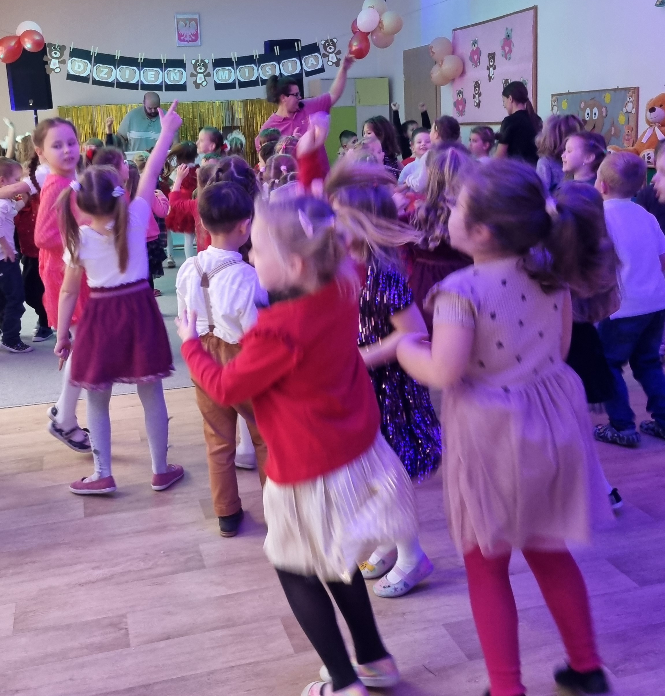 Dla dzieci przygotowano wiele atrakcji, były zabawy ruchowe, plastyczne, zgadywanki, śpiewanie piosenek, misiowe tańce. Przedszkolaki poznały różne bajki o misiach. Dzieci chętnie uczestniczyły we wszystkich zajęciachi z wielką radościa opowiadały o swoich misiach. Odbył się także Bal Misiowy prowadzony przez animatora , w którym uczestniczyły wszystkie dzieci z przedszkola.Dzień Pluszowego Misia dostarczył dzieciom wiele uśmiechu i radości.