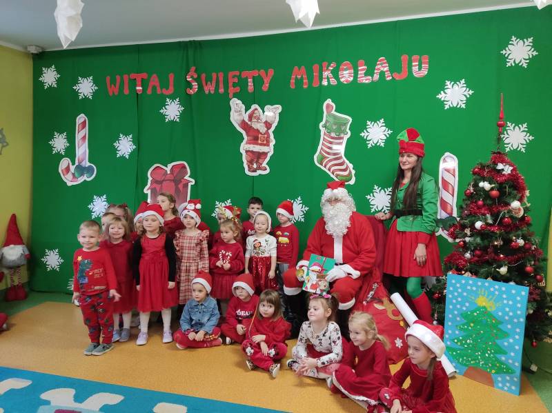 6 grudnia w naszym przedszkolu odbyła się długo wyczekiwana wizyta Świętego Mikołaja. Już od rana w powietrzu unosił się świąteczny nastrój, a dzieci z niecierpliwością oczekiwały na wyjątkowego gościa. Mikołaj przybył do przedszkola z workiem pełnym prezentów, które schował pod pięknymi choinkami. Mimo, iż był zmęczony długą drogą, na jego twarzy był uśmiech. Dzieci miały okazję porozmawiać z nim, zaśpiewać piosenki oraz wyrecytować przygotowane wierszyki, a nawet zatańczyć. Przedszkolaki również obdarowały Mikołaja własnoręcznie wykonanymi prezentami. Mikołaj był zaskoczony i bardzo wzruszony tym gestem. Spotkanie było pełne radości i śmiechu. Dzieci zrobiły sobie pamiątkowe zdjęcie z ukochanym gościem i zarosiły go do odwiedzenia za rok. Wizyta Świętego Mikołaja na długo pozostanie w pamięci i sercach dzieci.