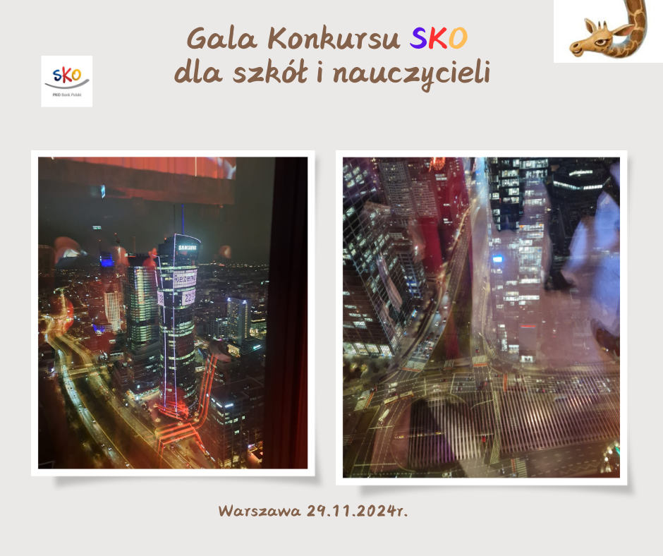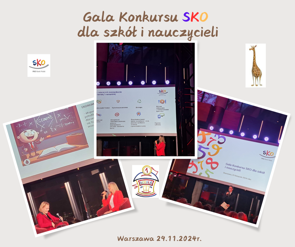 W piątek 29 listopada 2024 r. na 42 piętrze nowoczesnego biurowca Skyliner w Warszawie odbyła się uroczysta gala wręczenia nagród oraz srebrnych, złotych i platynowych odznak w Ogólnopolskim Konkursie Szkolnych Kas Oszczędności dla szkół i nauczycieli organizowanym przez PKO Bank Polski.