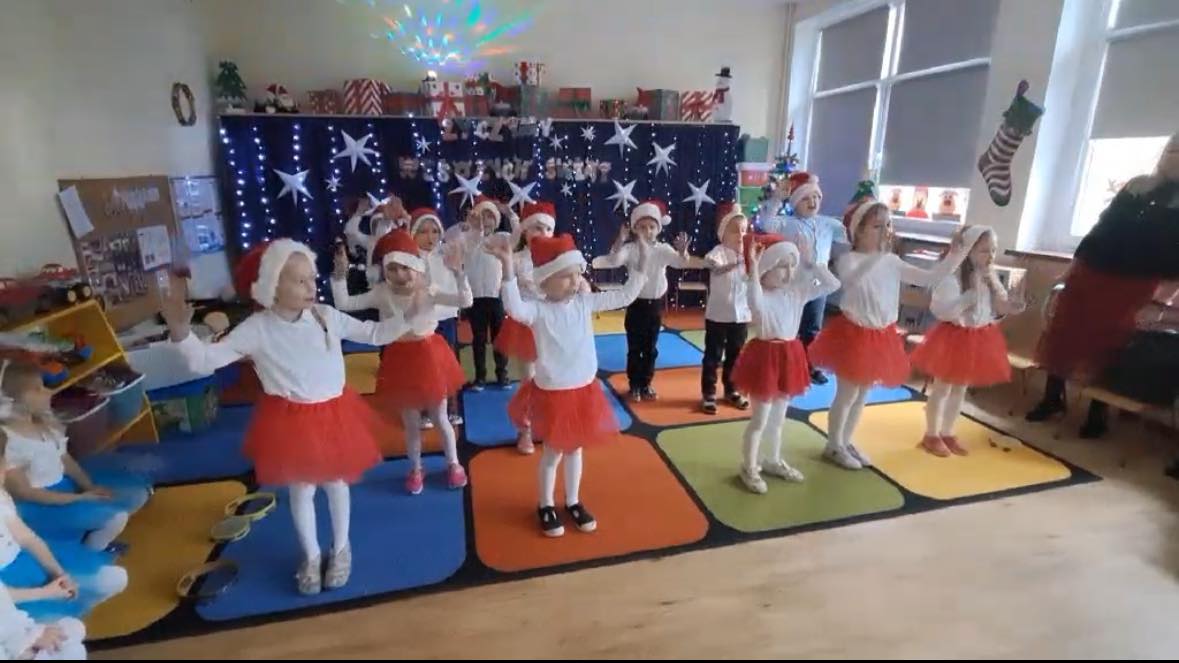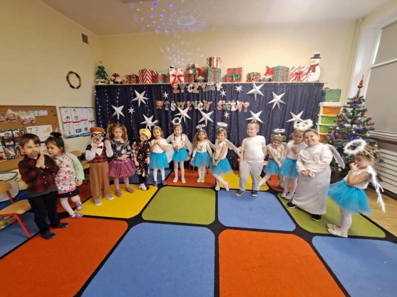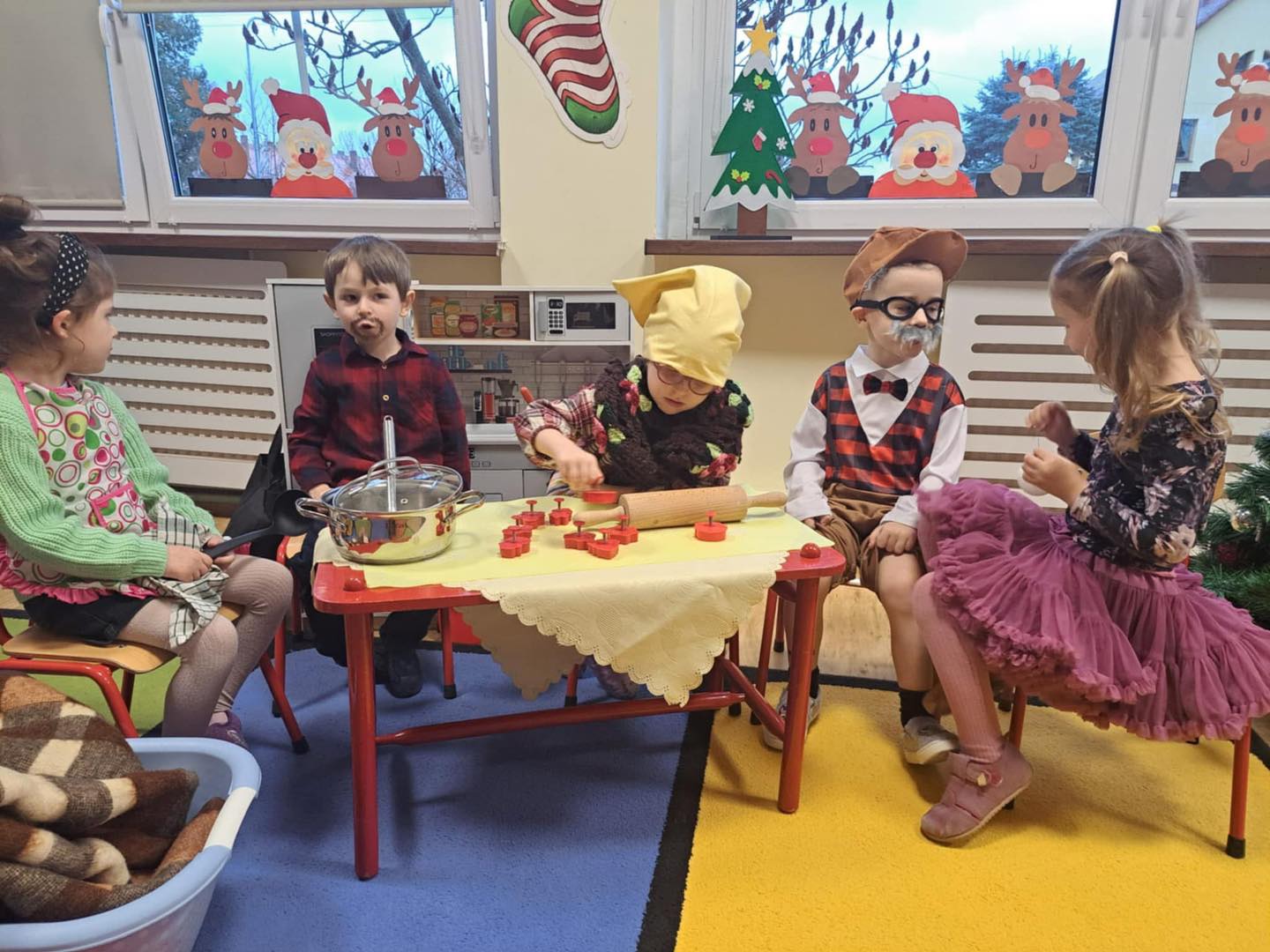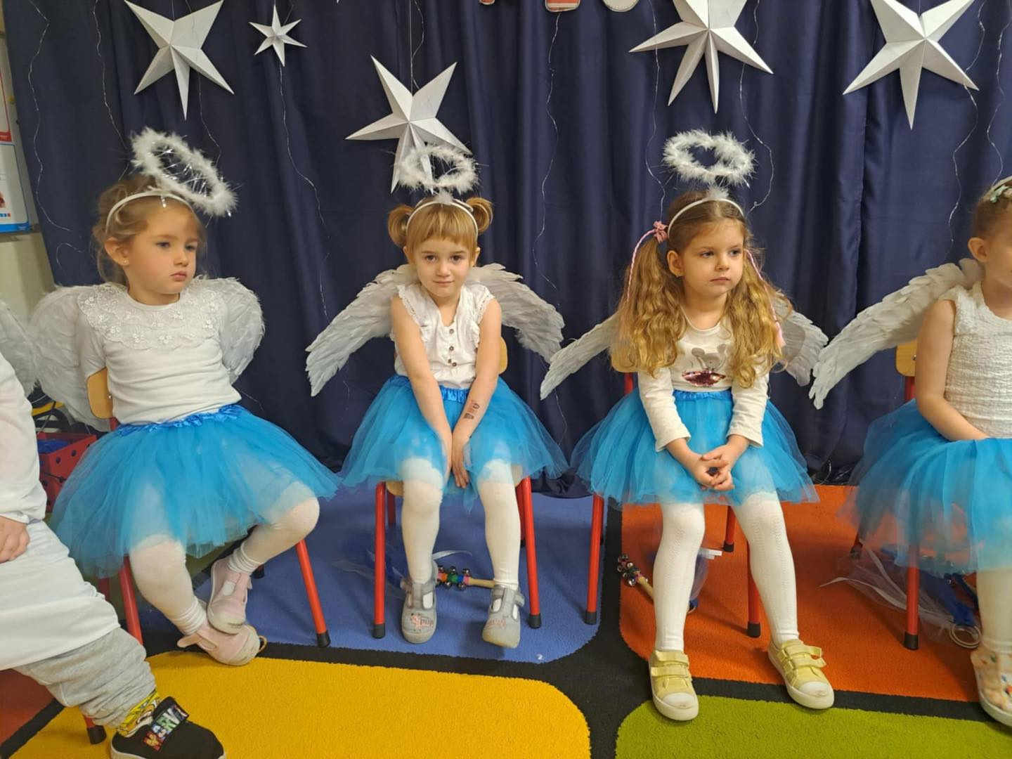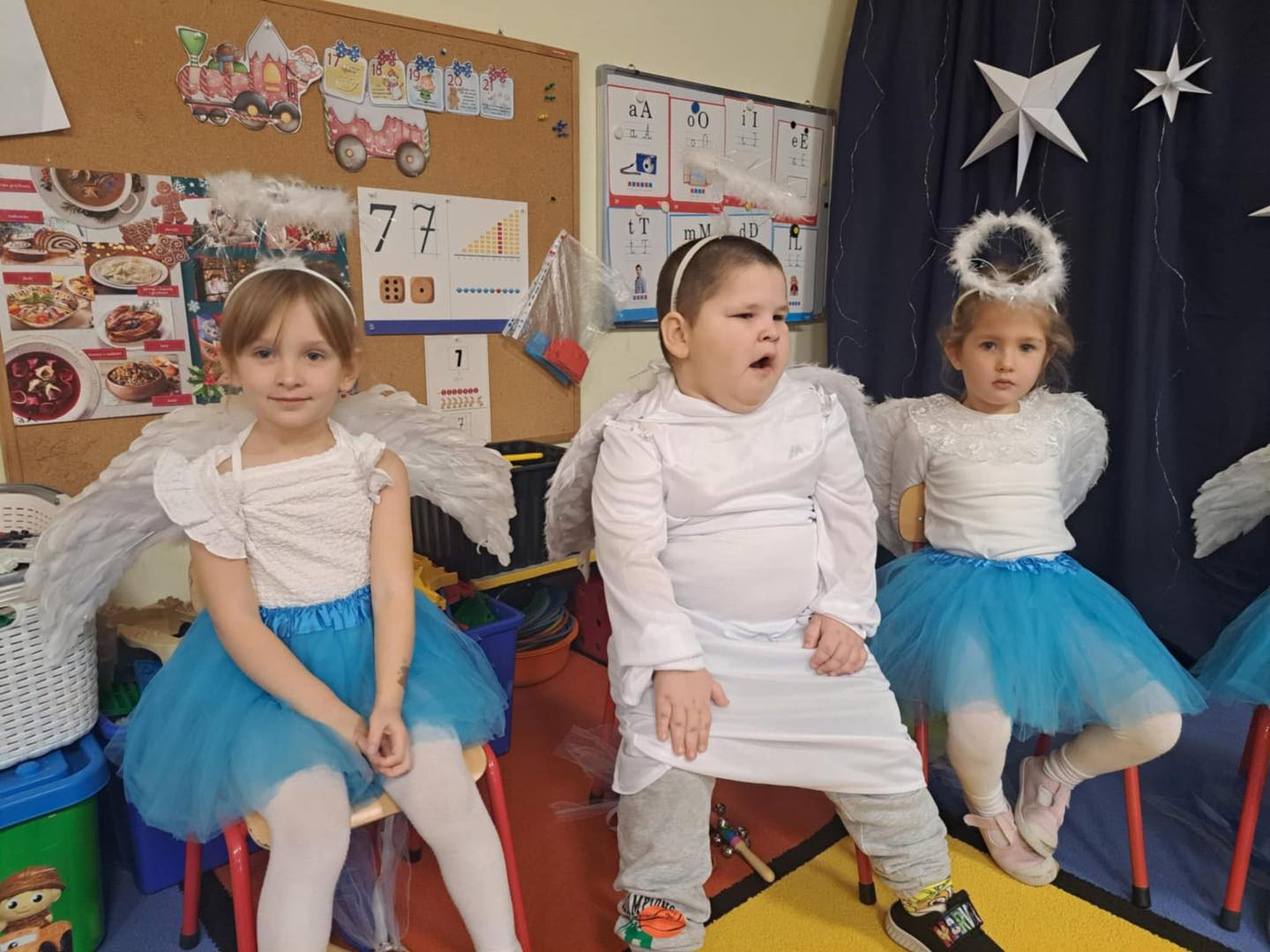 Okres świąt Bożego Narodzenia to czas pełen radości, piękna, magii i czarów. Czas spełniania marzeń i okazywania sobie wzajemnie miłości. Aby podkreślić wyjątkowy charakter tych świąt, nasze 4-latki i 6-latki wystąpiły w przedstawieniu przygotowanym specjalnie z tej okazji. Przedstawienie miało charakter typowo świąteczny.Po występach wspólnie zasiedliśmy przy odświętnie nakrytych stołach, złożyliśmy najlepsze bożonarodzeniowe życzenia, podzieliliśmy się opłatkiem oraz skosztowaliśmy słodki poczęstunek. Podczas posiłku cicho rozbrzmiewały kolędy.