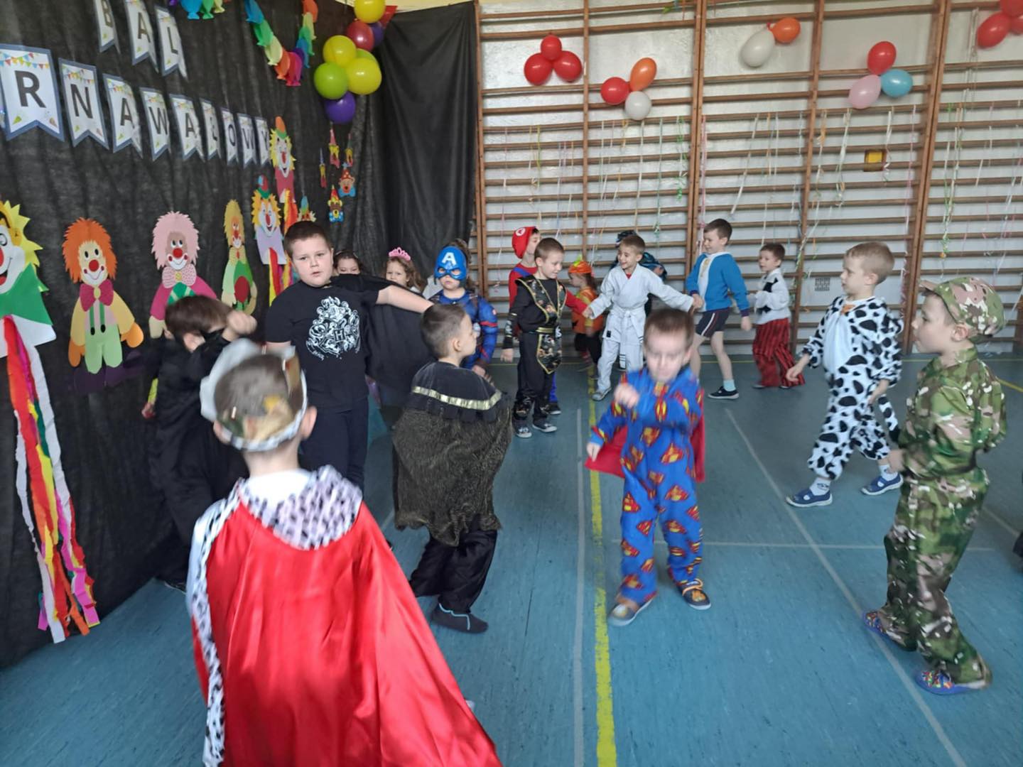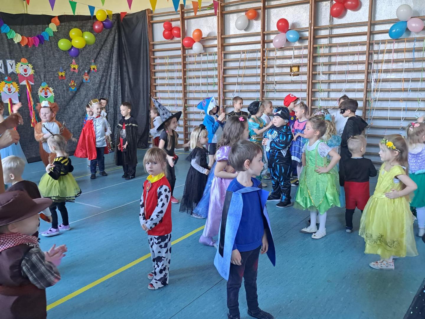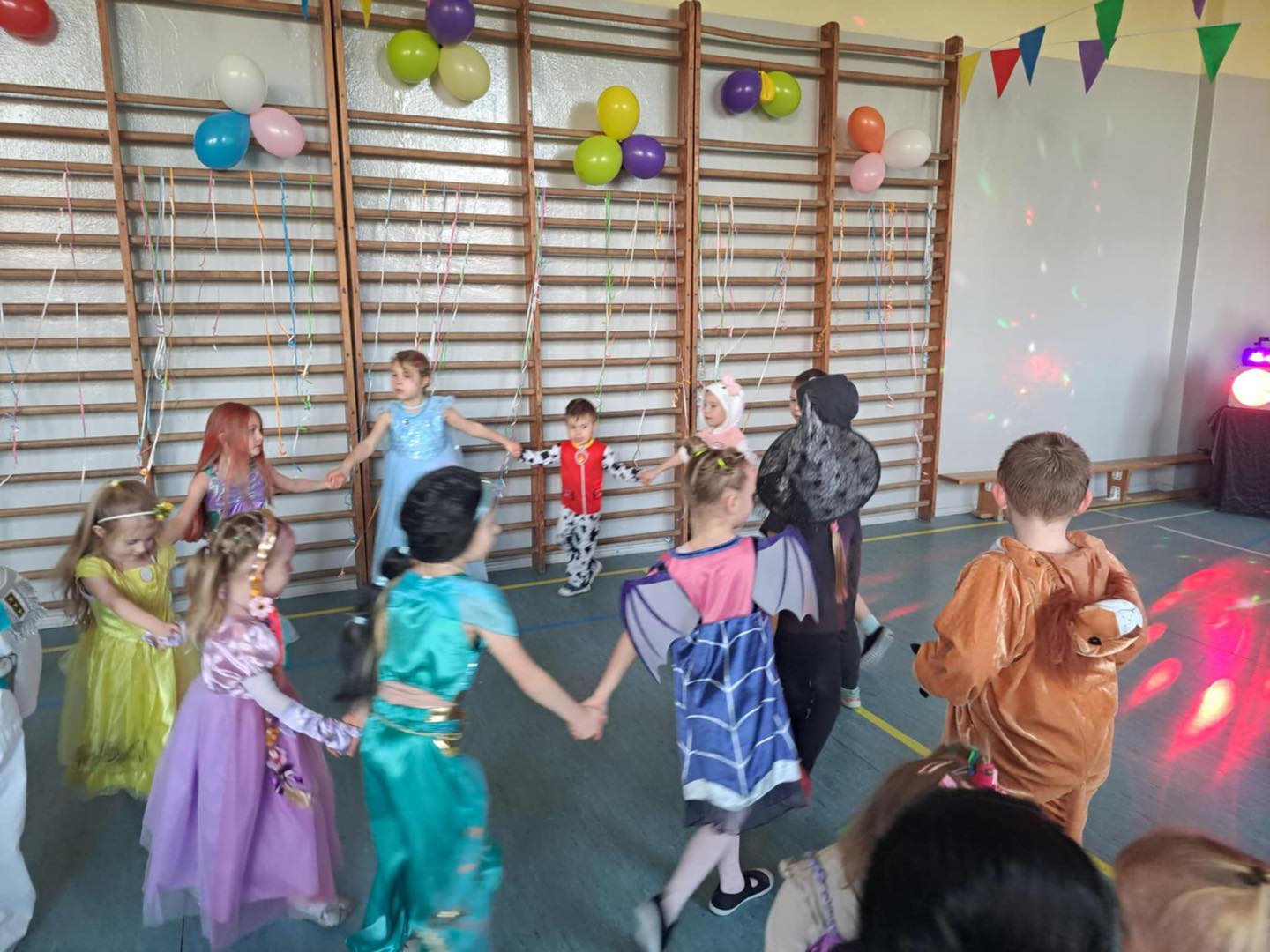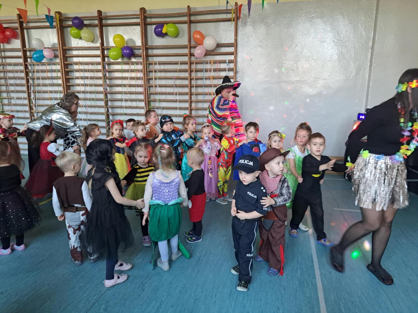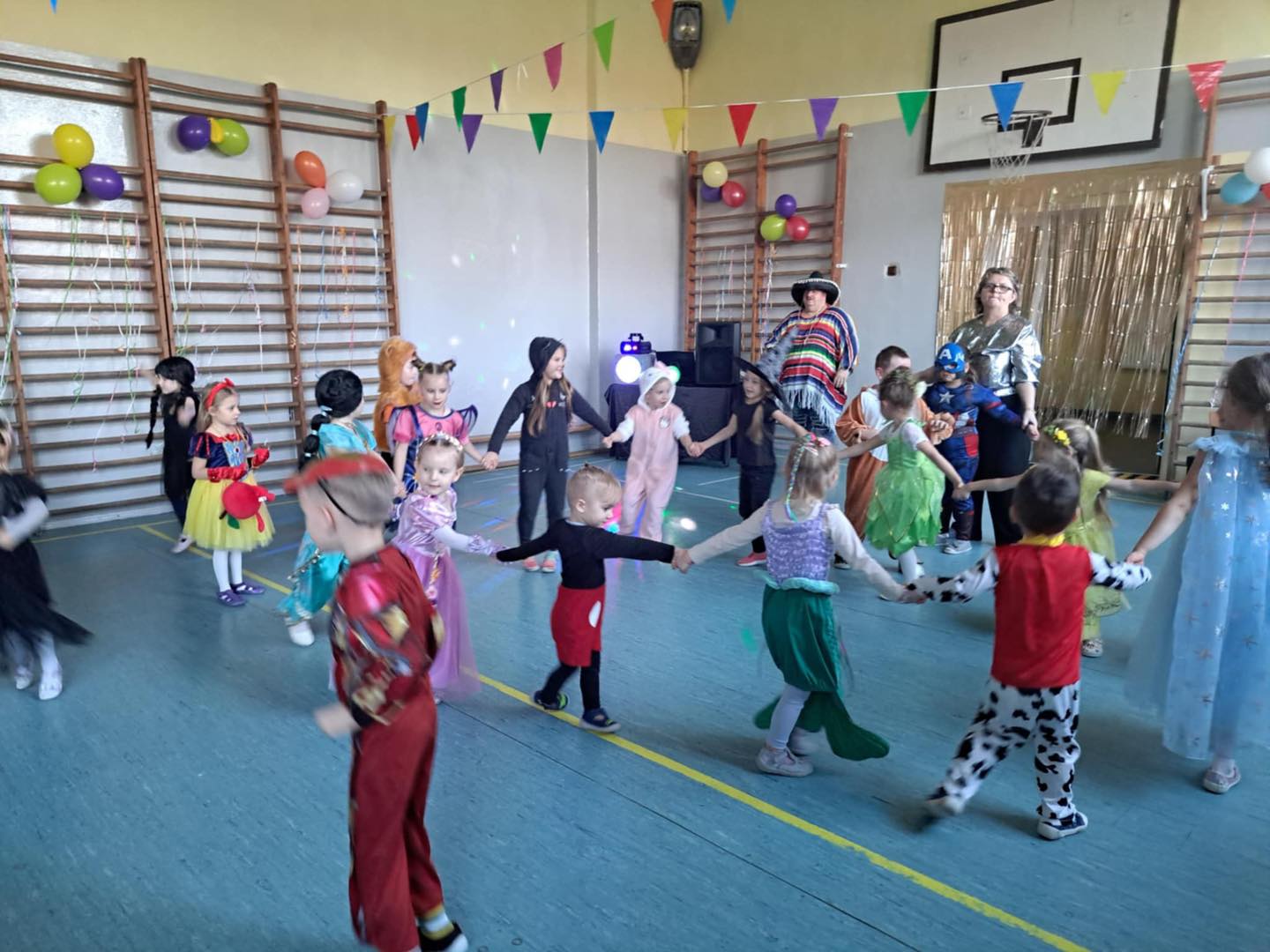 W dniu 9.01.2025r. w naszym przedszkolu odbył się bal karnawałowy. Tego dnia już od rana w przedszkolu pojawiały się kolorowe postacie. Dzieci przebrane były za bohaterów znanych bajek. Rozpoznać dzieci było bardzo trudno. W pierwszej kolejności dzieci miały możliwość pozowania do zdjęć indywidualnych i grupowych. Następnie odbyły się zabawy i tańce na sali gimnastycznej wraz z wodzirejem. Dzieci świetnie się bawiły. Na sali podczas pląsów robiło się kolorowo, wszyscy bawili się wesoło, a uśmiech nie znikał z twarzy.