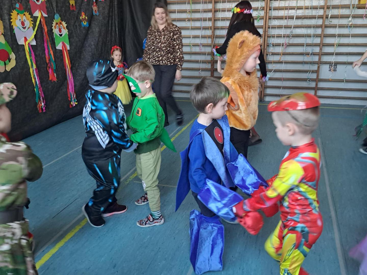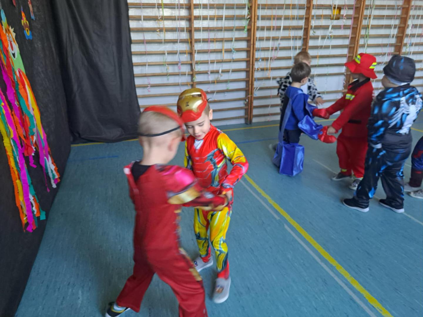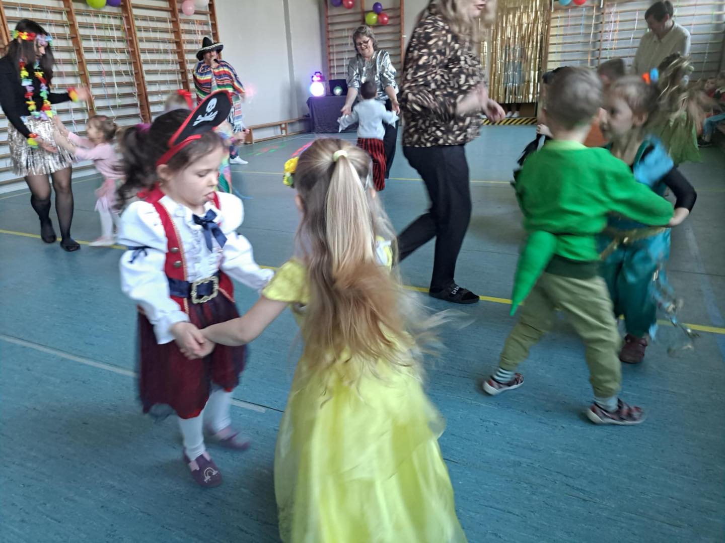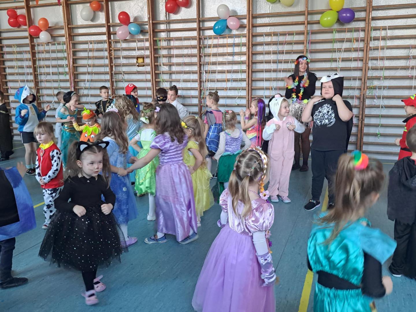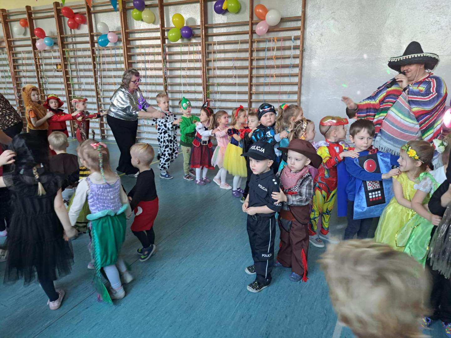W dniu 9.01.2025r. w naszym przedszkolu odbył się bal karnawałowy. Tego dnia już od rana w przedszkolu pojawiały się kolorowe postacie. Dzieci przebrane były za bohaterów znanych bajek. Rozpoznać dzieci było bardzo trudno. W pierwszej kolejności dzieci miały możliwość pozowania do zdjęć indywidualnych i grupowych. Następnie odbyły się zabawy i tańce na sali gimnastycznej wraz z wodzirejem. Dzieci świetnie się bawiły. Na sali podczas pląsów robiło się kolorowo, wszyscy bawili się wesoło, a uśmiech nie znikał z twarzy.