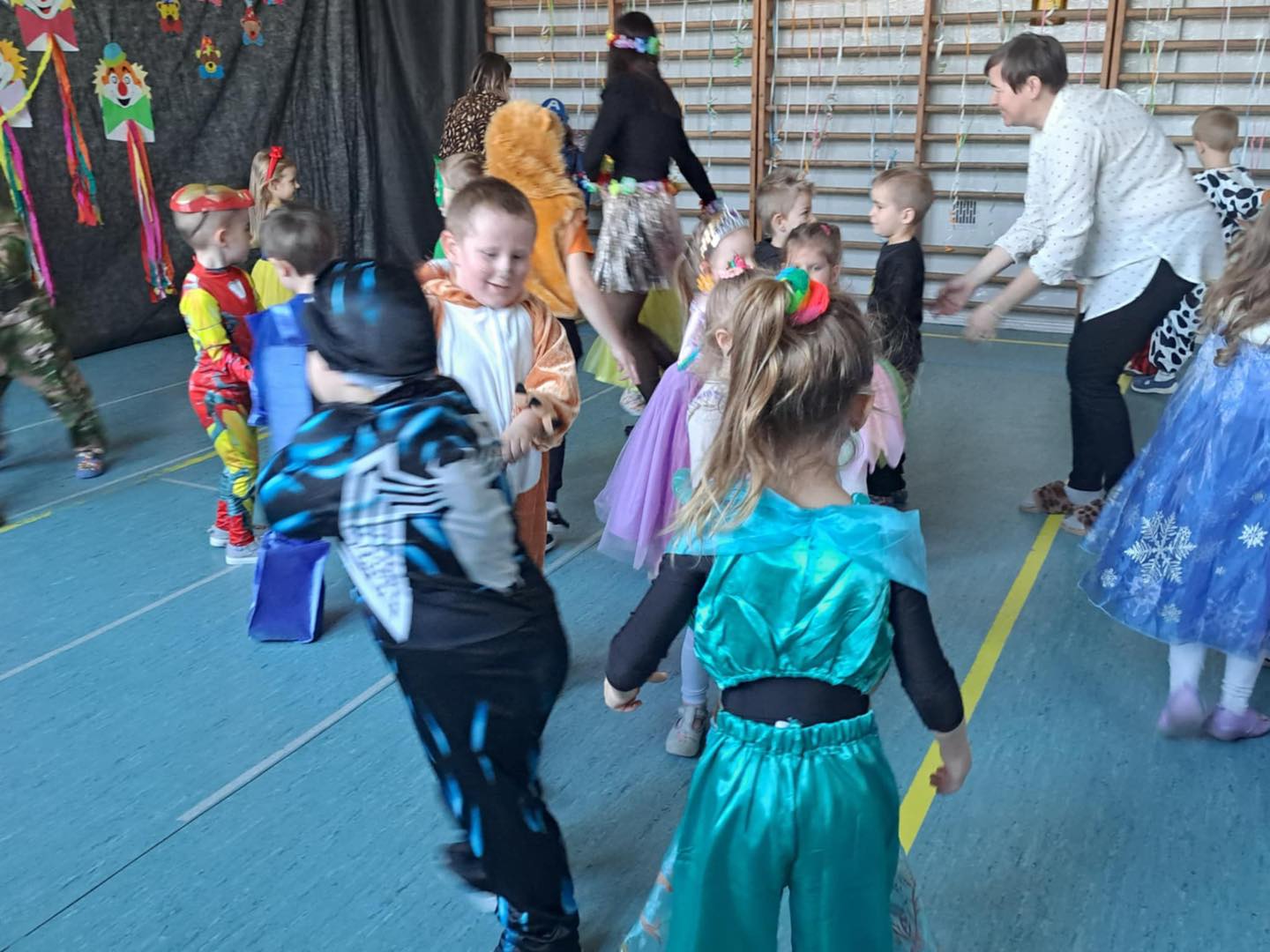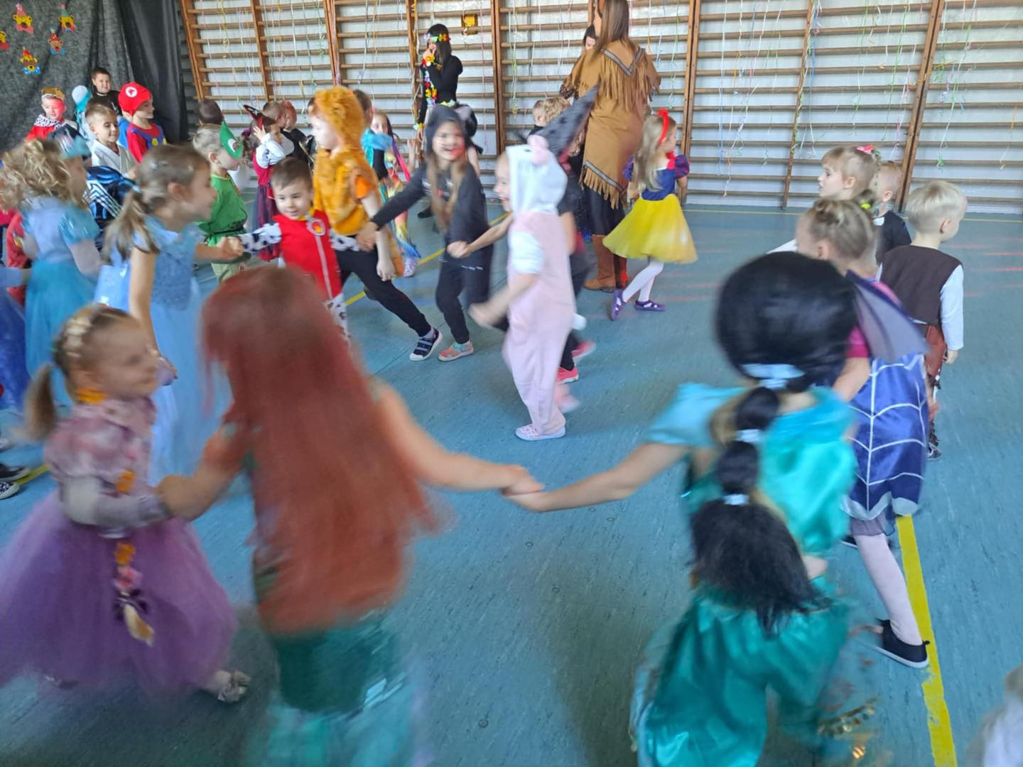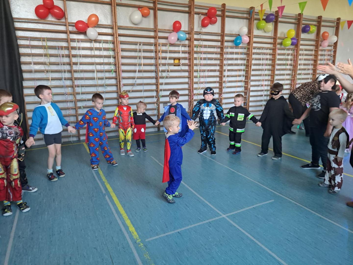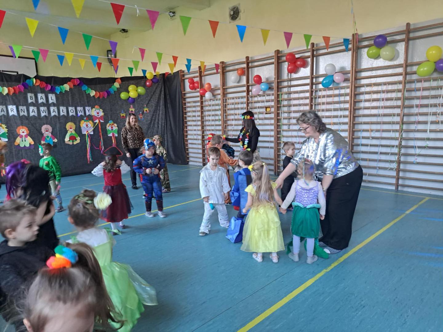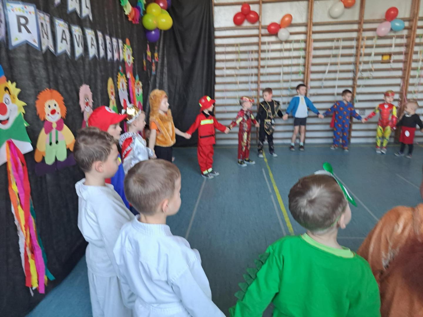 W dniu 9.01.2025r. w naszym przedszkolu odbył się bal karnawałowy. Tego dnia już od rana w przedszkolu pojawiały się kolorowe postacie. Dzieci przebrane były za bohaterów znanych bajek. Rozpoznać dzieci było bardzo trudno. W pierwszej kolejności dzieci miały możliwość pozowania do zdjęć indywidualnych i grupowych. Następnie odbyły się zabawy i tańce na sali gimnastycznej wraz z wodzirejem. Dzieci świetnie się bawiły. Na sali podczas pląsów robiło się kolorowo, wszyscy bawili się wesoło, a uśmiech nie znikał z twarzy.
