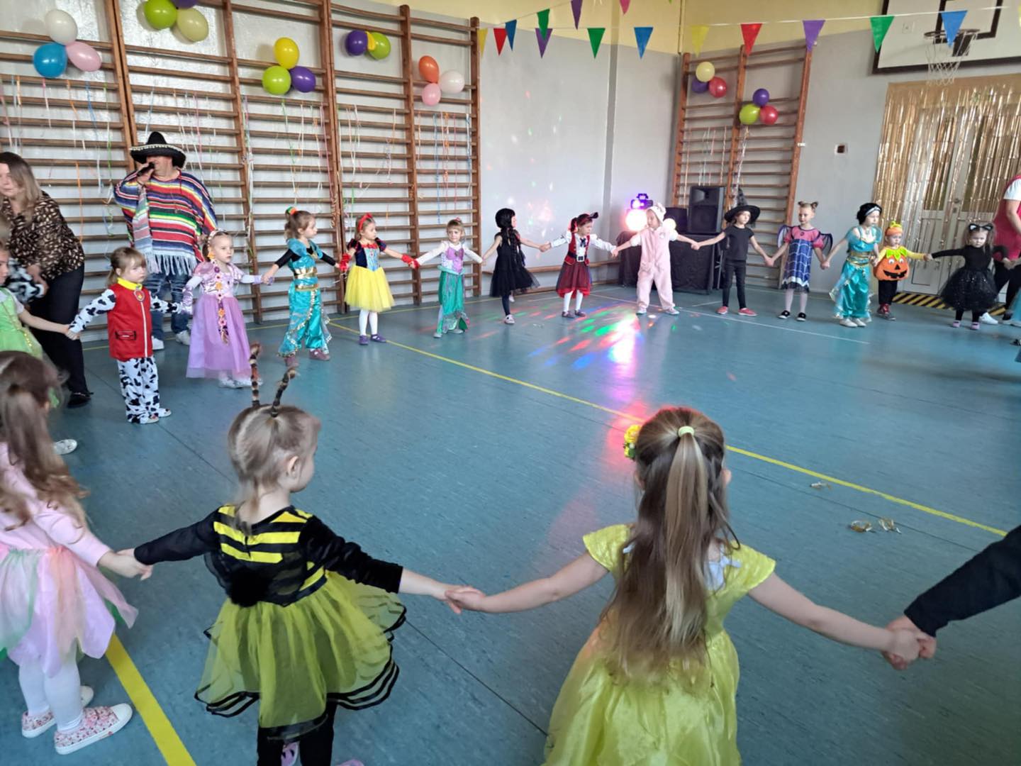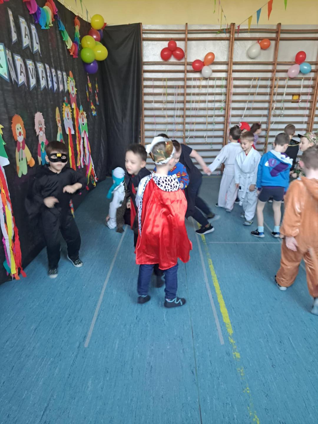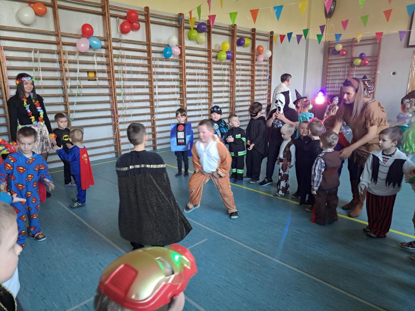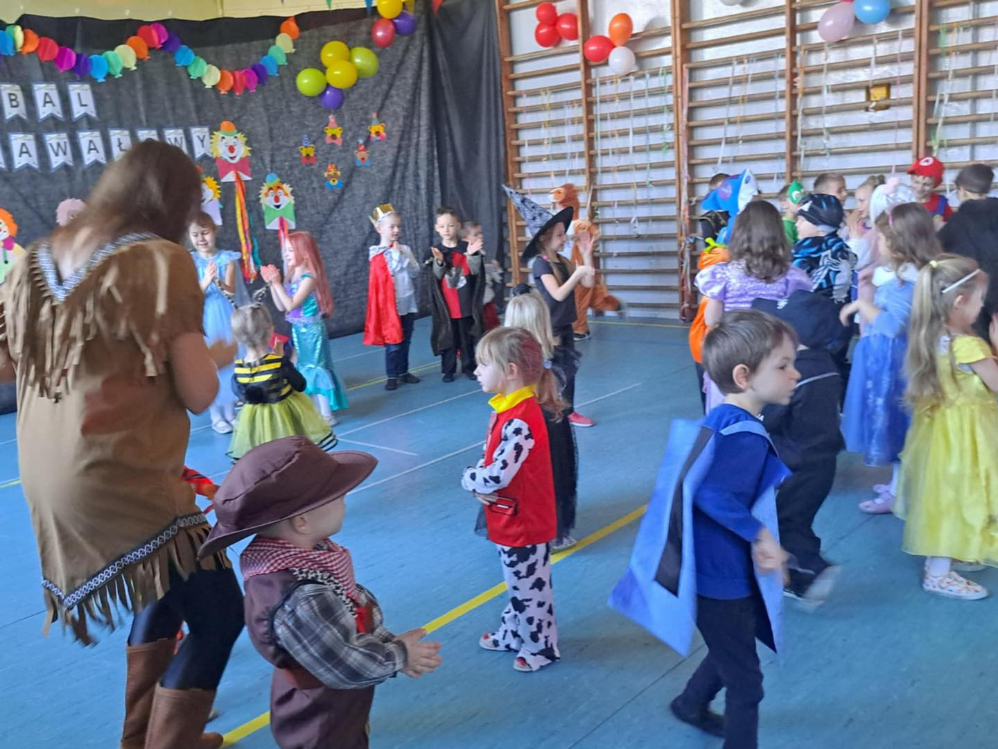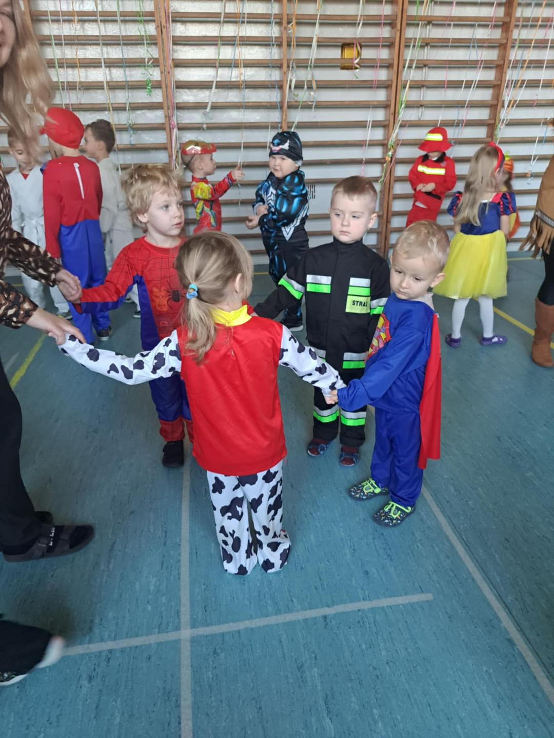 W dniu 9.01.2025r. w naszym przedszkolu odbył się bal karnawałowy. Tego dnia już od rana w przedszkolu pojawiały się kolorowe postacie. Dzieci przebrane były za bohaterów znanych bajek. Rozpoznać dzieci było bardzo trudno. W pierwszej kolejności dzieci miały możliwość pozowania do zdjęć indywidualnych i grupowych. Następnie odbyły się zabawy i tańce na sali gimnastycznej wraz z wodzirejem. Dzieci świetnie się bawiły. Na sali podczas pląsów robiło się kolorowo, wszyscy bawili się wesoło, a uśmiech nie znikał z twarzy.