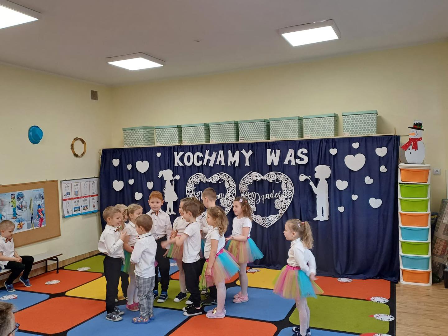 W podzięce za ich wielkie serce dzieci z naszego przedszkola gościły swoje Babcie oraz Dziadków na uroczystości z okazji ich święta. Wszystkie grupy przygotowały programy artystyczne. W pięknych scenografiach oraz wyjątkowej atmosferze wnuczęta wspaniale wystąpiły przed bliskimi. Były wzruszające wiersze i piosenki, wesołe tańce, muzyczne inscenizacje i oczywiście głośne 100 lat! Goście ze wzruszeniem patrzyli na swoje pociechy i brawami dziękowali za występy.
