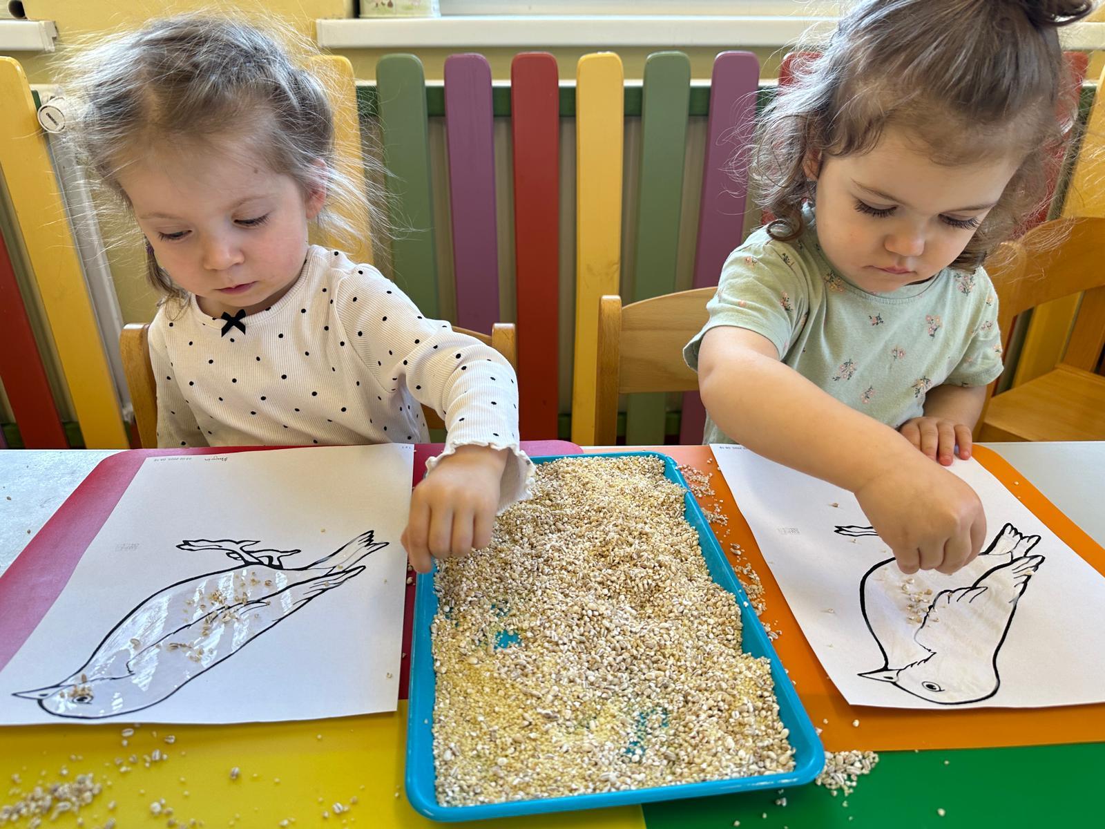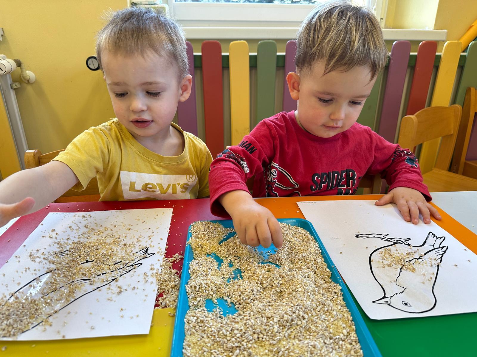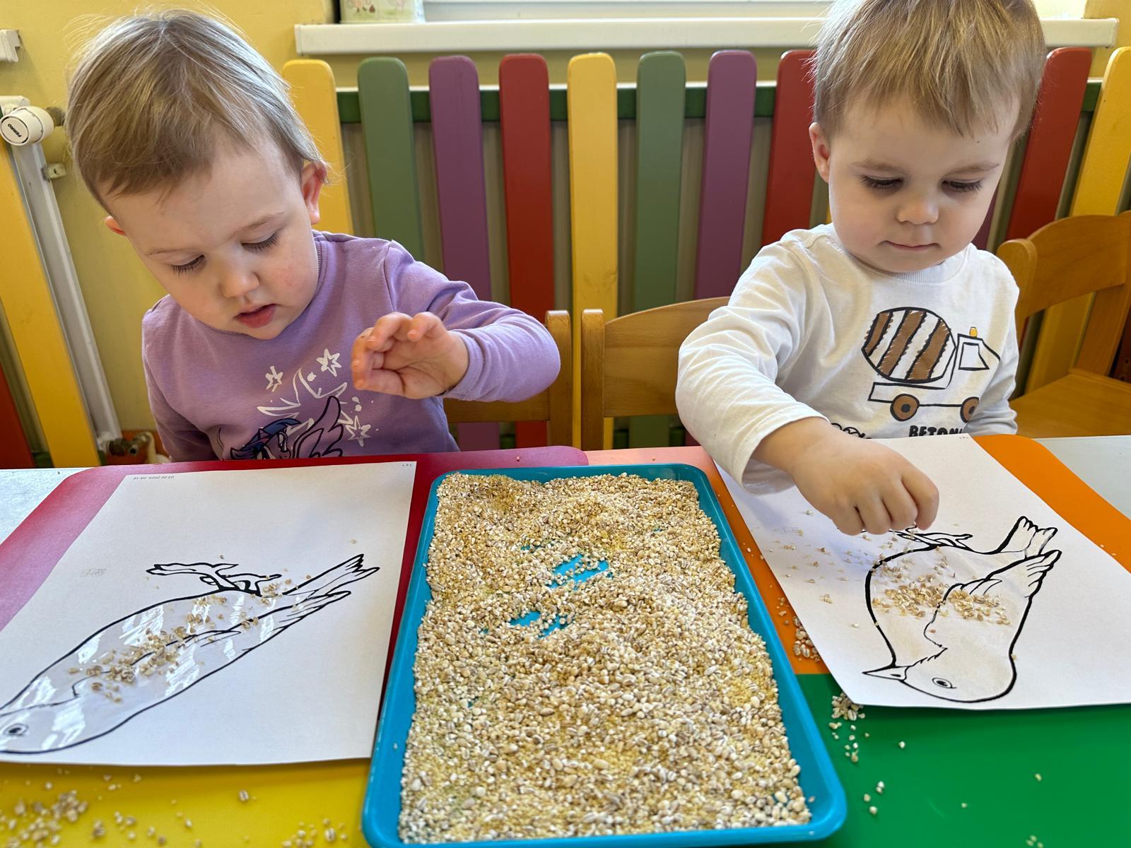 Zajęcia plastyczne to najchętniej wykonywane zajęcia przez dzieci. Tym razem nawiązując do wcześniejszym tematów o ptakach, dzieci tworzyły wróbelka za pomocą kleju i ziaren kasz.