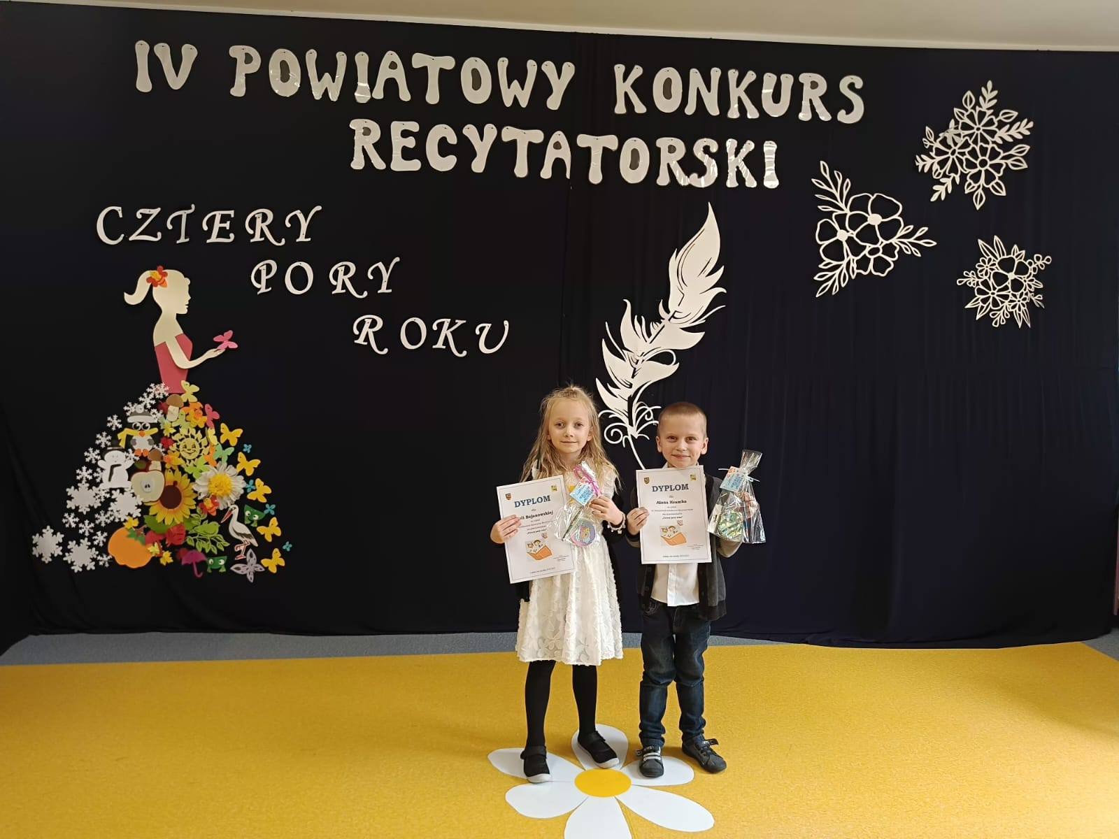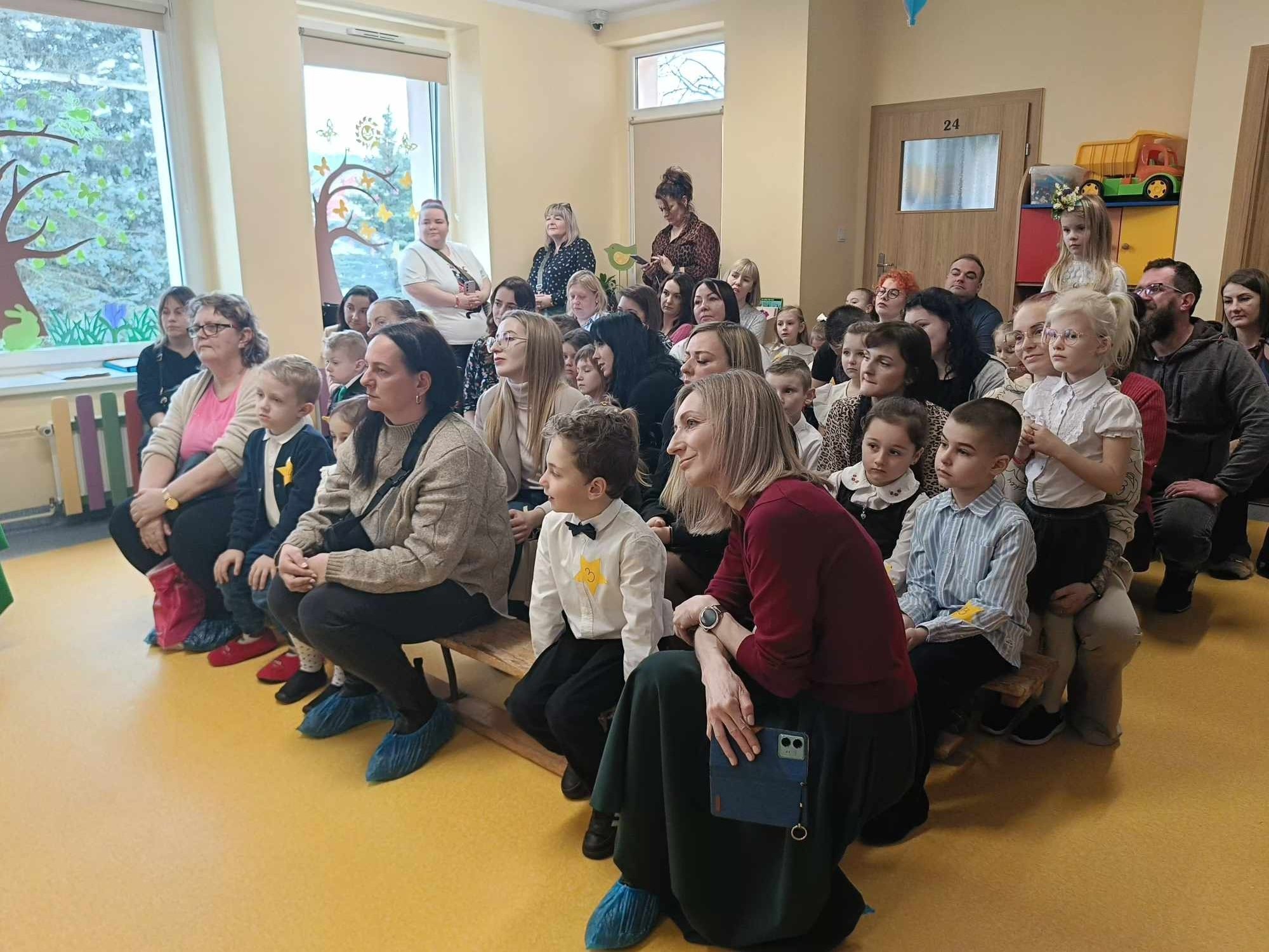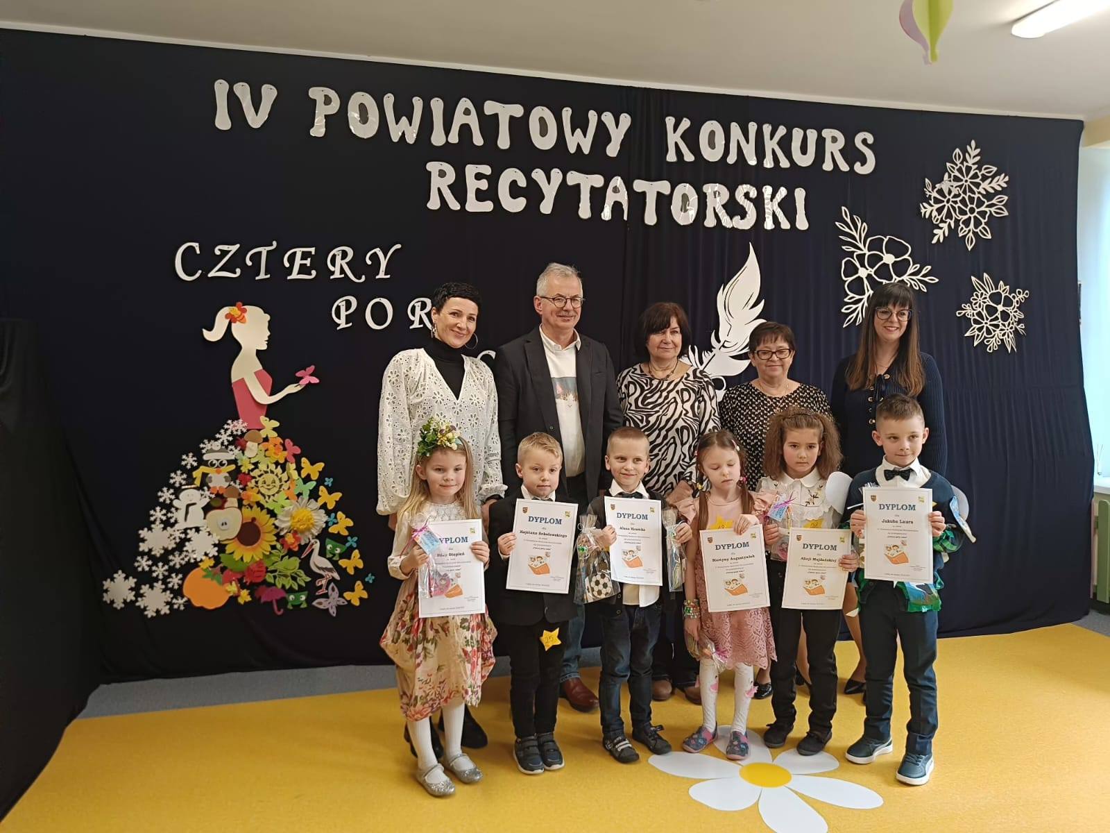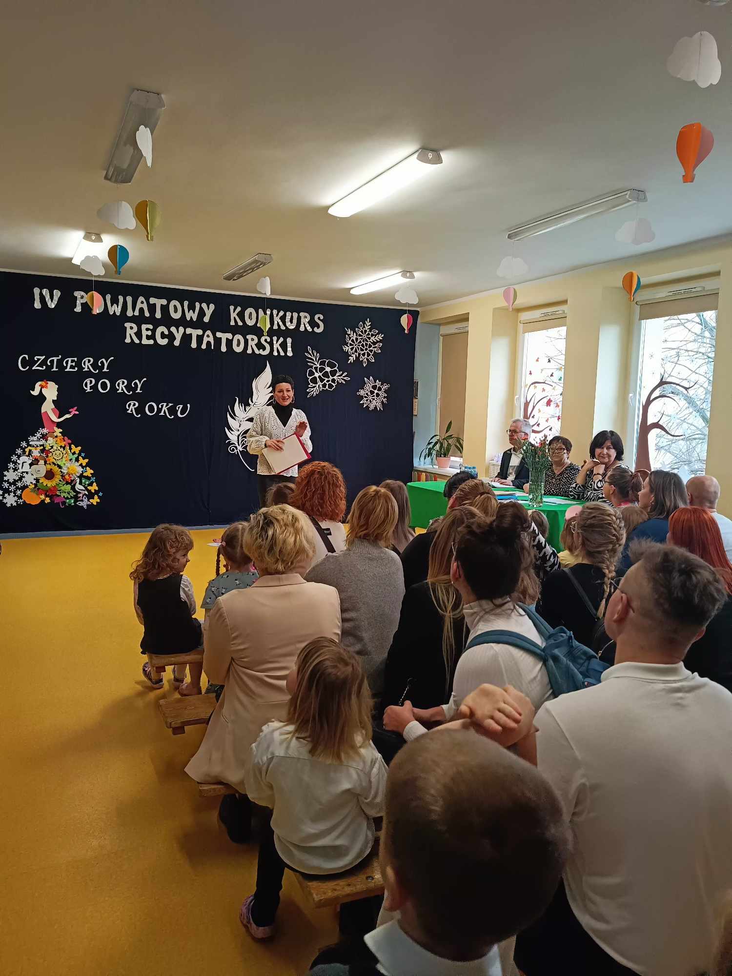 W naszych przedszkolnych murach zagościło dzisiaj niemalże 50 dzieci wraz z rodzicami i nauczycielami z przedszkoli z całego powiatu lubańskiego. Wszyscy uczestnicy zaprezentowali się wspaniale, recytując odważnie przygotowane wiersze o tematyce „Czterech pór roku”.