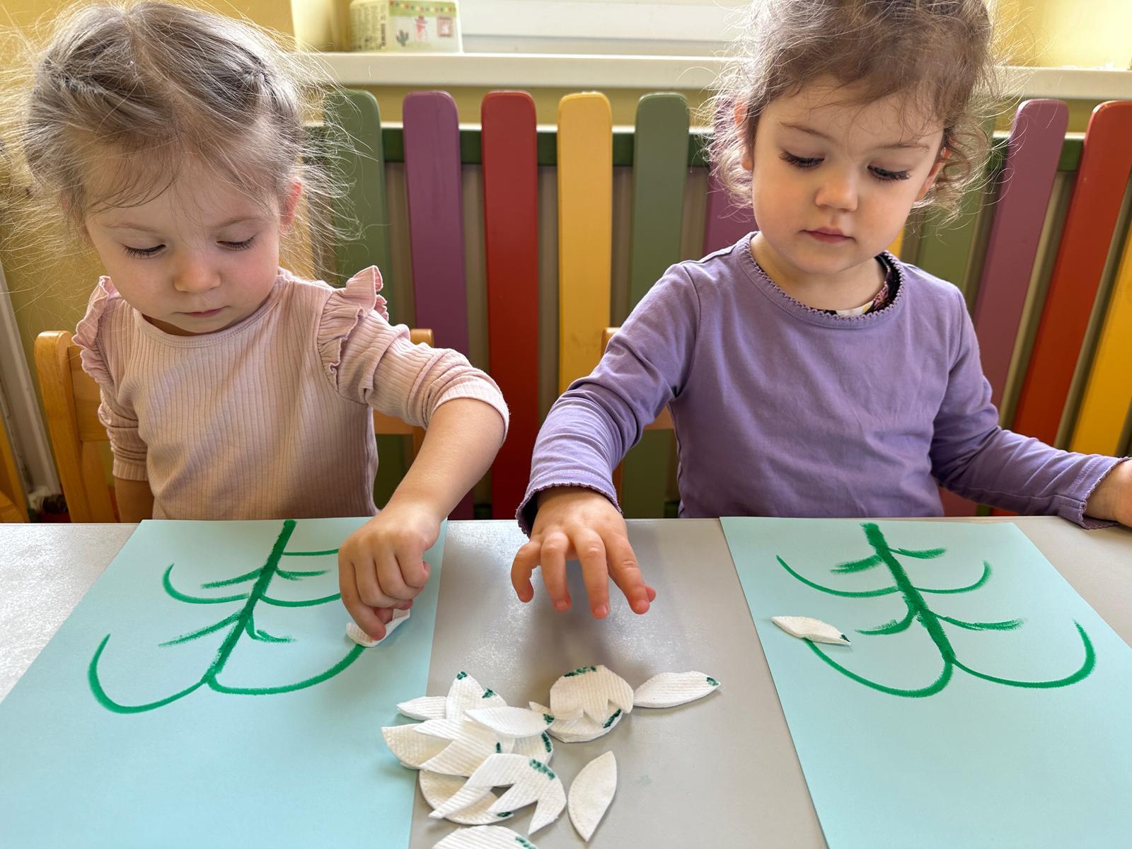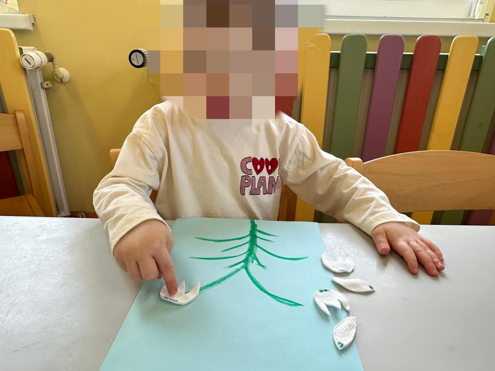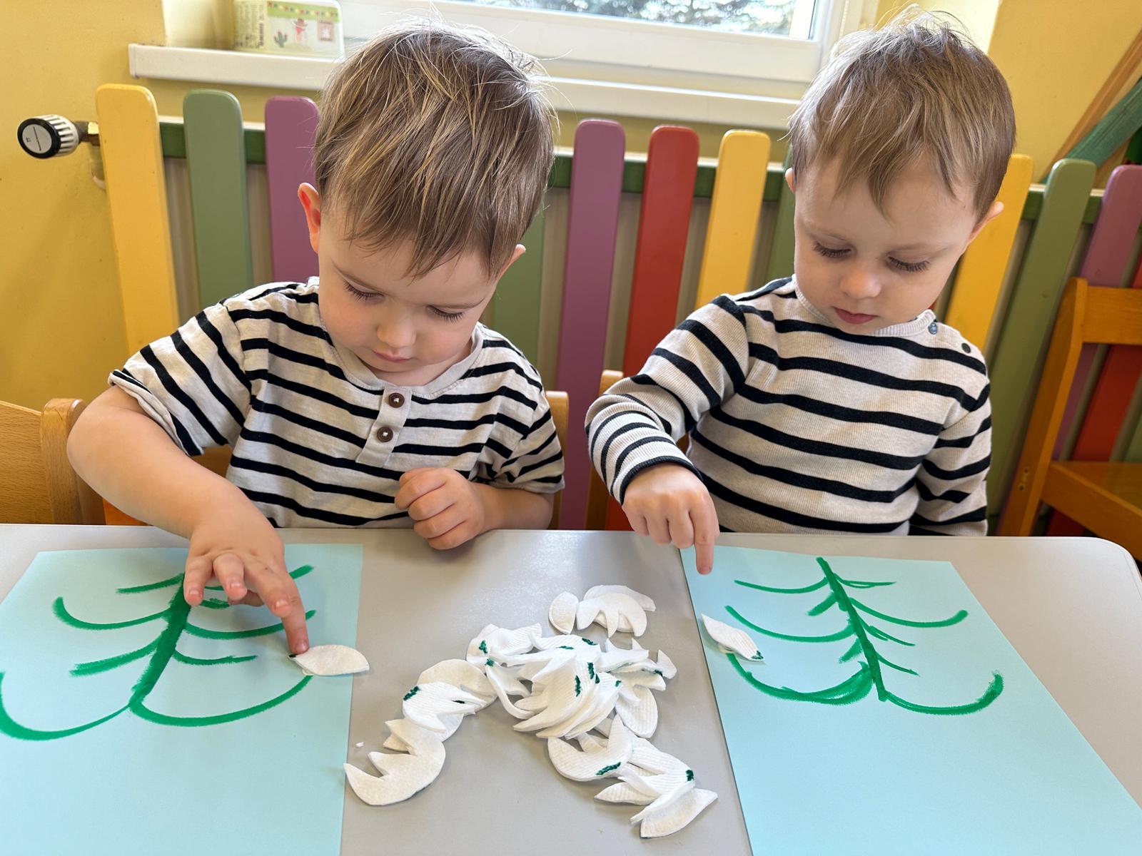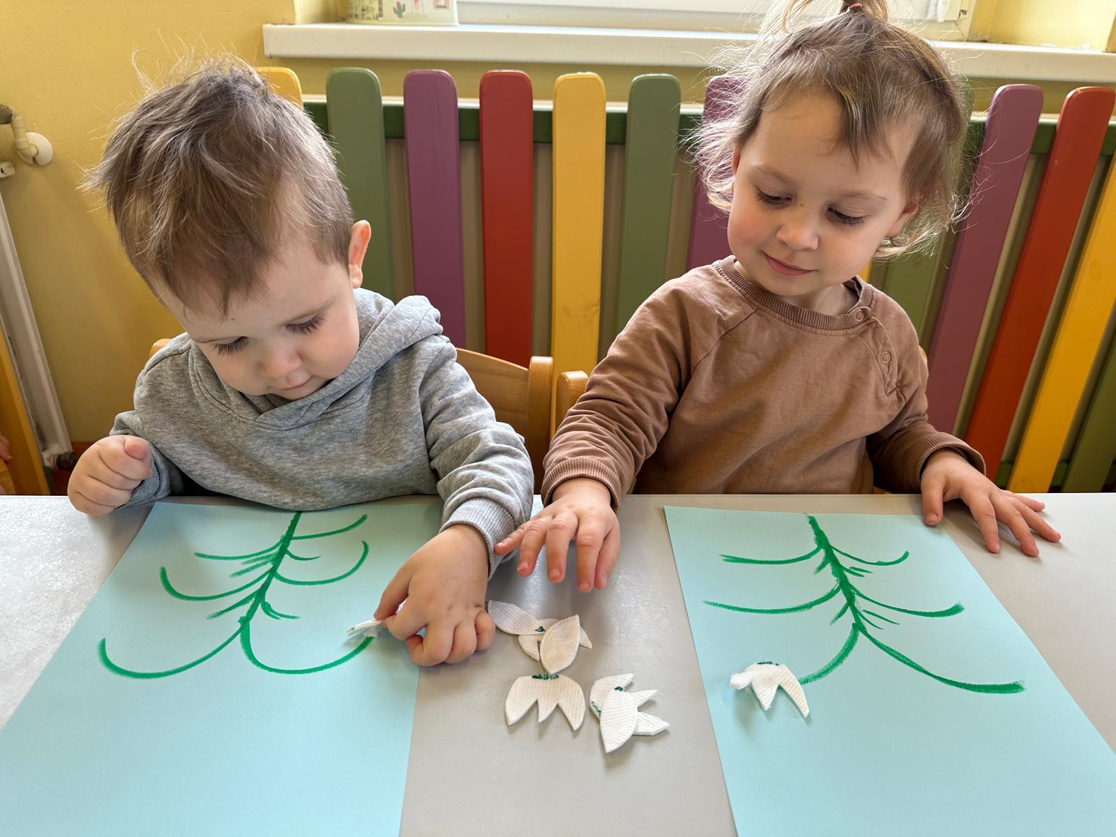 Przebiśnieg kwiat, który zwiastuje wiosnę. Praca plastyczna, która rozwija umiejętności takie jak: koncentracja, praca w skupieniu oraz kreatywność. Dzieci przyklejały przebiśniegi wycięte z płatków kosmetycznych na łodygi.
