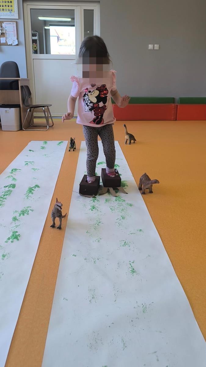 Tego dnia spędziliśmy wspaniały dzień wśród dinozaurów. Zorganizowaliśmy dla dzieci ciekawe zajęcia i zabawy. Dzieciom najbardziej spodobało się chodzenie po śladach dinozaura.