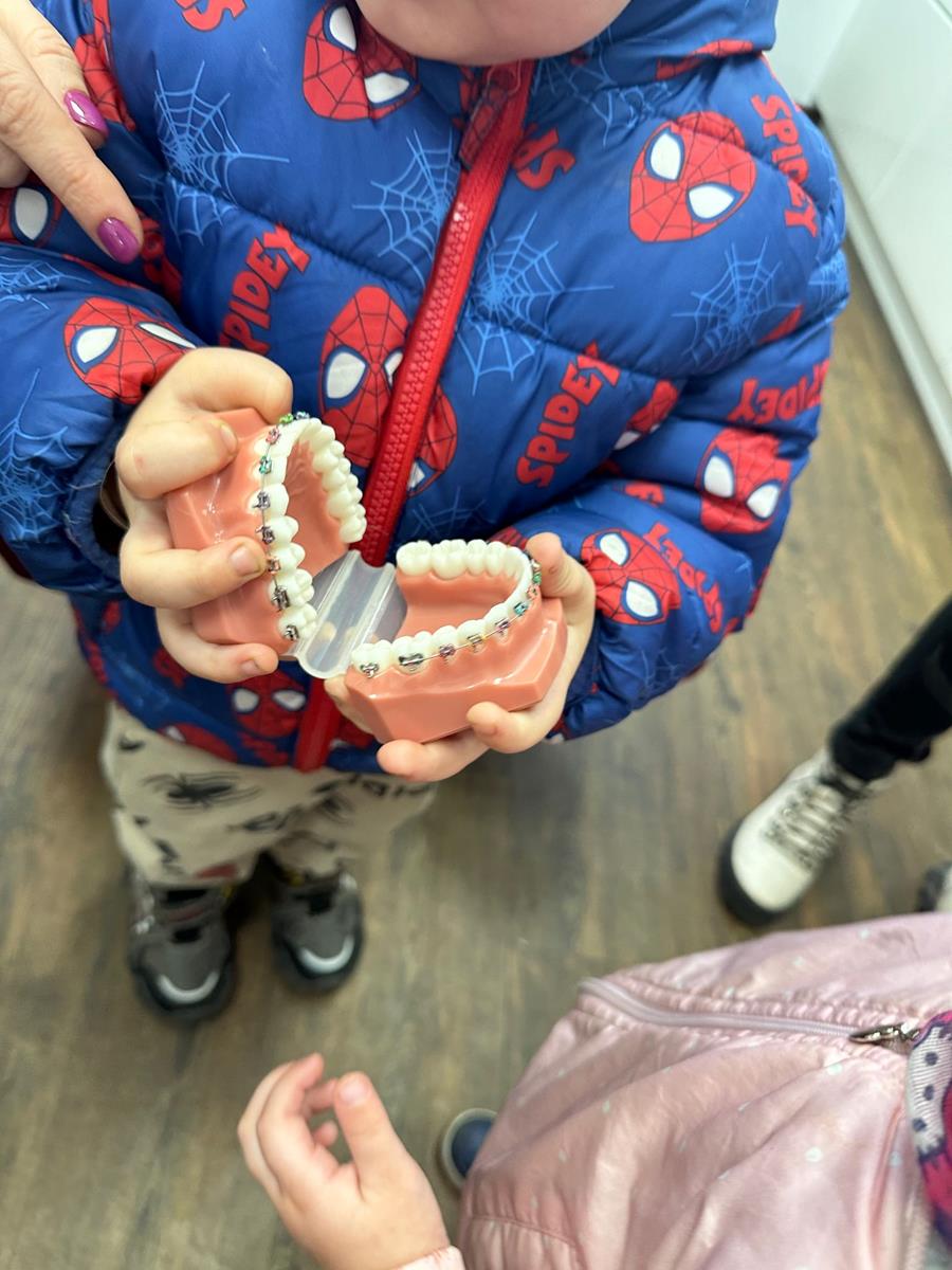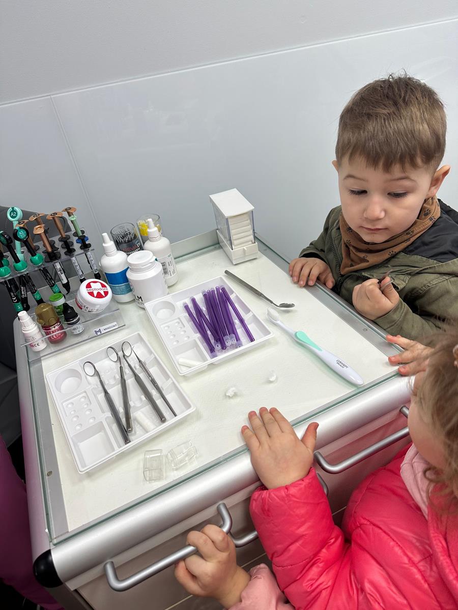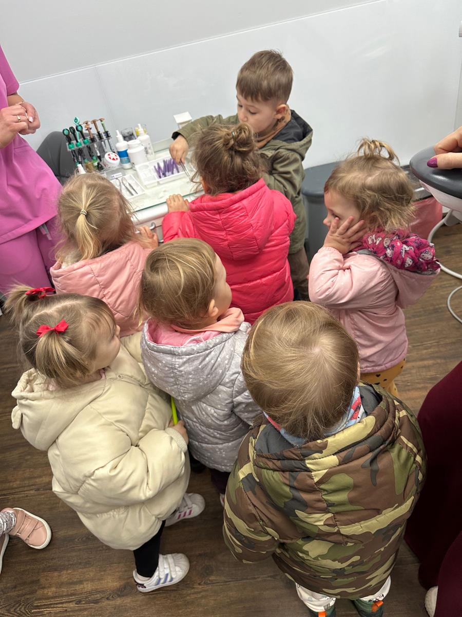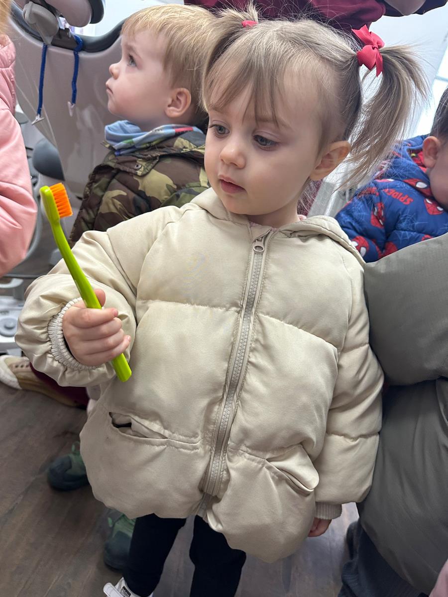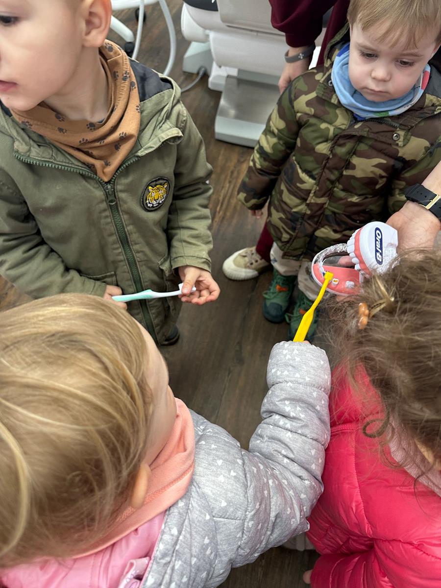 Dzieci ze starszej grupy żłobkowej wybrały się z wizytą do gabinetu stomatologicznego. Pani Ania zachęciła dzieci do zwiedzenia gabinetu, porozmawiała z dziećmi o higienie jamy ustnej, zdrowym odżywianiu i prawidłowym szczotkowaniu zębów. Kolejną atrakcją była przejażdżka w górę i w dół na fotelu dentystycznym i sprawdzenie do czego służą wszystkie dziwne urządzenia by oswoić się z gabinetem stomatologicznym. Na koniec pani rozdała wszystkim dzieciom upominki i dyplomy. Dziękujemy Ortoimplan Clinic za możliwość odwiedzin.