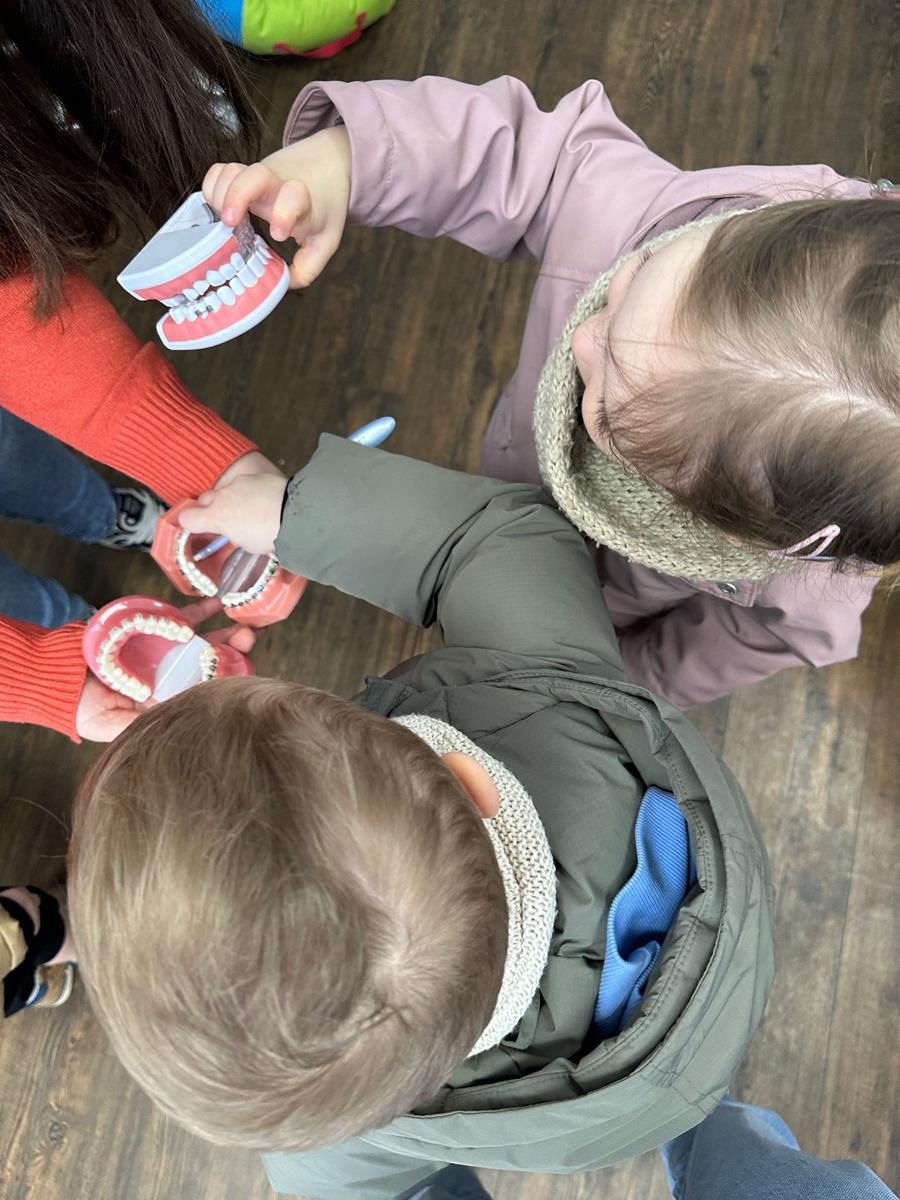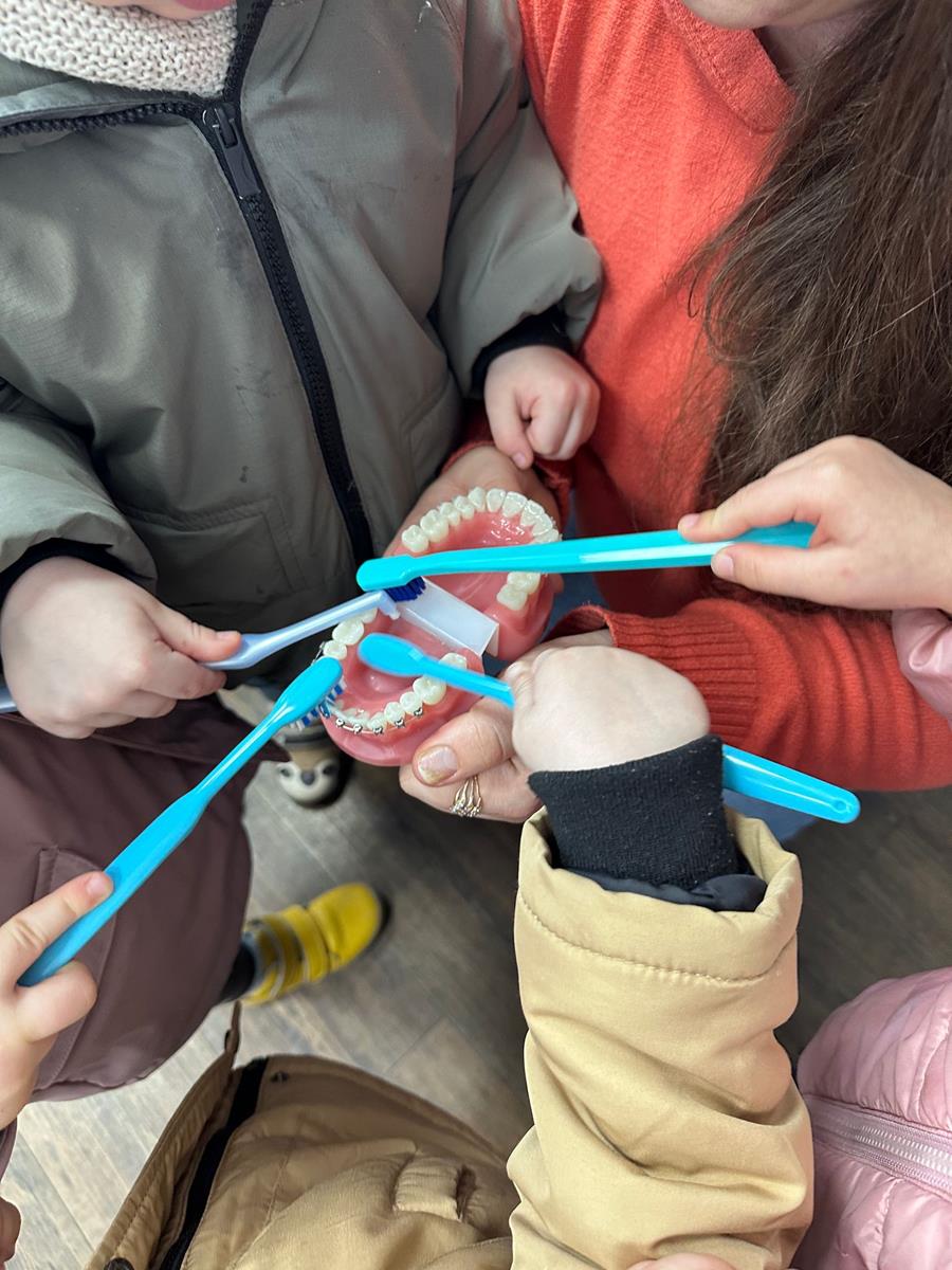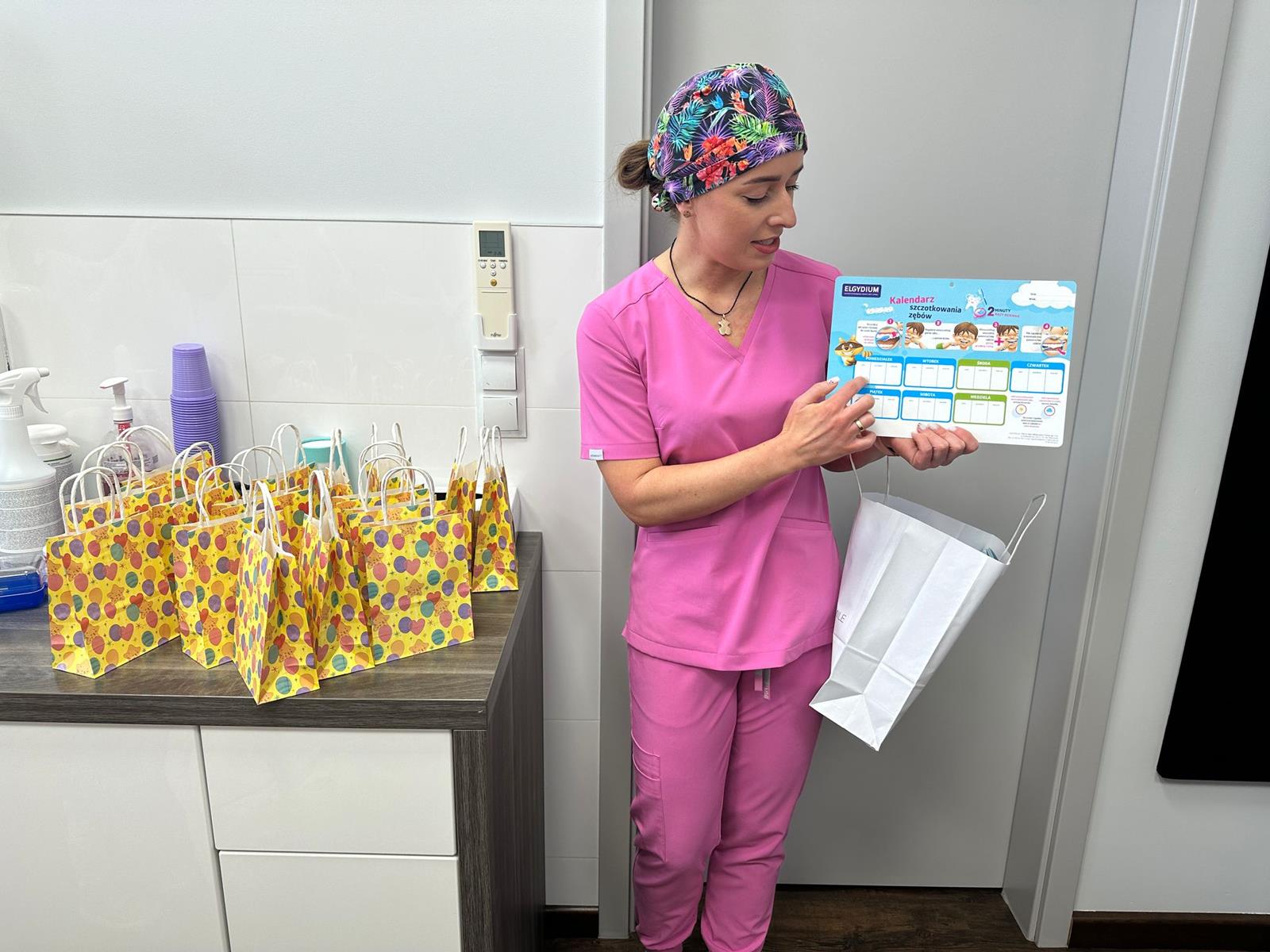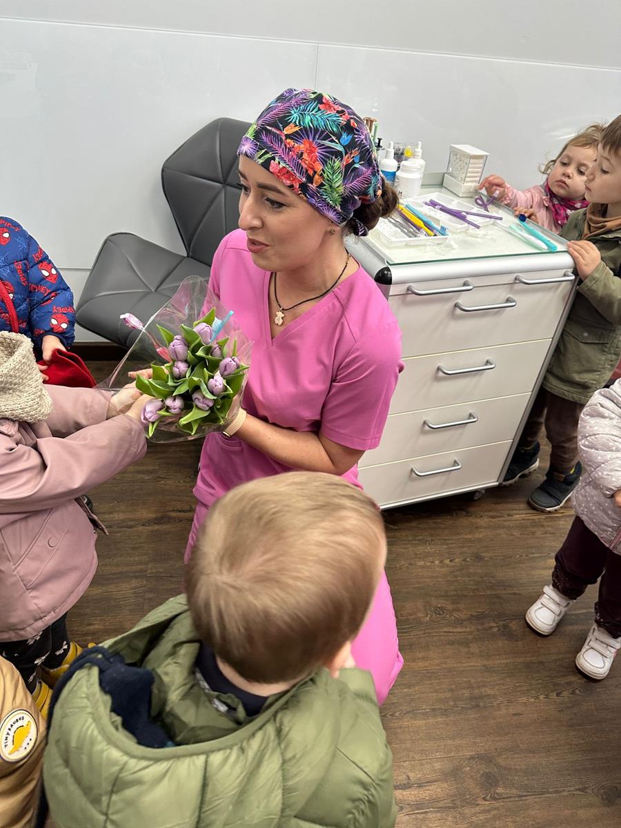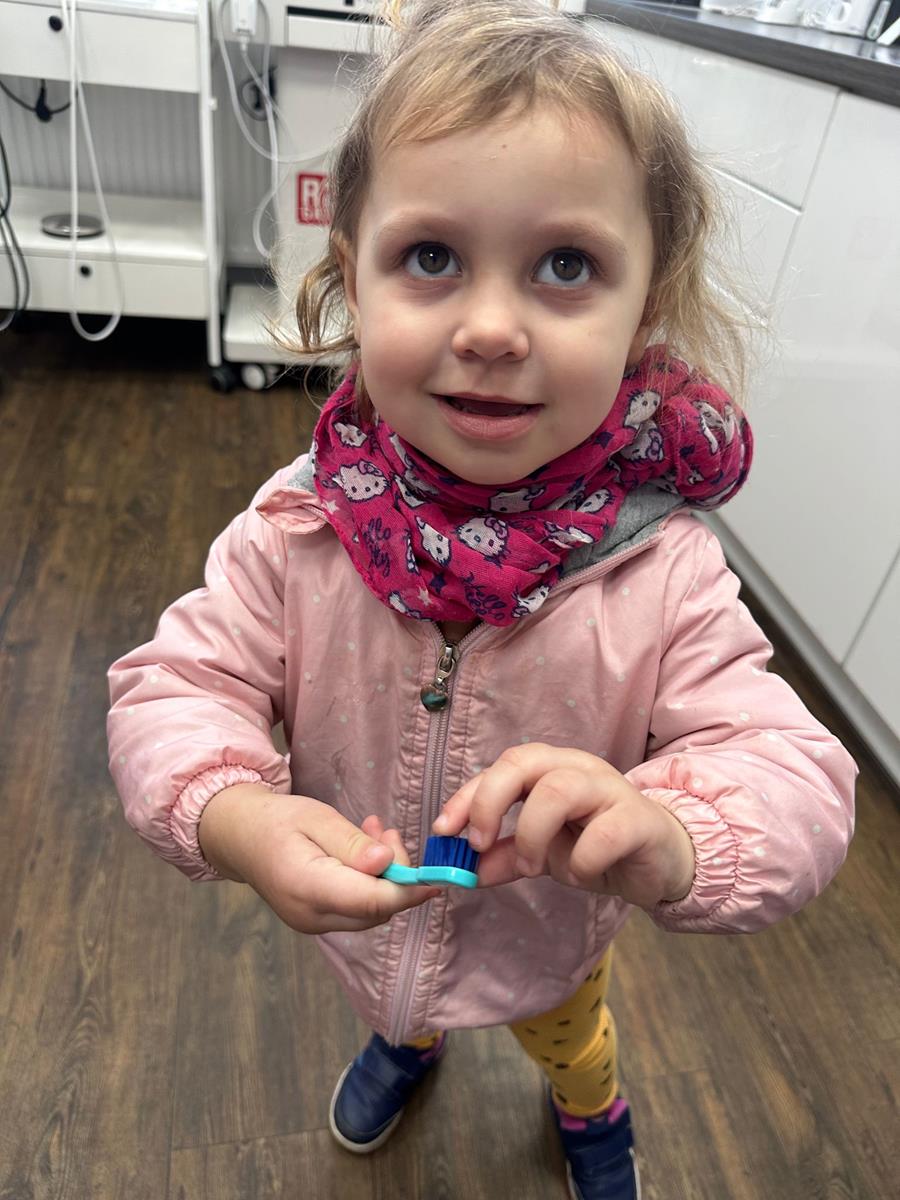 Dzieci ze starszej grupy żłobkowej wybrały się z wizytą do gabinetu stomatologicznego. Pani Ania zachęciła dzieci do zwiedzenia gabinetu, porozmawiała z dziećmi o higienie jamy ustnej, zdrowym odżywianiu i prawidłowym szczotkowaniu zębów. Kolejną atrakcją była przejażdżka w górę i w dół na fotelu dentystycznym i sprawdzenie do czego służą wszystkie dziwne urządzenia by oswoić się z gabinetem stomatologicznym. Na koniec pani rozdała wszystkim dzieciom upominki i dyplomy. Dziękujemy Ortoimplan Clinic za możliwość odwiedzin.