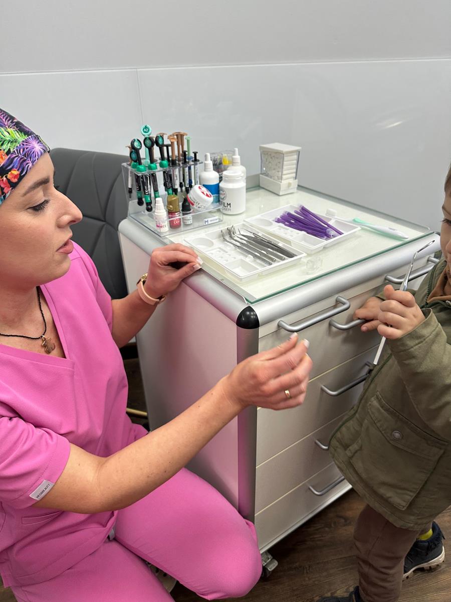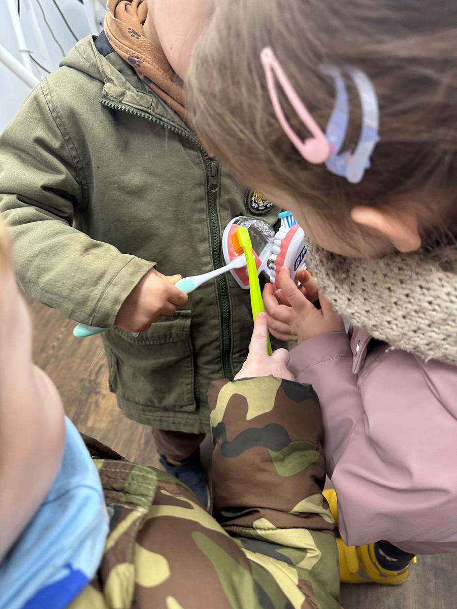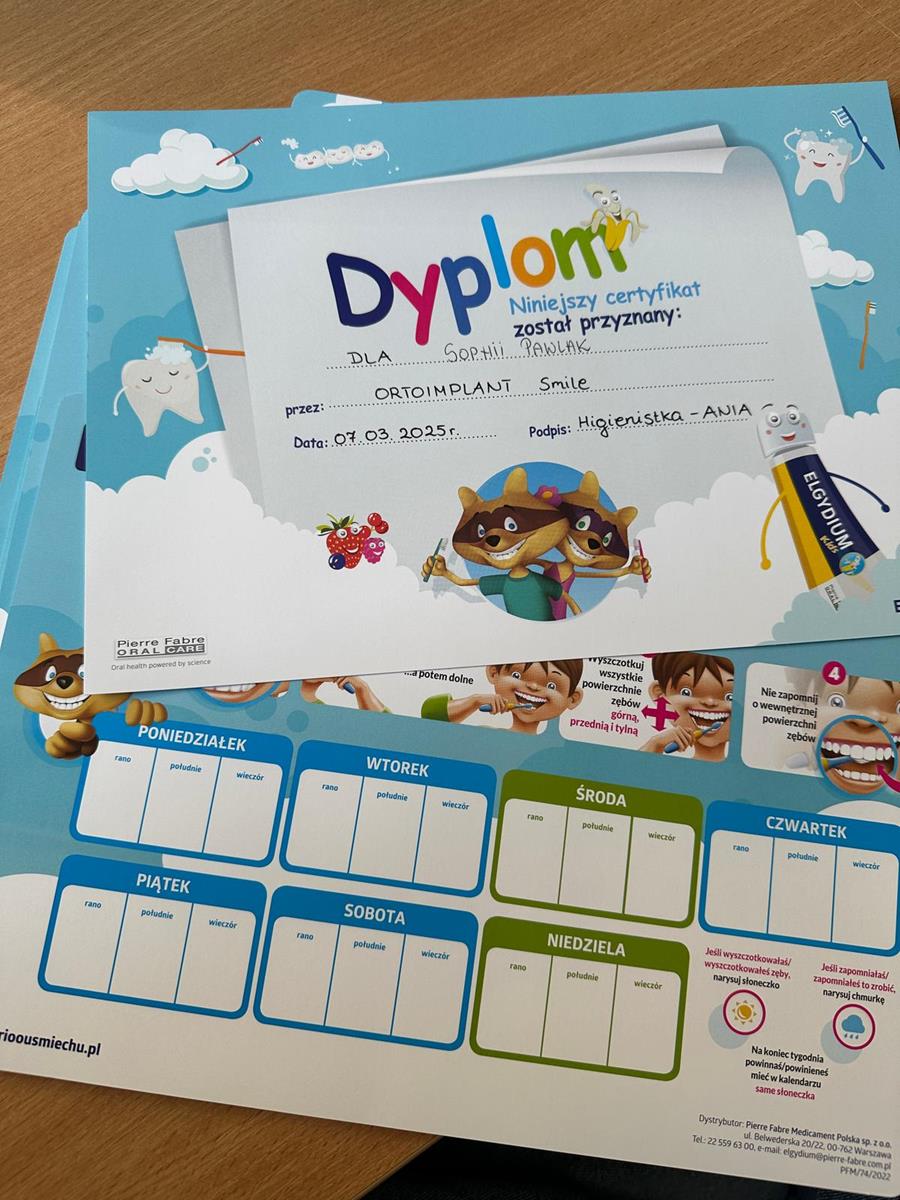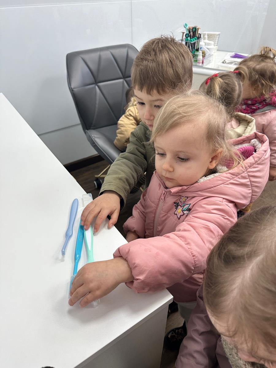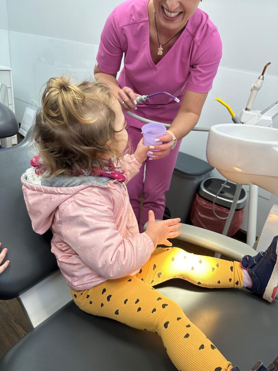 Dzieci ze starszej grupy żłobkowej wybrały się z wizytą do gabinetu stomatologicznego. Pani Ania zachęciła dzieci do zwiedzenia gabinetu, porozmawiała z dziećmi o higienie jamy ustnej, zdrowym odżywianiu i prawidłowym szczotkowaniu zębów. Kolejną atrakcją była przejażdżka w górę i w dół na fotelu dentystycznym i sprawdzenie do czego służą wszystkie dziwne urządzenia by oswoić się z gabinetem stomatologicznym. Na koniec pani rozdała wszystkim dzieciom upominki i dyplomy. Dziękujemy Ortoimplan Clinic za możliwość odwiedzin.