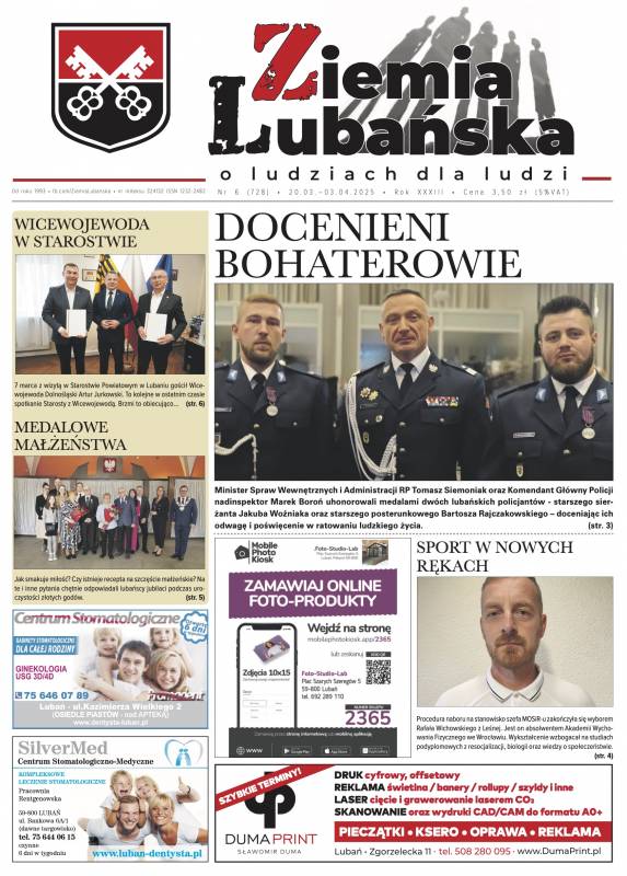 W najnowszym wydaniu piszemy m.in. , o odznaczonych policjantach z Komendy w Lubaniu, o nowym dyrektorze MOSiR, o wystawie malarstwa - "Jaka jesteś? próbuje dociec Kulczycki", o tym jak obchodziliśmy Dzień Kobiet.