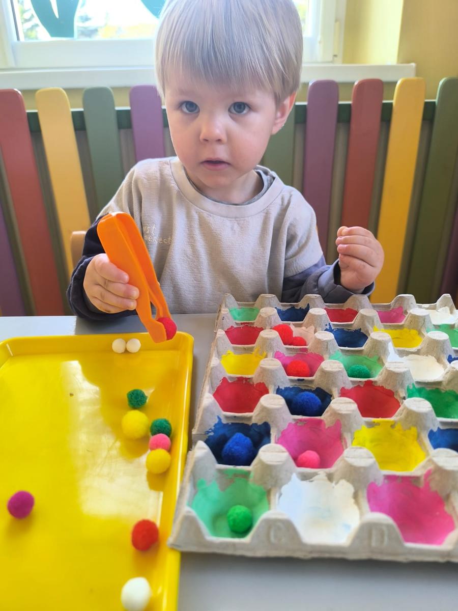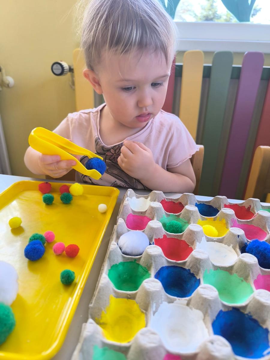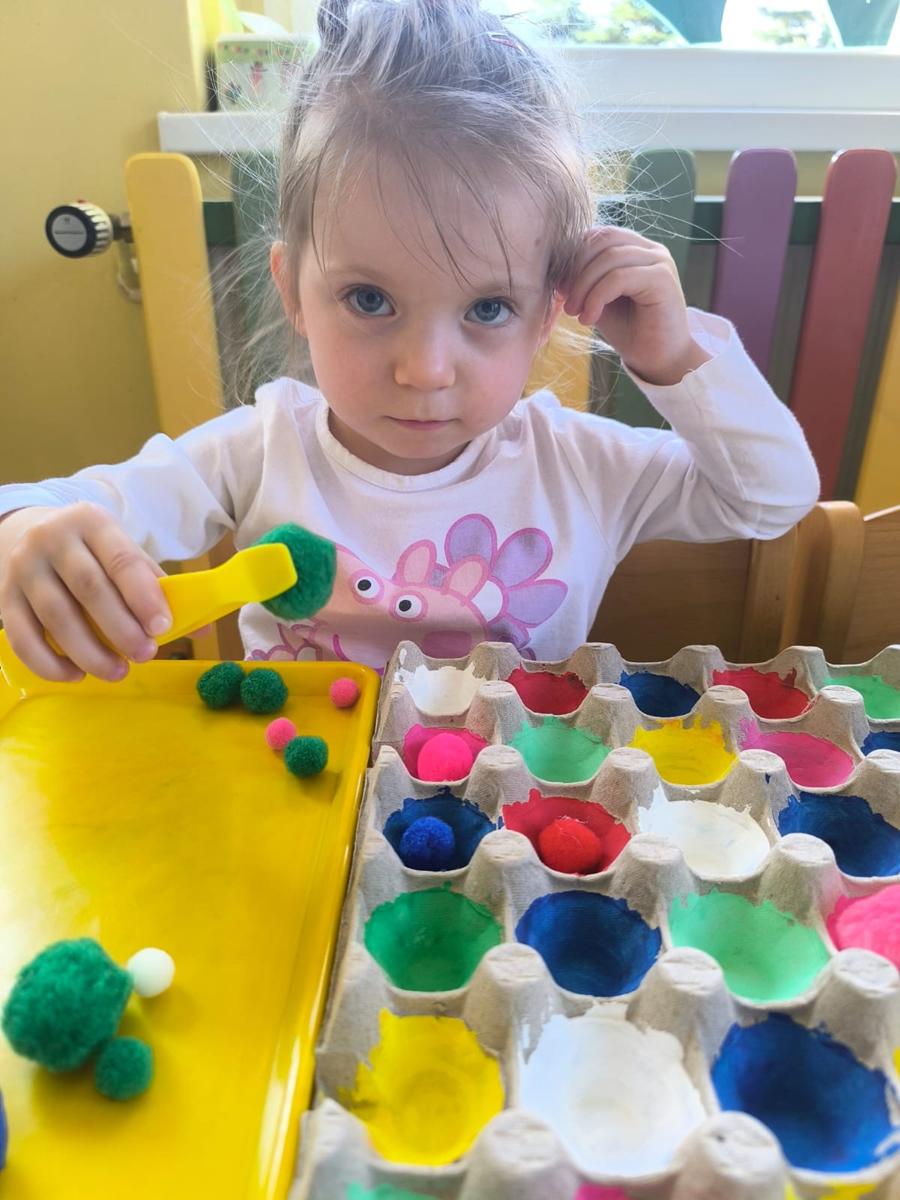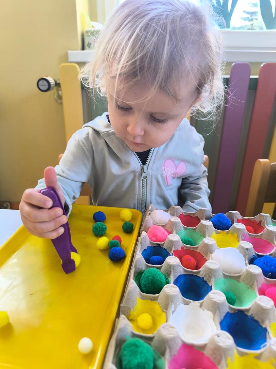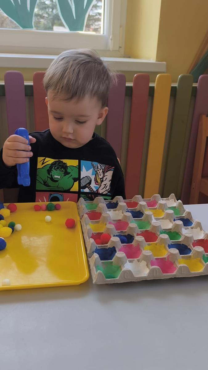 Ćwiczenie motoryki małej, chwyt pęsetowy, logiczne myślenie oraz postrzeganie podobieństw, różnic, a przede wszystkim utrwalenie kolorów. Dla naszych Pszczółek nie ma rzeczy niemożliwych .