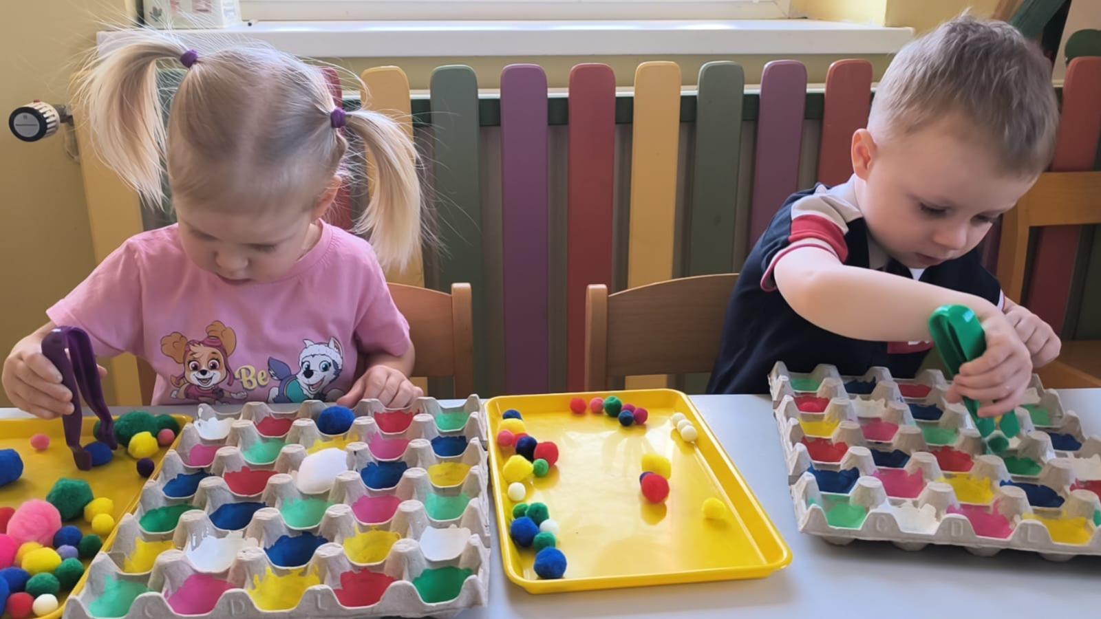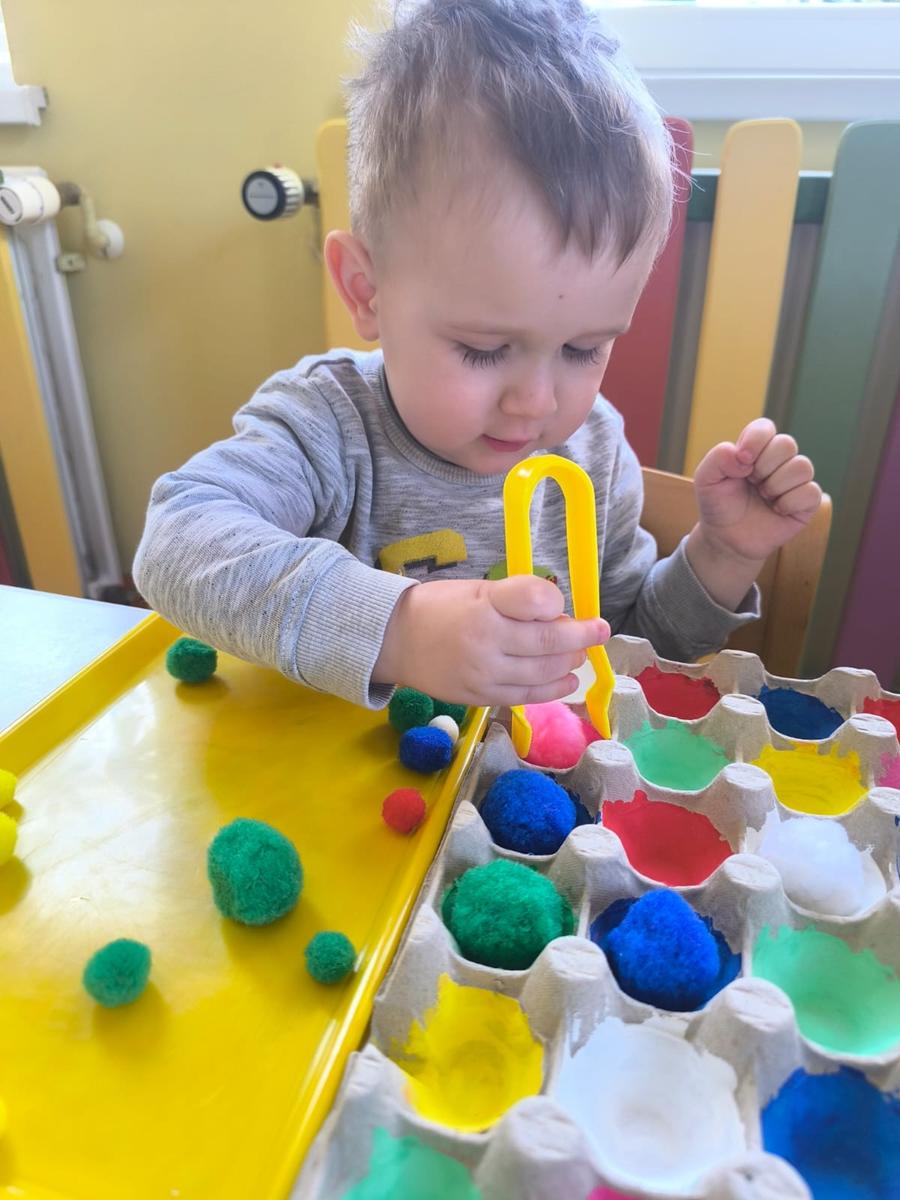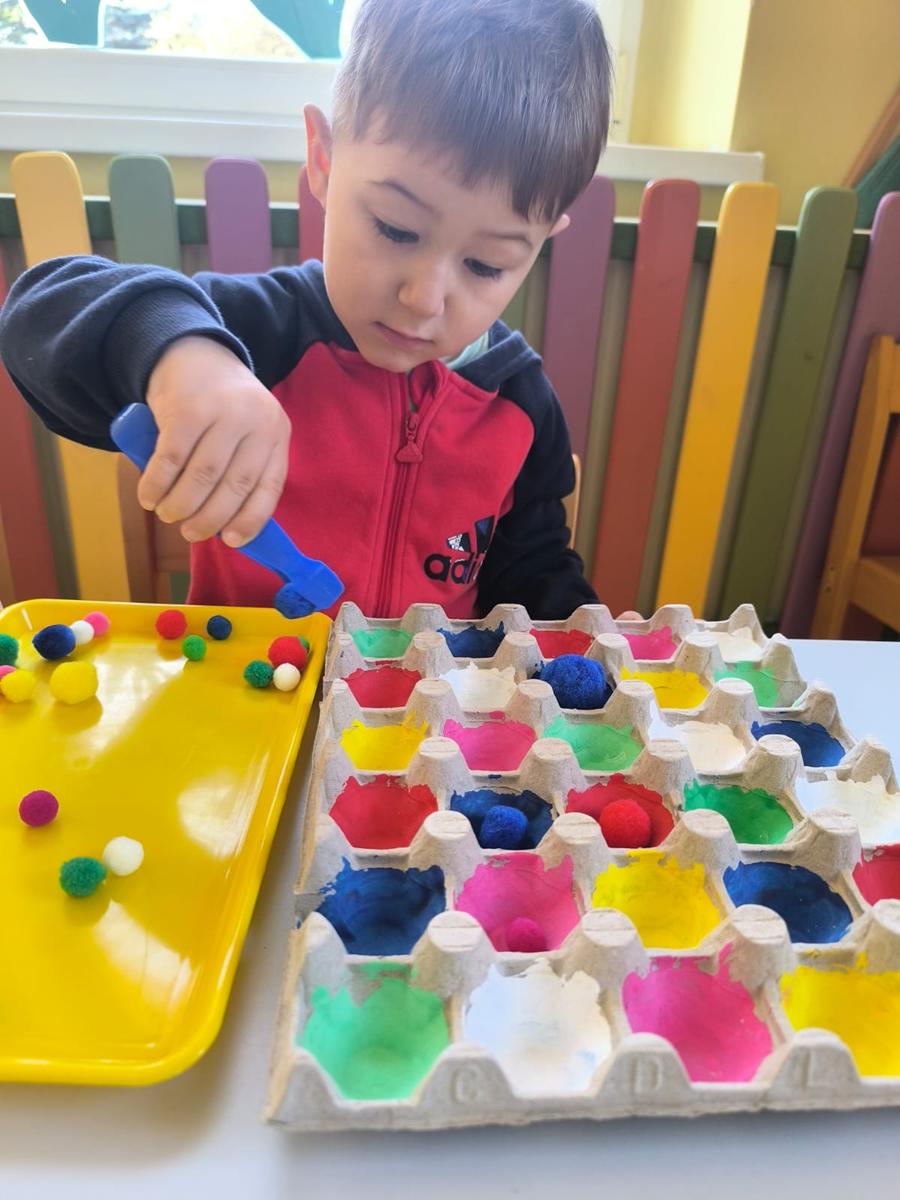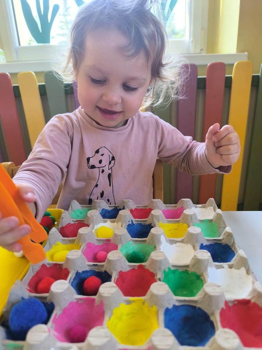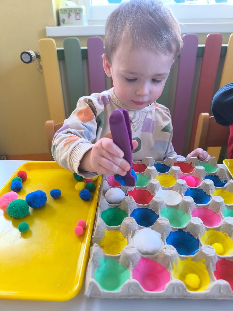 Ćwiczenie motoryki małej, chwyt pęsetowy, logiczne myślenie oraz postrzeganie podobieństw, różnic, a przede wszystkim utrwalenie kolorów. Dla naszych Pszczółek nie ma rzeczy niemożliwych .