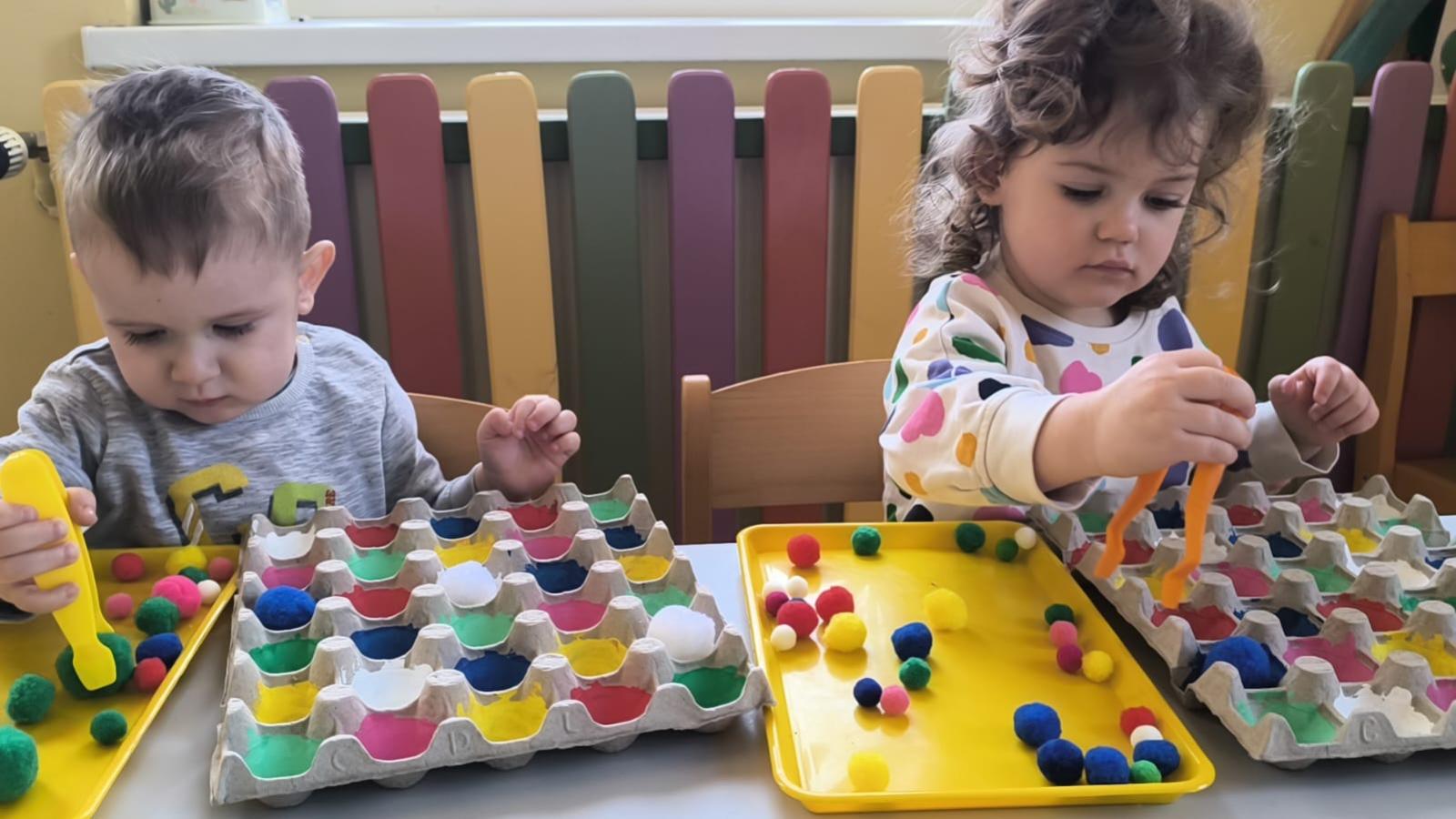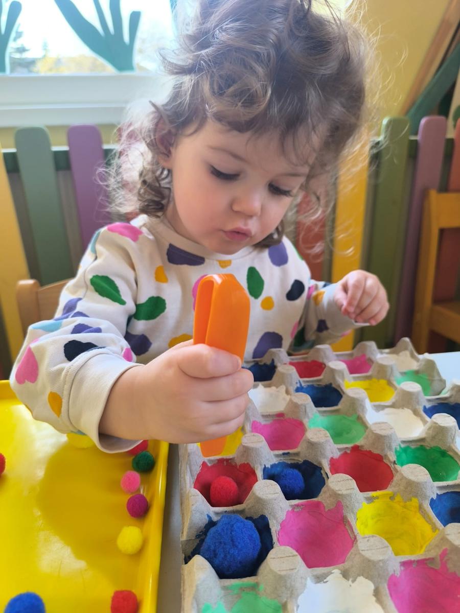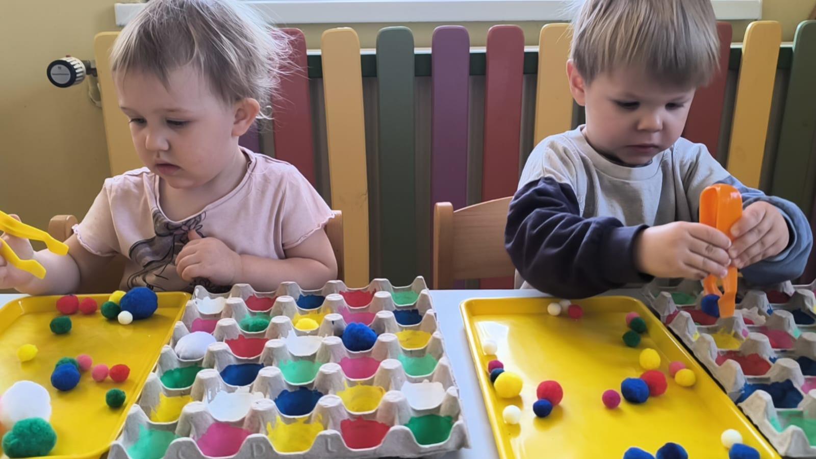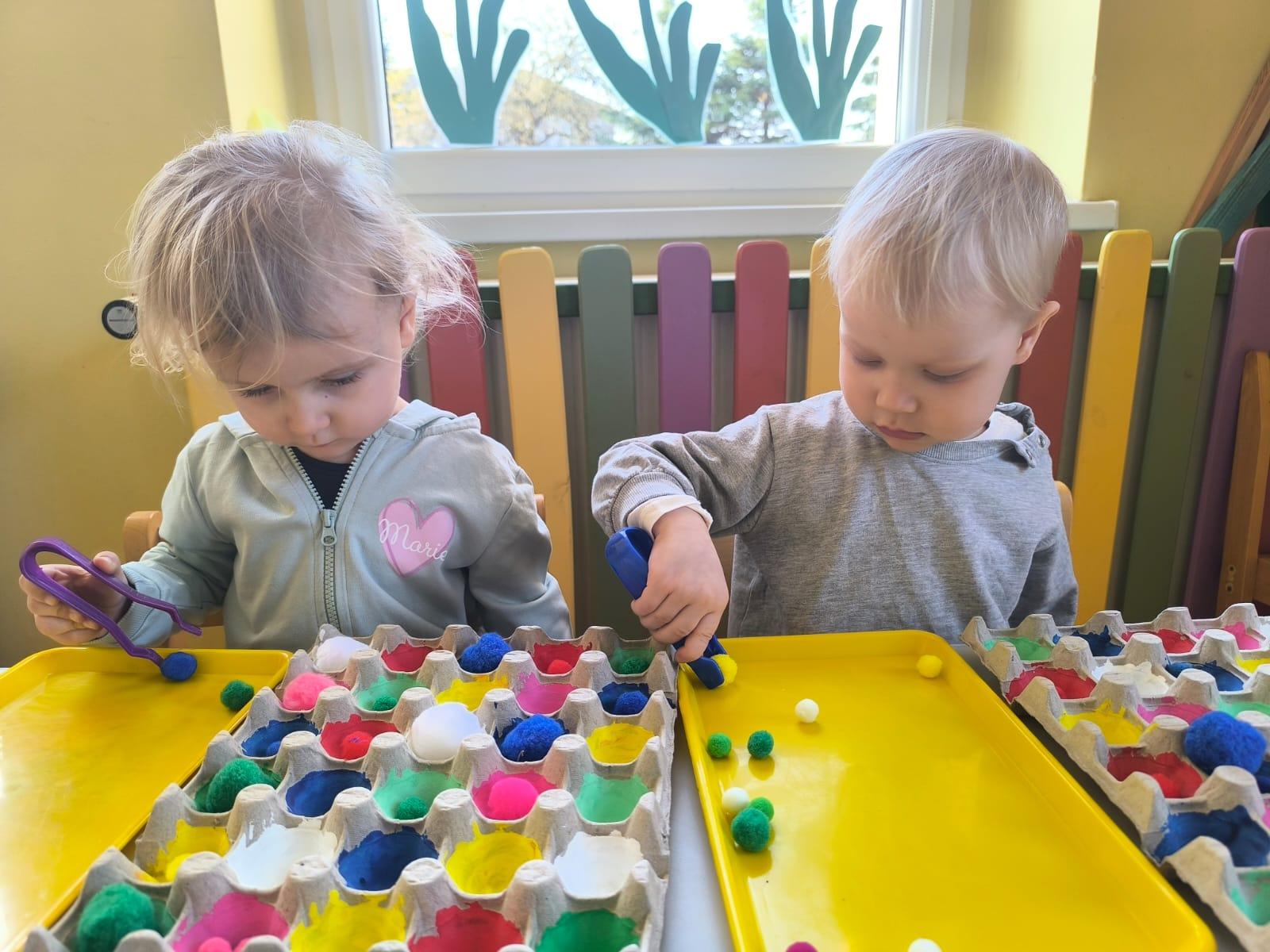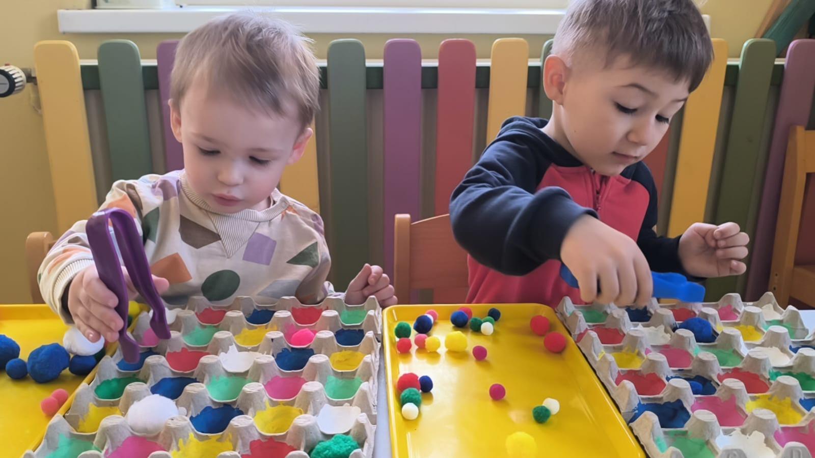 Ćwiczenie motoryki małej, chwyt pęsetowy, logiczne myślenie oraz postrzeganie podobieństw, różnic, a przede wszystkim utrwalenie kolorów. Dla naszych Pszczółek nie ma rzeczy niemożliwych .