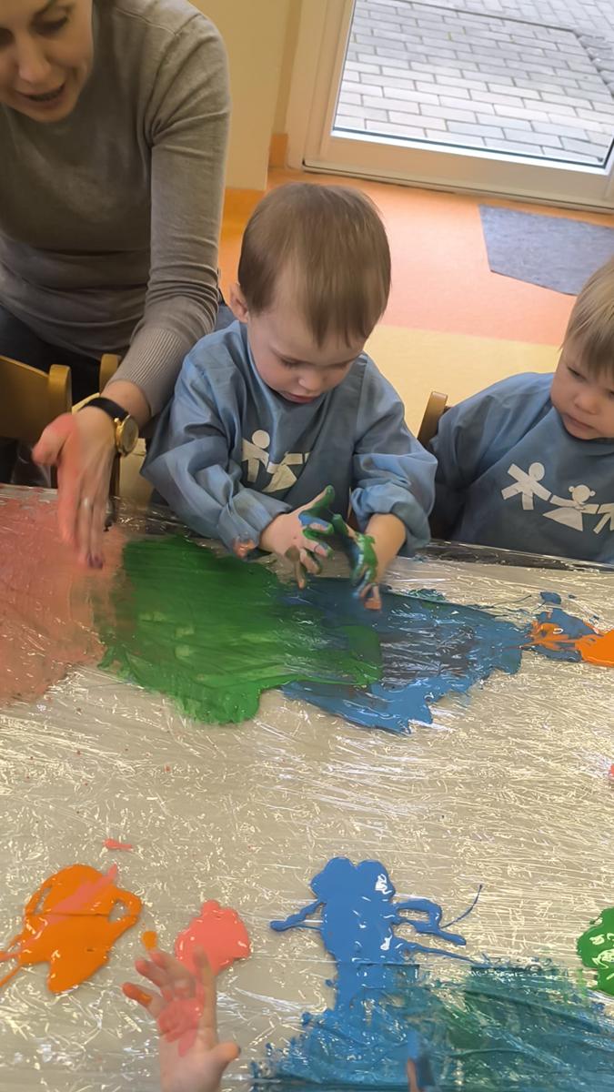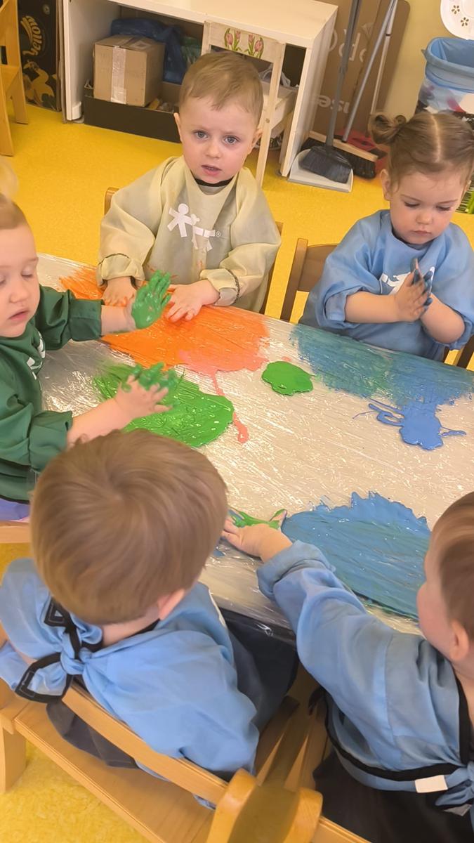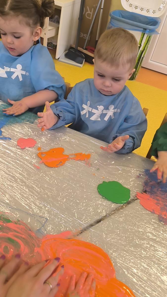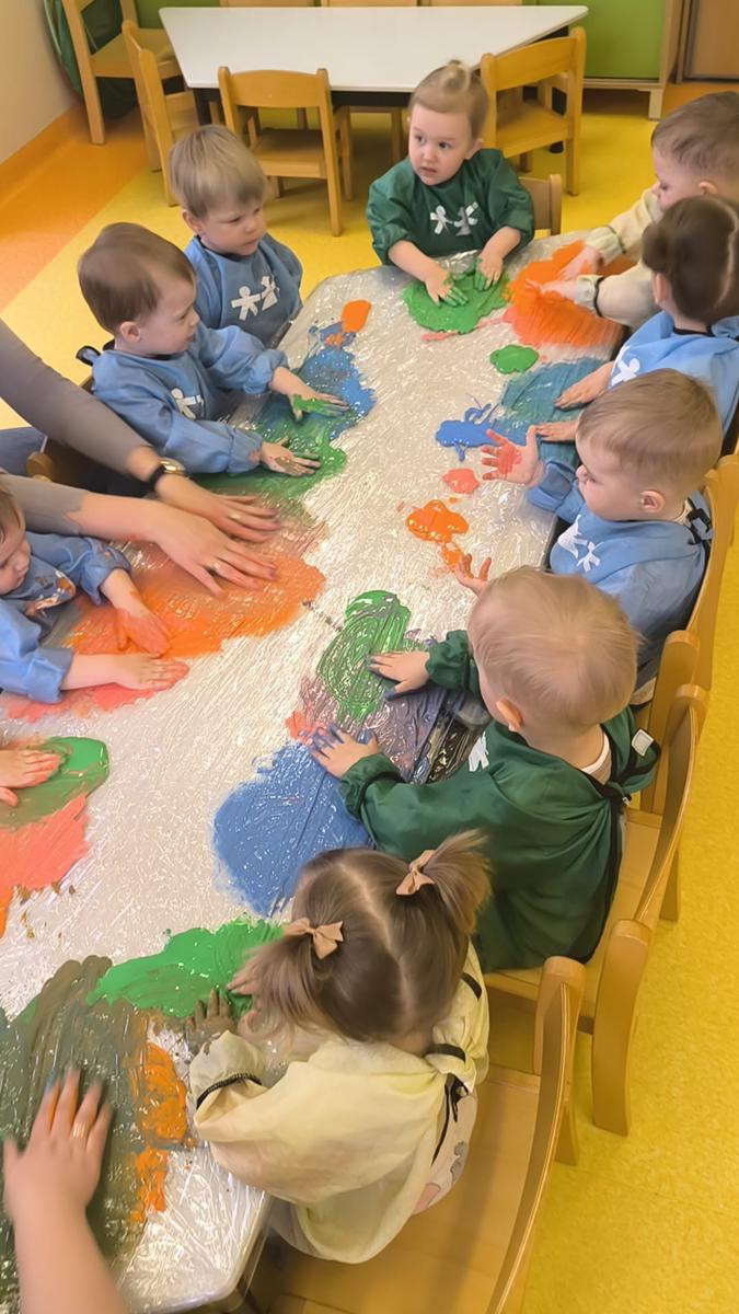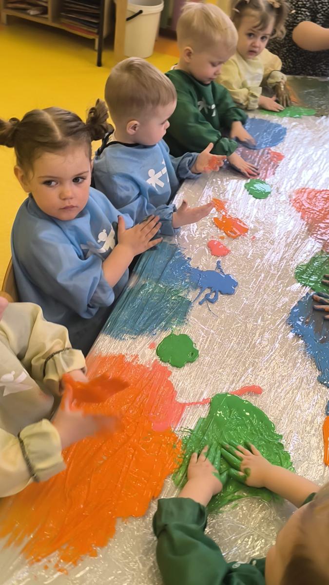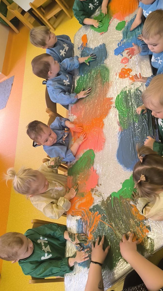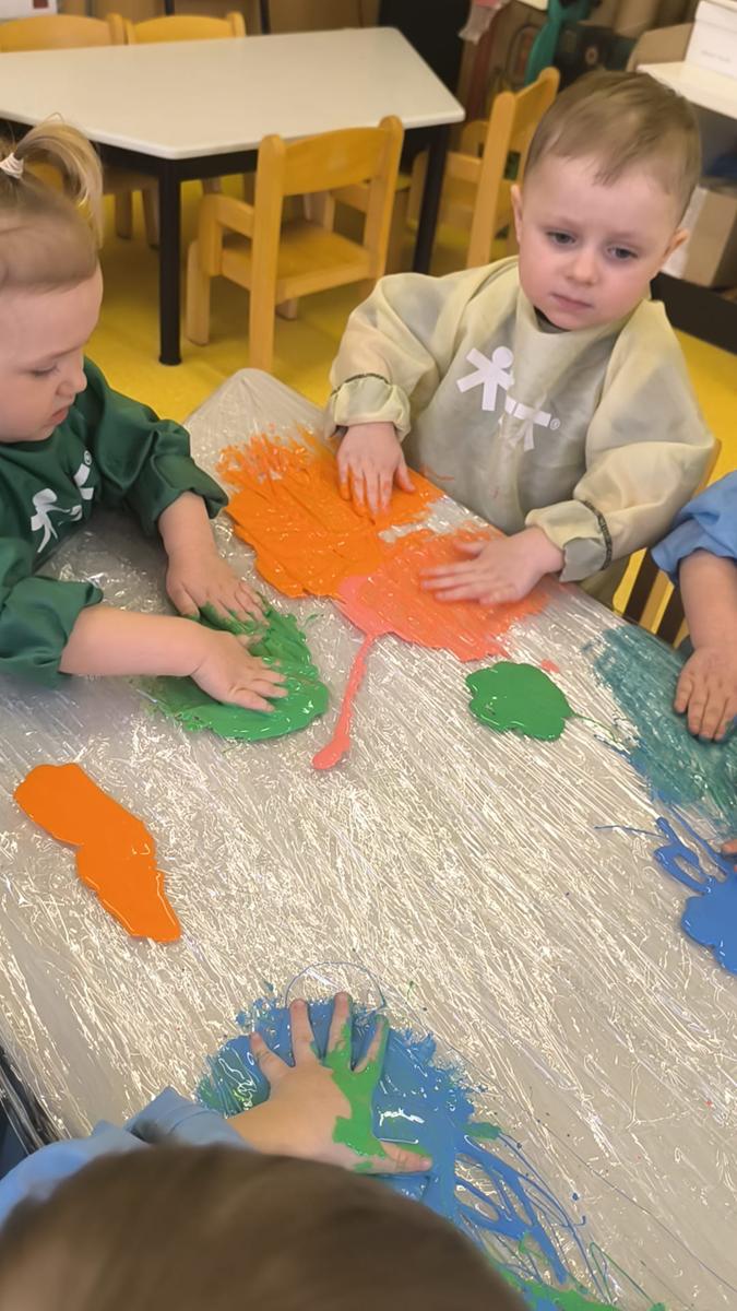 My klepiemy do rytmu rękami, my klepiemy - Ty też poklep z nami. Bardzo miłe jest takie klepanko, drogi kolego i koleżanko… Dzieci na zajęciach klepały na folii rękoma do rytmu piosenki. Jest to forma działań plastycznych, oraz doskonałe ćwiczenie motoryki małej, koordynacji wzrokowo – ruchowej.