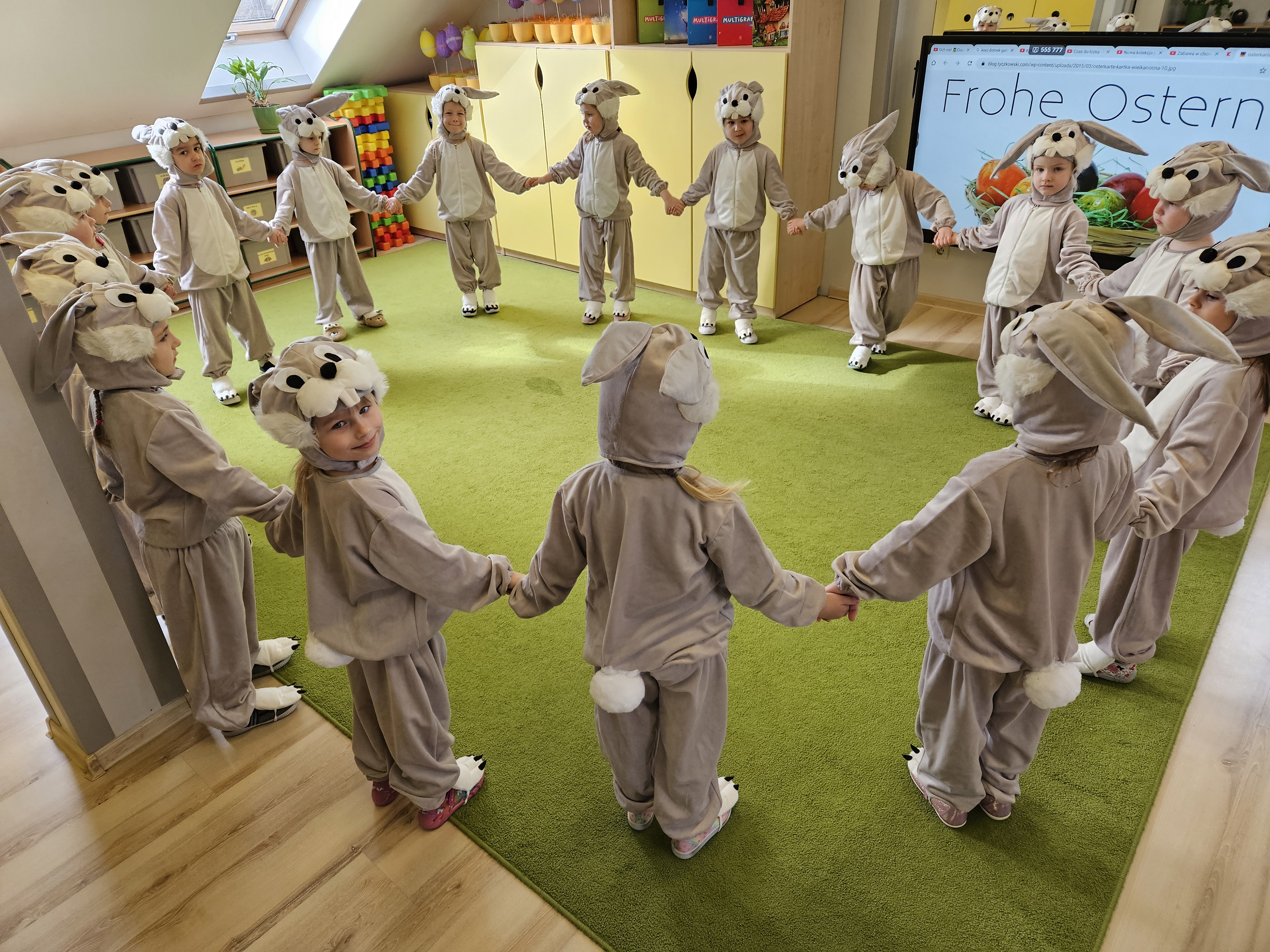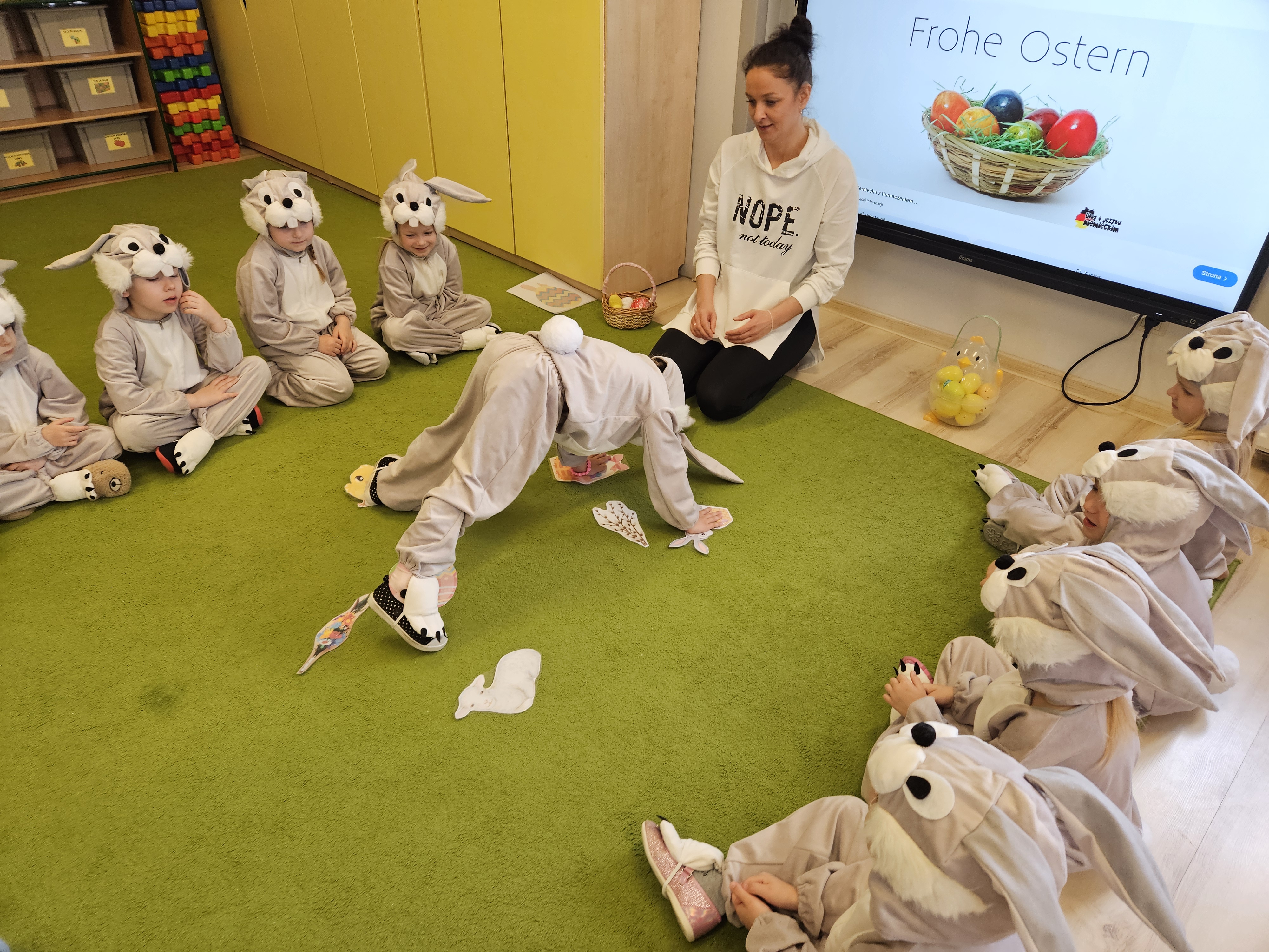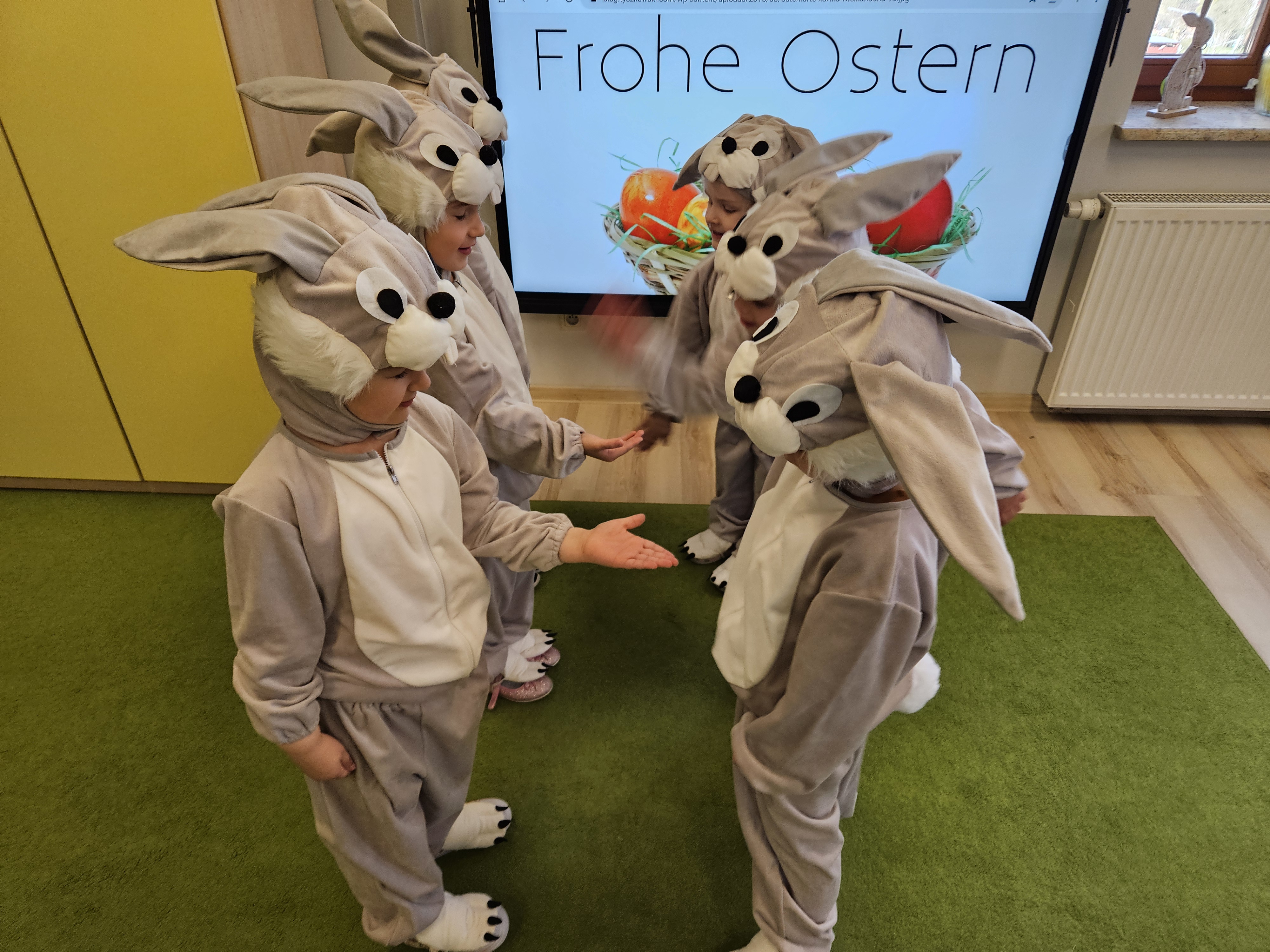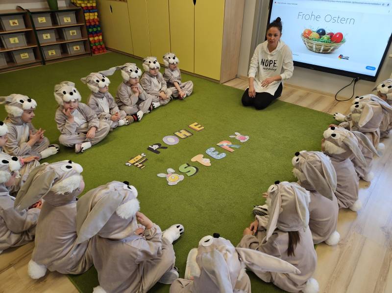 Frohe Ostern. Wielkanocne zajęcia z języka niemieckiego u czterolatków.