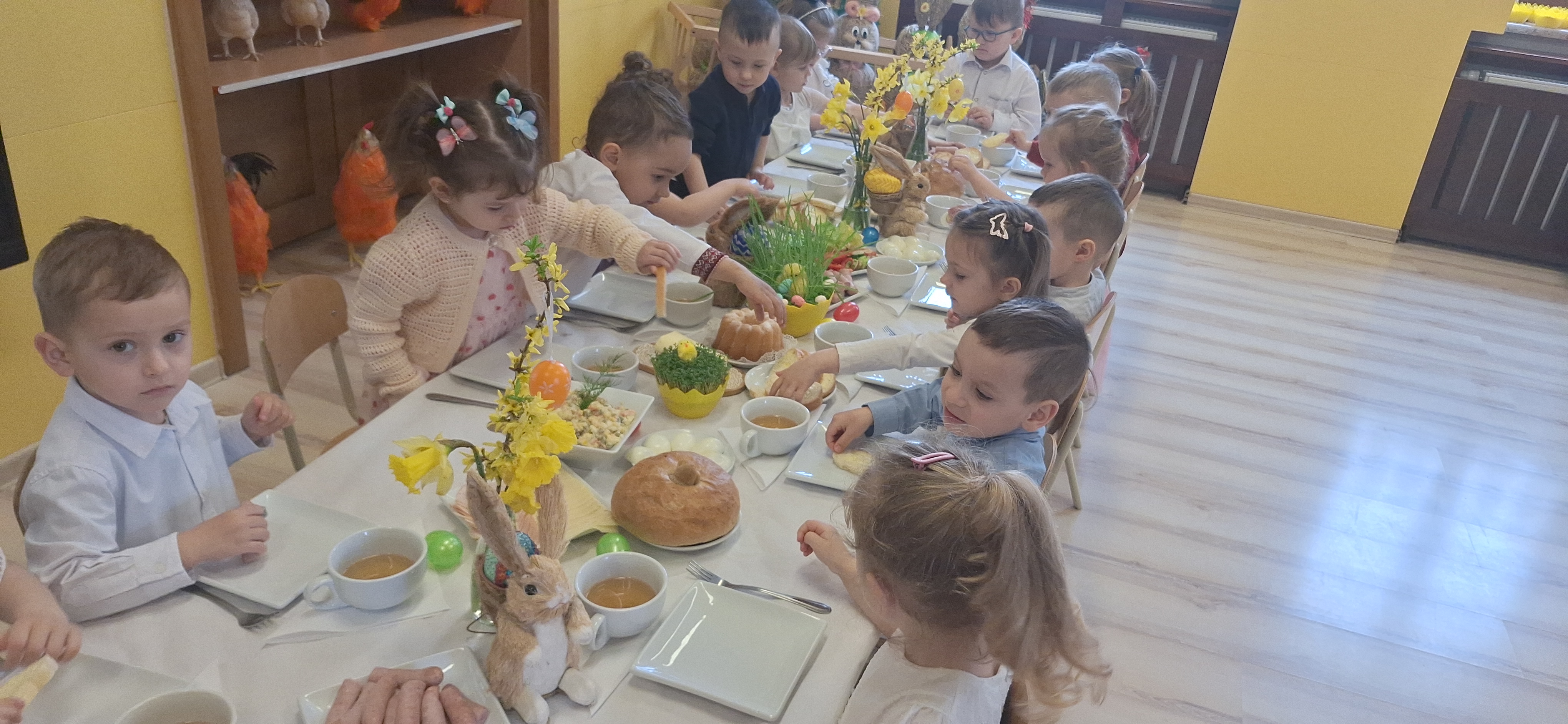 Wielkanocne śniadanie małych akademików stało się już coroczną tradycją. W przedświątecznym tygodniu dzieci zasiadły do wielkanocnego śniadanka przy pięknie zastawionym stole.
