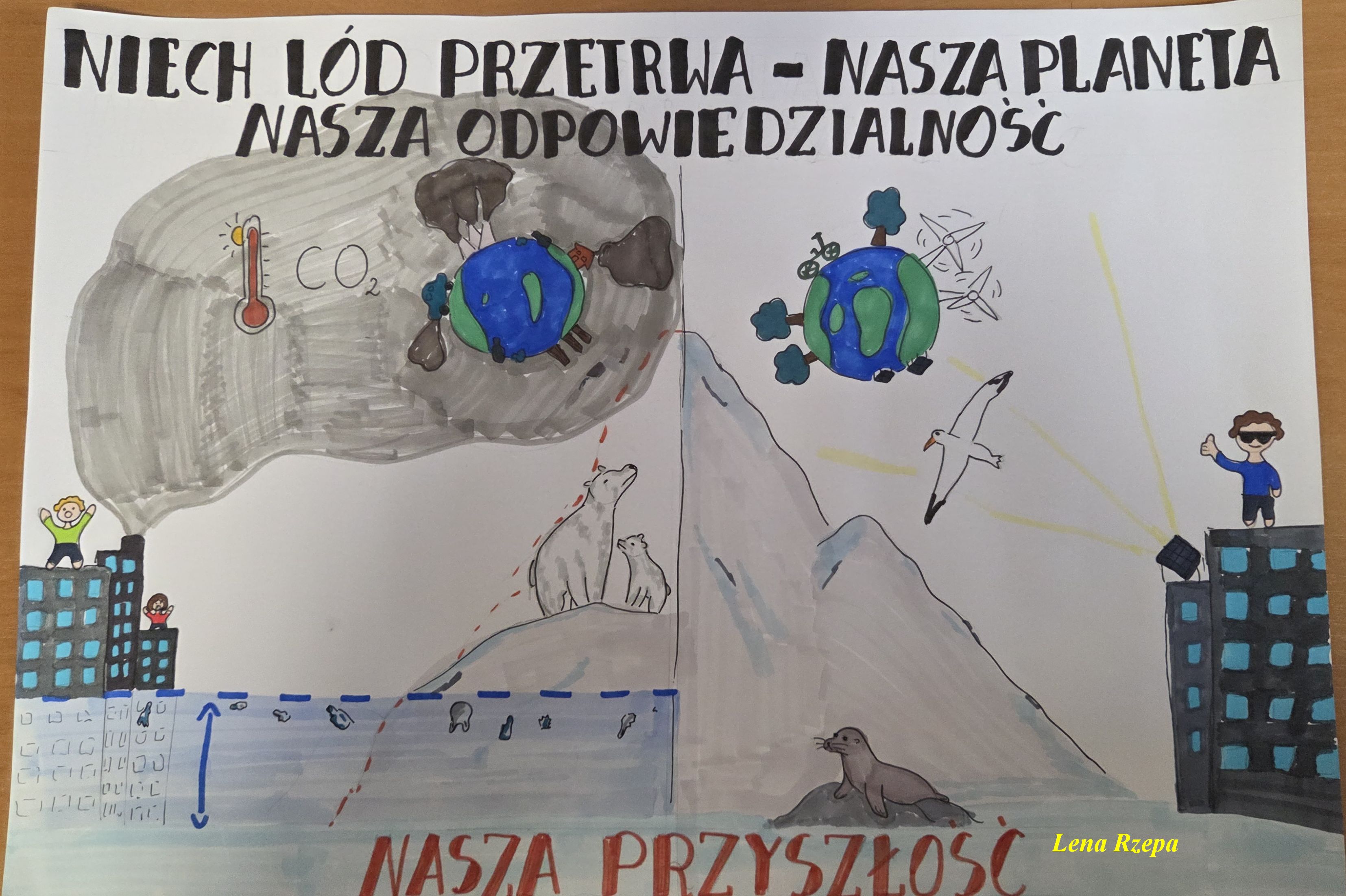 Ich zadaniem było przygotowanie pracy, w dowolnej technice plastycznej, zgodnej z tematem „Chroniąc lodowce chronimy przyszłość”.