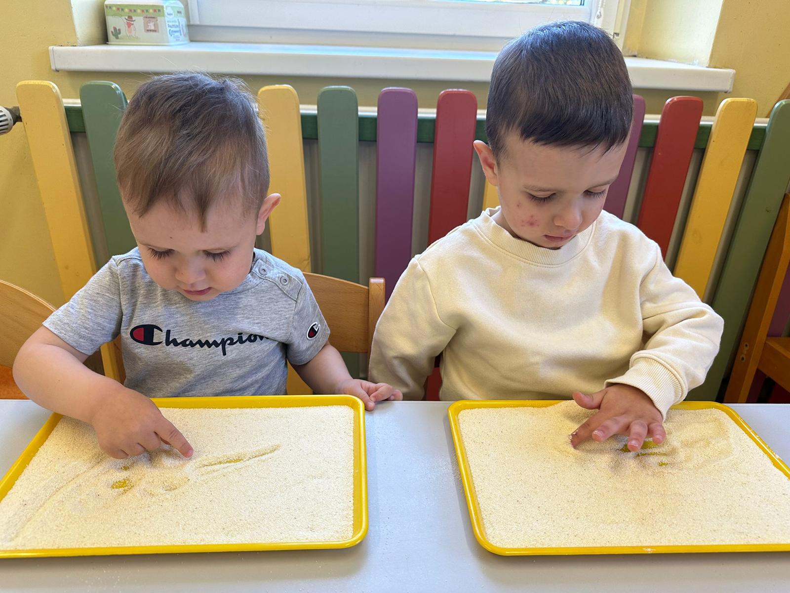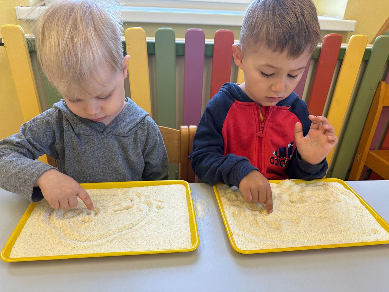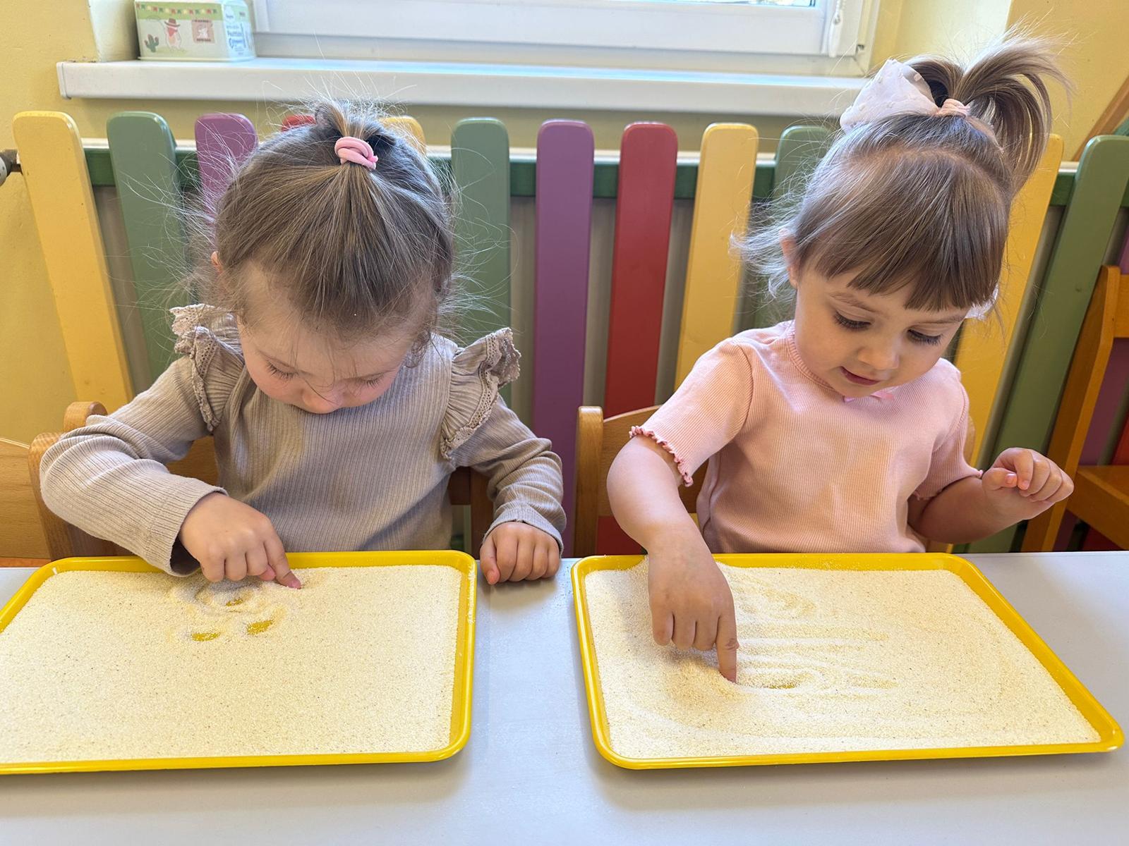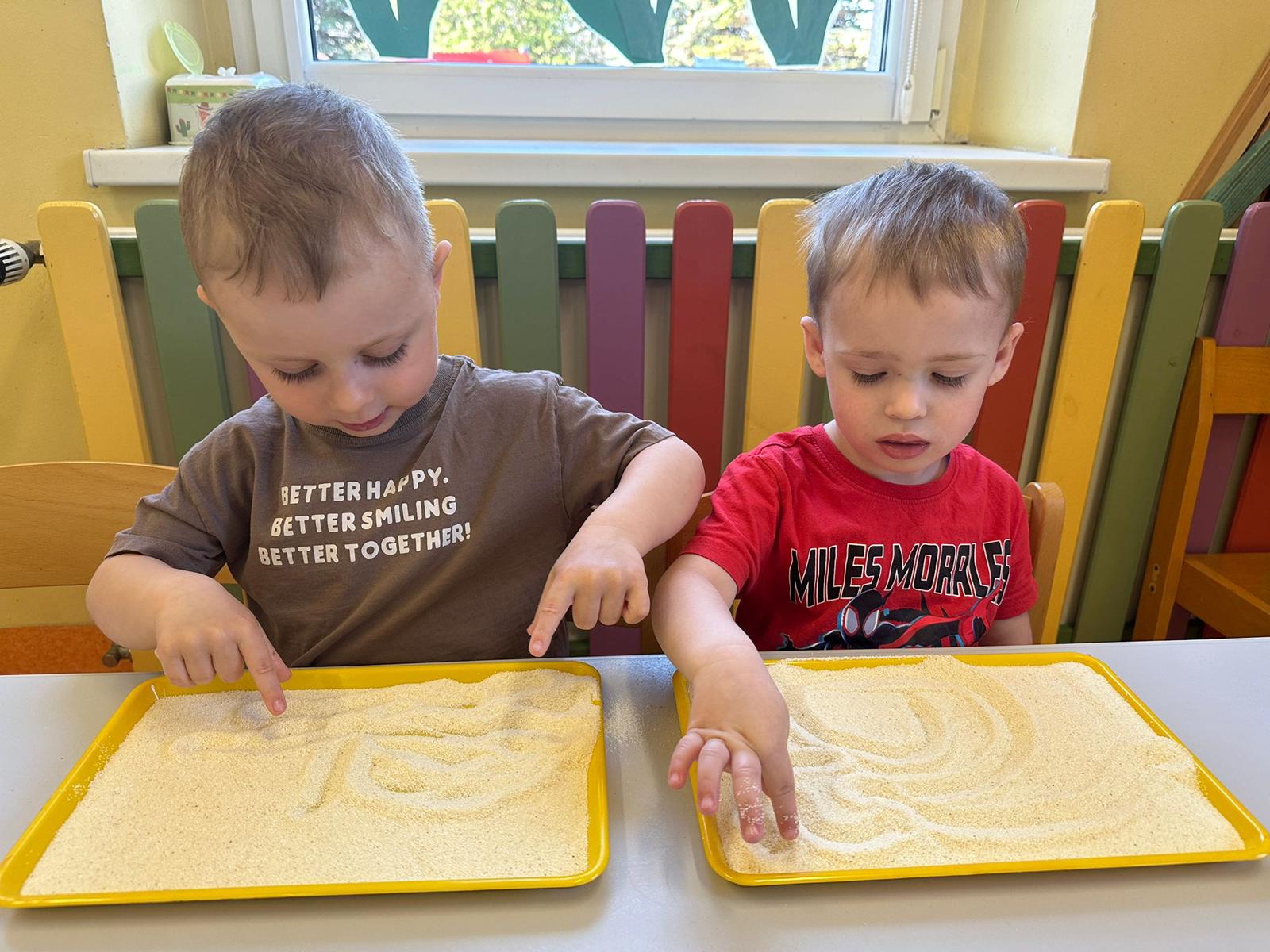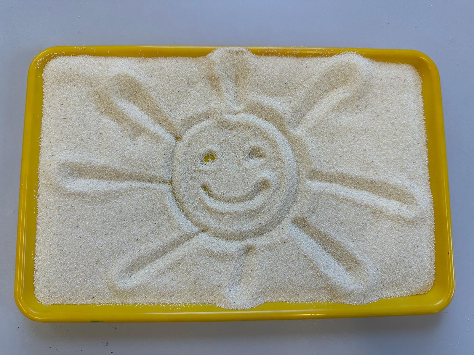 Zabawa ma na celu pobudzić zmysły dziecka, stymulować prawidłowy rozwój układu nerwowego i mózgu. Kreślenie paluszkami dowolnych rysunków usprawnia motorykę małą czyli ruch palców i dłoni.