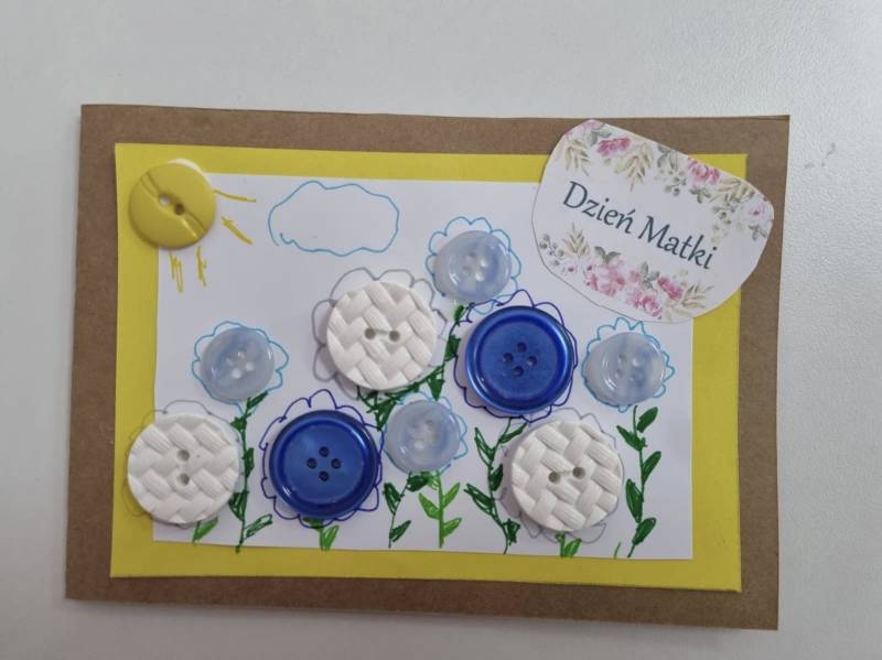Nasze zdolne dzieci z ogromnym zaangażowaniem wykonały własnoręczne kartki z życzeniami dla swoich kochanych Mam! Każda kartka została ozdobiona guzikami.