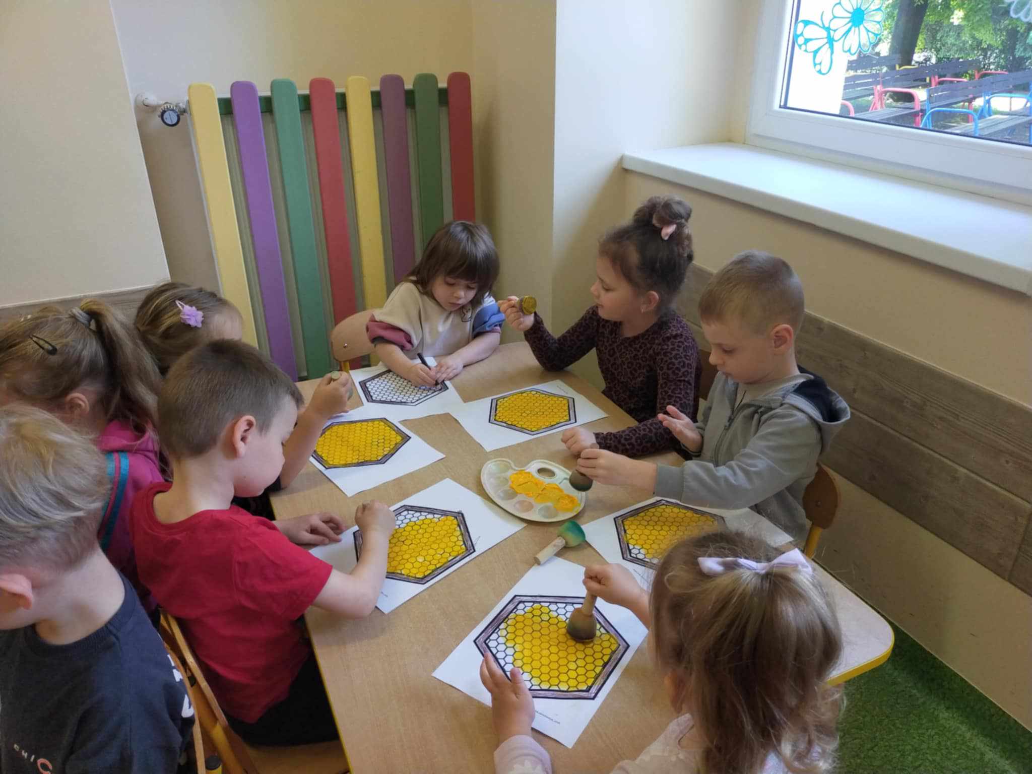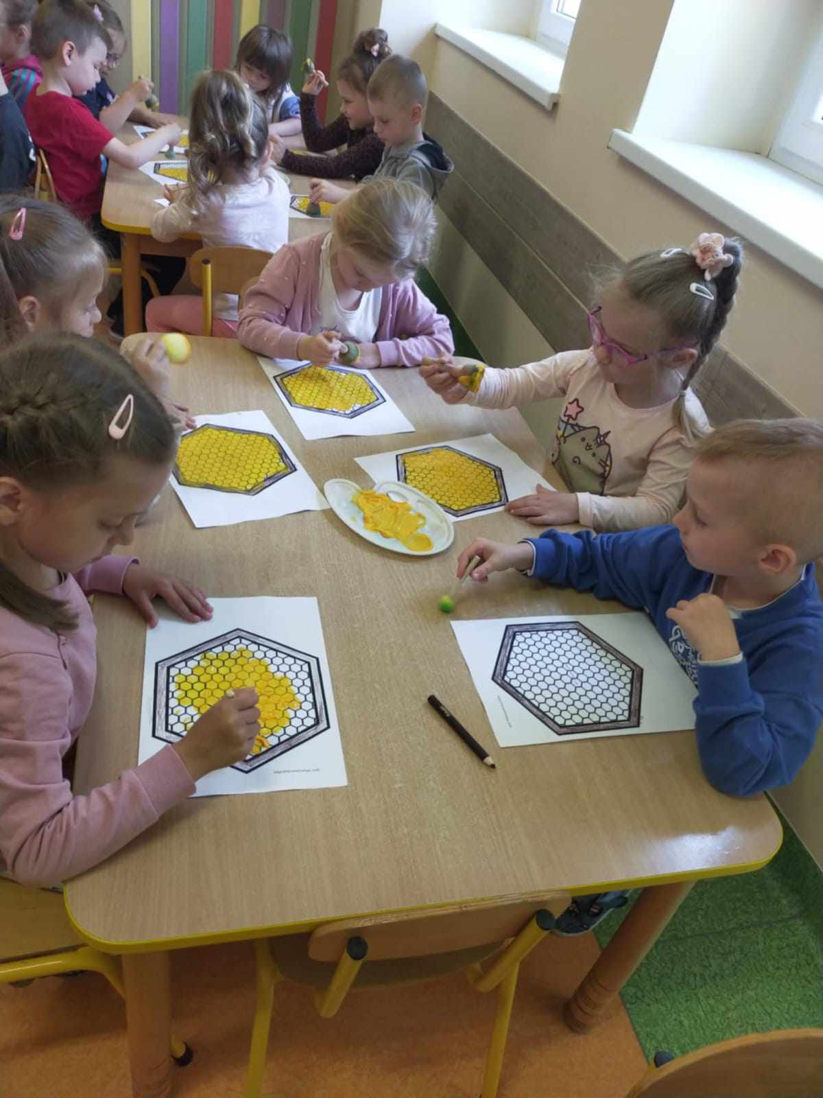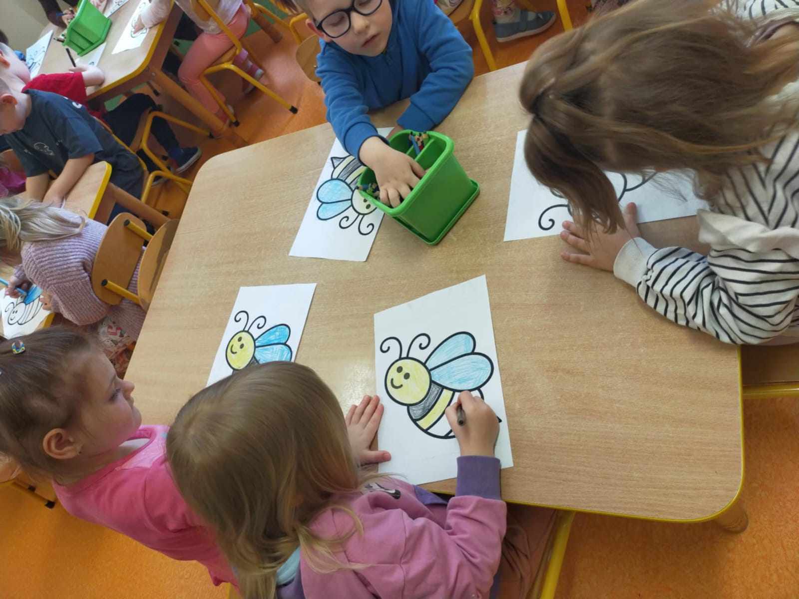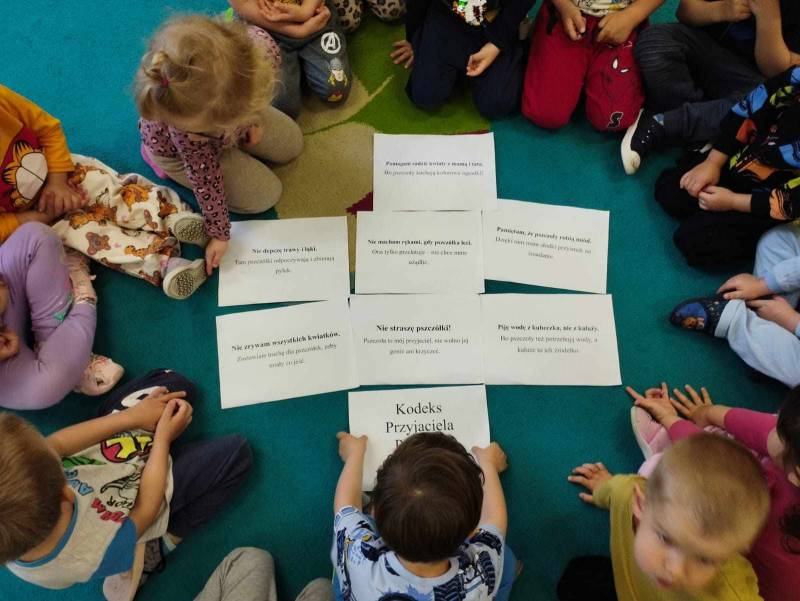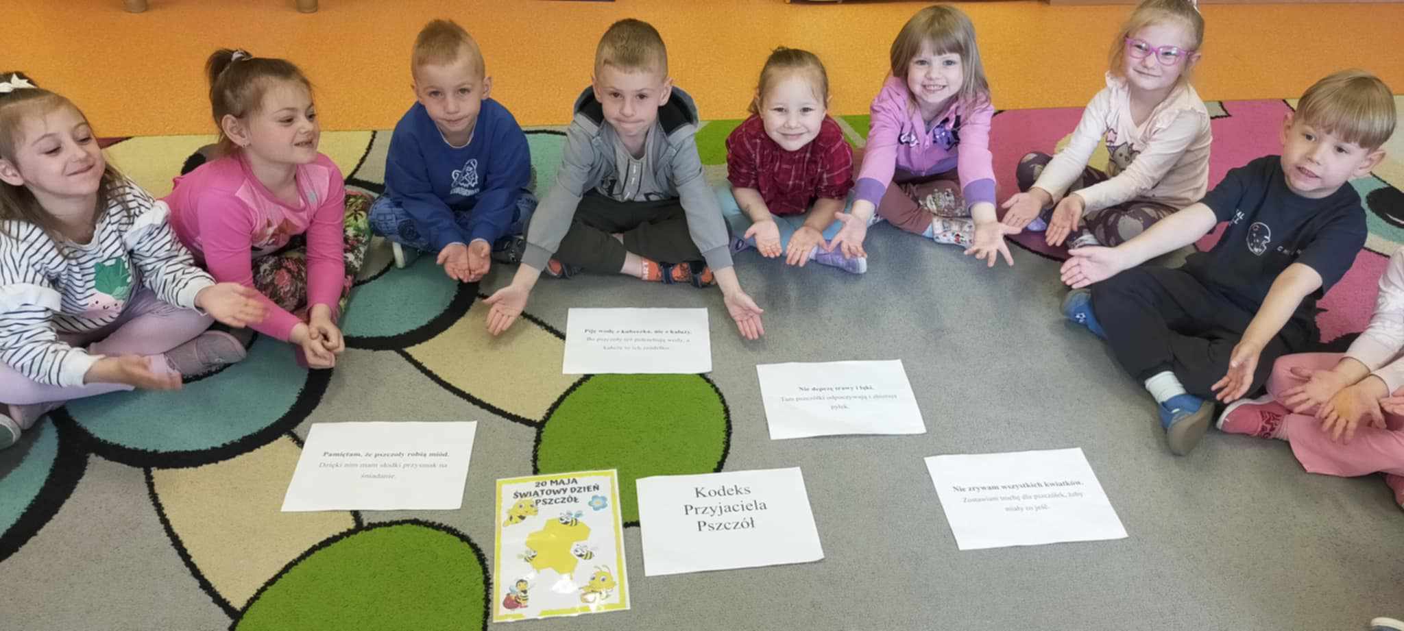 W naszym przedszkolu obchodziliśmy Dzień Pszczół, który był pełen radości, nauki i kreatywnych zabaw. Celem wydarzenia było przybliżenie dzieciom roli pszczół w przyrodzie oraz uwrażliwienie ich na potrzebę ochrony tych pożytecznych owadów.Dzieci brały udział w zajęciach plastycznych, podczas których tworzyły pszczółki, ule i kwiaty z różnych materiałów. Zabawach sensorycznych i smakowych, poznając miód wszystkimi zmysłami – jego zapach, smak i konsystencję. Edukacyjnych opowieściach o życiu pszczół – przedszkolaki dowiedziały się, jak wygląda cykl życia pszczoły i jak powstaje miód. Spacerze do parku, gdzie obserwowały „hotel dla owadów” i rozmawiały o tym, jak można pomagać pszczołom w mieście. Dzień był nie tylko pełen zabawy, ale także wartościowej wiedzy, którą dzieci z pewnością zapamiętają na długo.