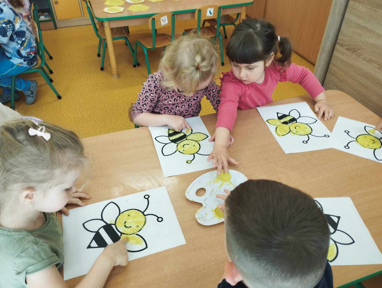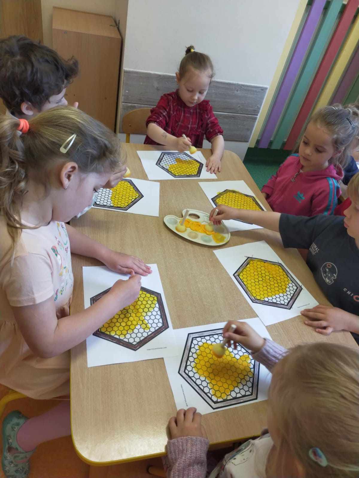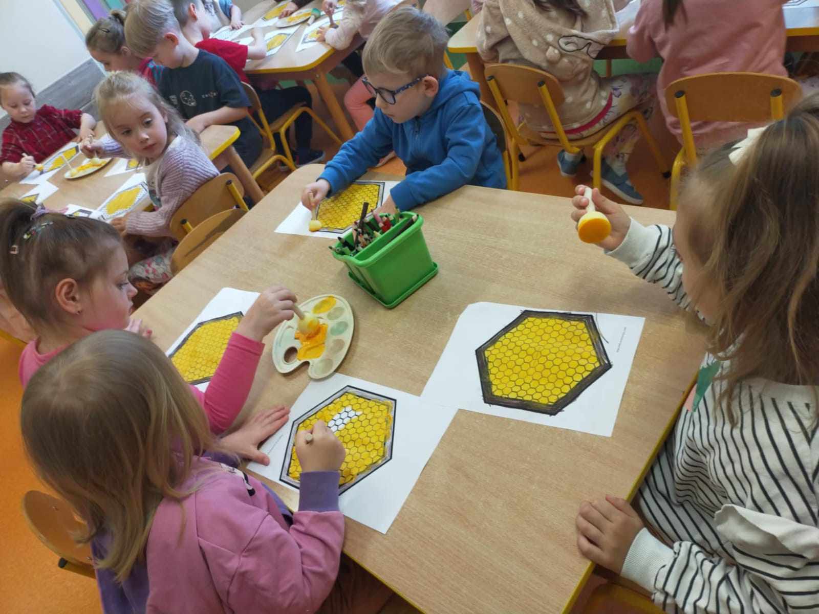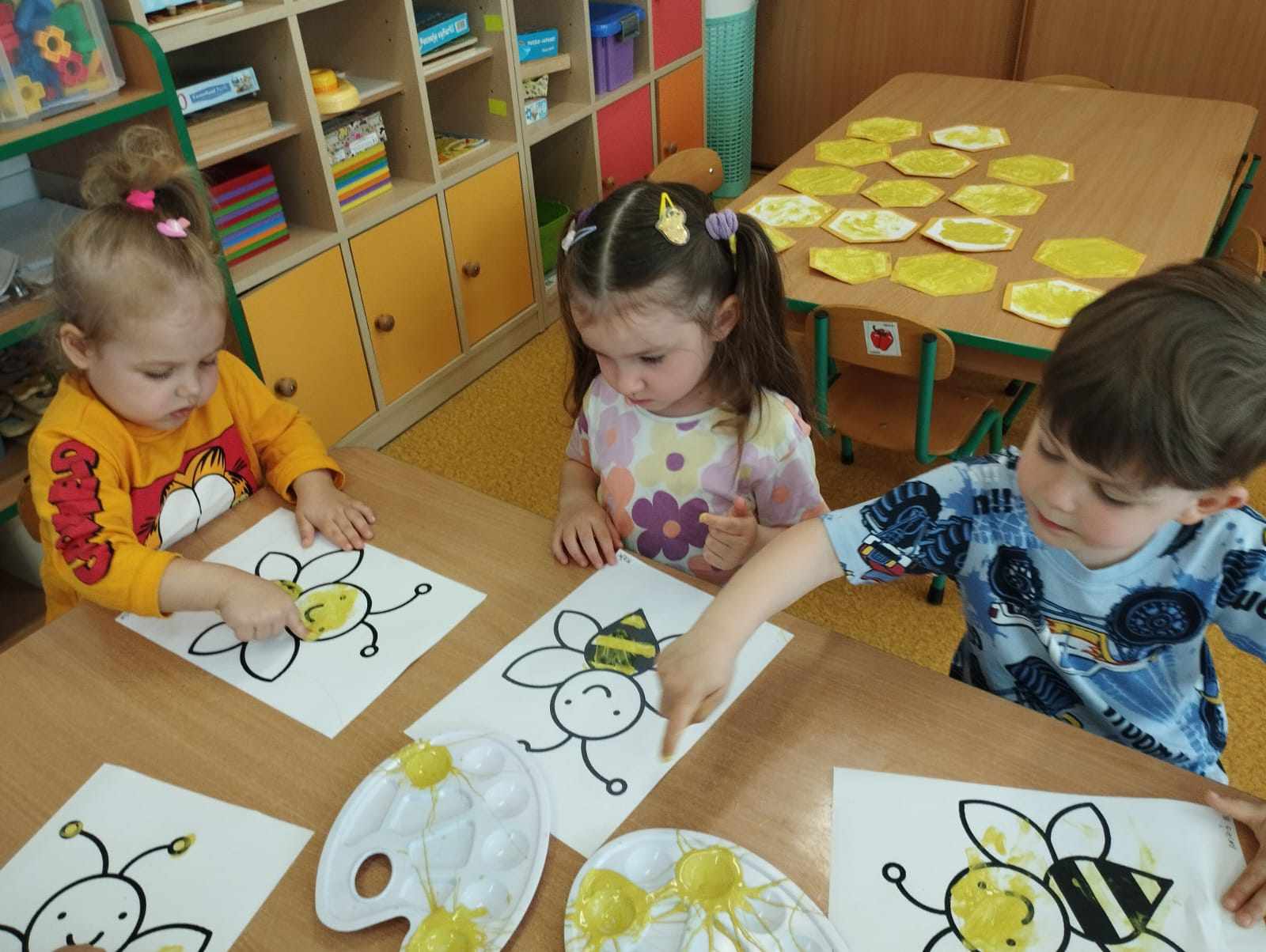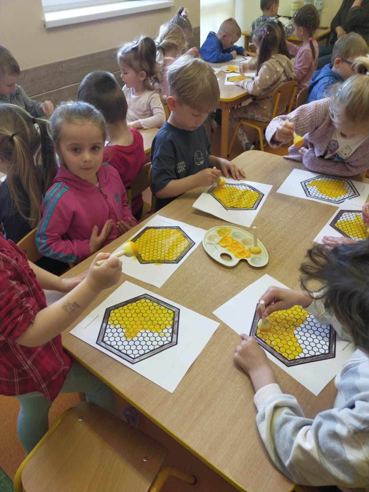 W naszym przedszkolu obchodziliśmy Dzień Pszczół, który był pełen radości, nauki i kreatywnych zabaw. Celem wydarzenia było przybliżenie dzieciom roli pszczół w przyrodzie oraz uwrażliwienie ich na potrzebę ochrony tych pożytecznych owadów.Dzieci brały udział w zajęciach plastycznych, podczas których tworzyły pszczółki, ule i kwiaty z różnych materiałów. Zabawach sensorycznych i smakowych, poznając miód wszystkimi zmysłami – jego zapach, smak i konsystencję. Edukacyjnych opowieściach o życiu pszczół – przedszkolaki dowiedziały się, jak wygląda cykl życia pszczoły i jak powstaje miód. Spacerze do parku, gdzie obserwowały „hotel dla owadów” i rozmawiały o tym, jak można pomagać pszczołom w mieście. Dzień był nie tylko pełen zabawy, ale także wartościowej wiedzy, którą dzieci z pewnością zapamiętają na długo.