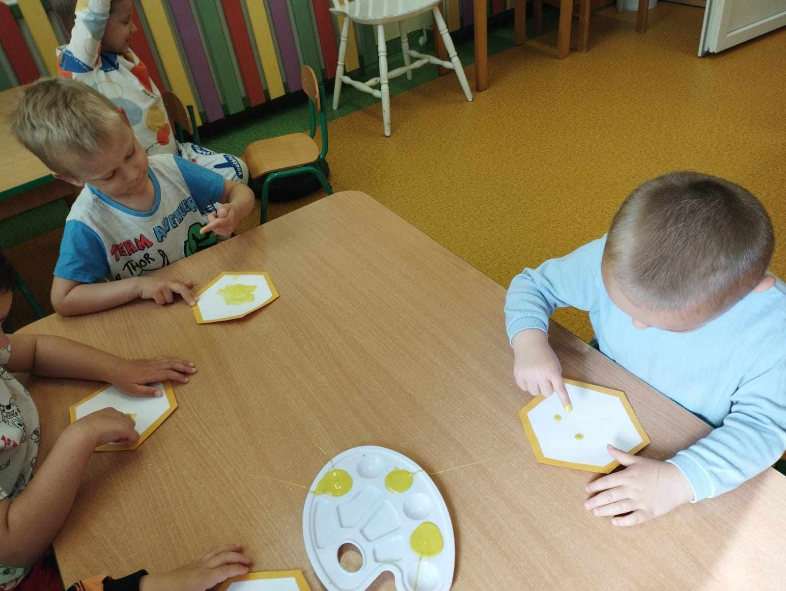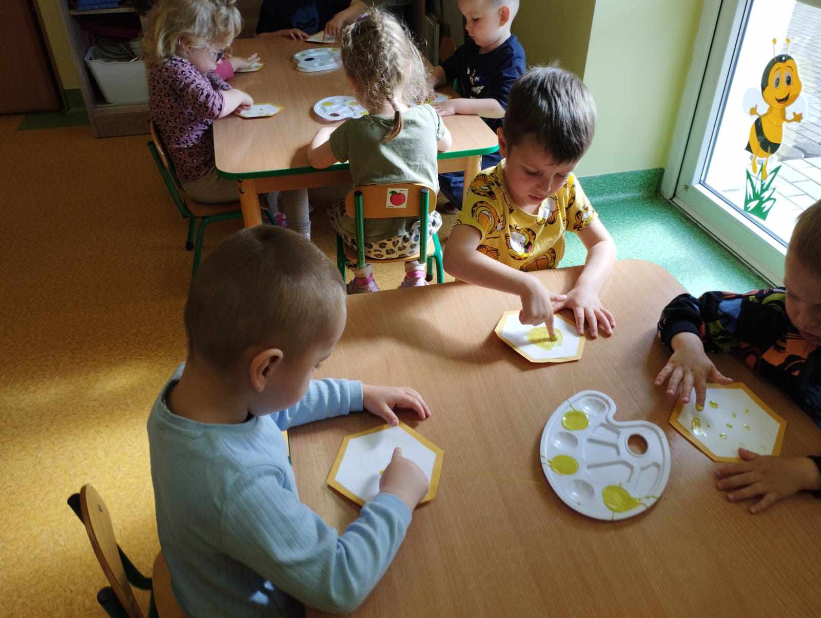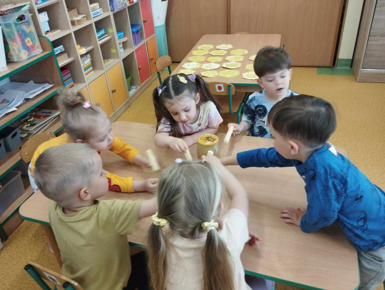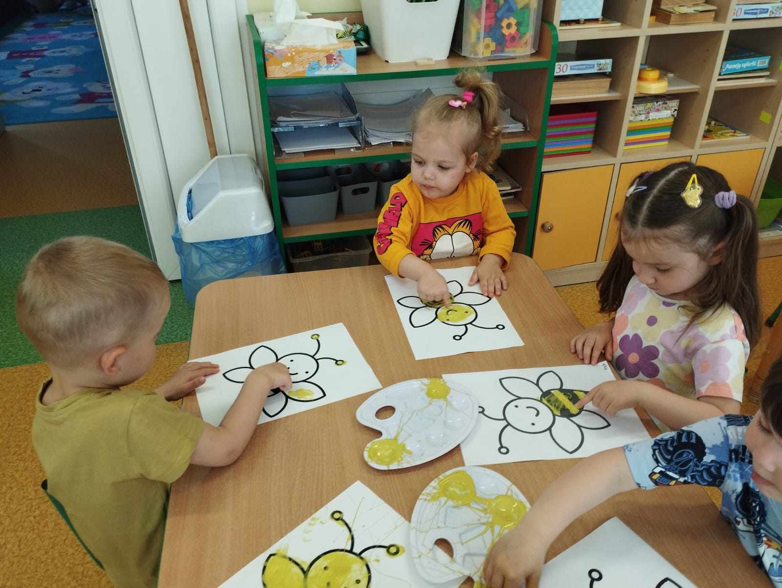 W naszym przedszkolu obchodziliśmy Dzień Pszczół, który był pełen radości, nauki i kreatywnych zabaw. Celem wydarzenia było przybliżenie dzieciom roli pszczół w przyrodzie oraz uwrażliwienie ich na potrzebę ochrony tych pożytecznych owadów.Dzieci brały udział w zajęciach plastycznych, podczas których tworzyły pszczółki, ule i kwiaty z różnych materiałów. Zabawach sensorycznych i smakowych, poznając miód wszystkimi zmysłami – jego zapach, smak i konsystencję. Edukacyjnych opowieściach o życiu pszczół – przedszkolaki dowiedziały się, jak wygląda cykl życia pszczoły i jak powstaje miód. Spacerze do parku, gdzie obserwowały „hotel dla owadów” i rozmawiały o tym, jak można pomagać pszczołom w mieście. Dzień był nie tylko pełen zabawy, ale także wartościowej wiedzy, którą dzieci z pewnością zapamiętają na długo.
