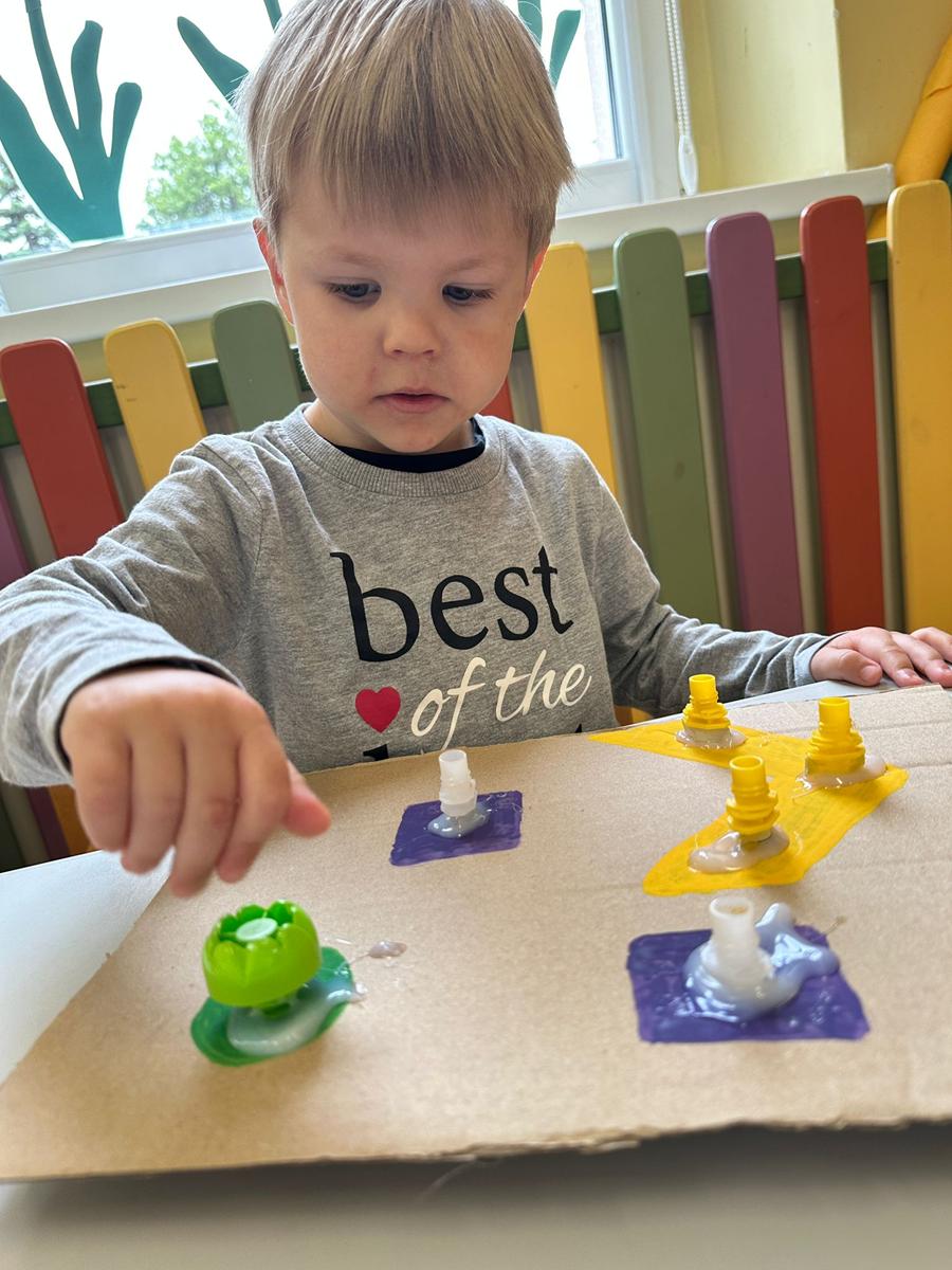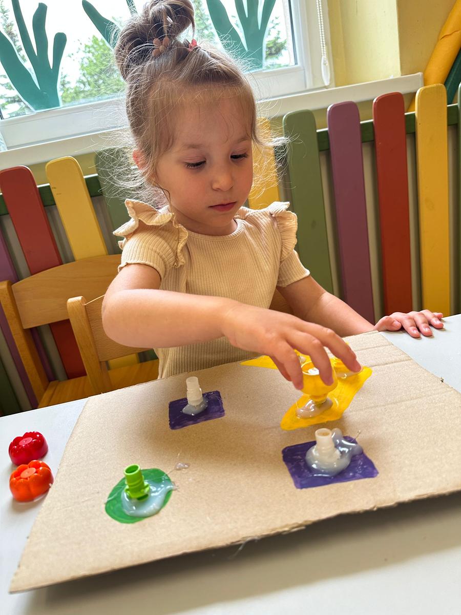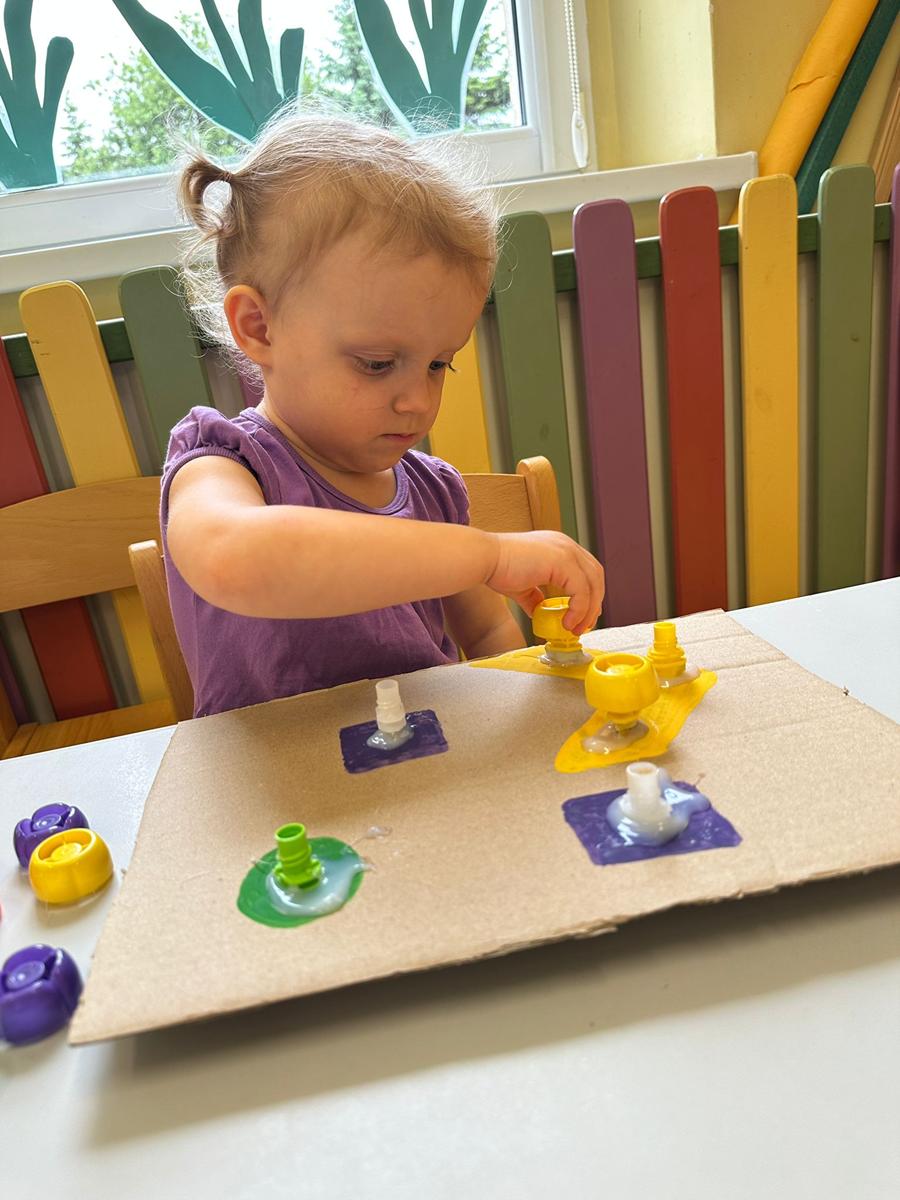 Zakręcanie nakrętek, szczególnie w zabawie, ma istotne znaczenie dla rozwoju dziecka, wpływając na jego umiejętności motoryczne i koordynację, a także na rozwój koncentracji i poczucia samodzielności. Dodatkowo dzieci miały za zadanie zakręcenie nakrętki w odpowiednim kolorze.