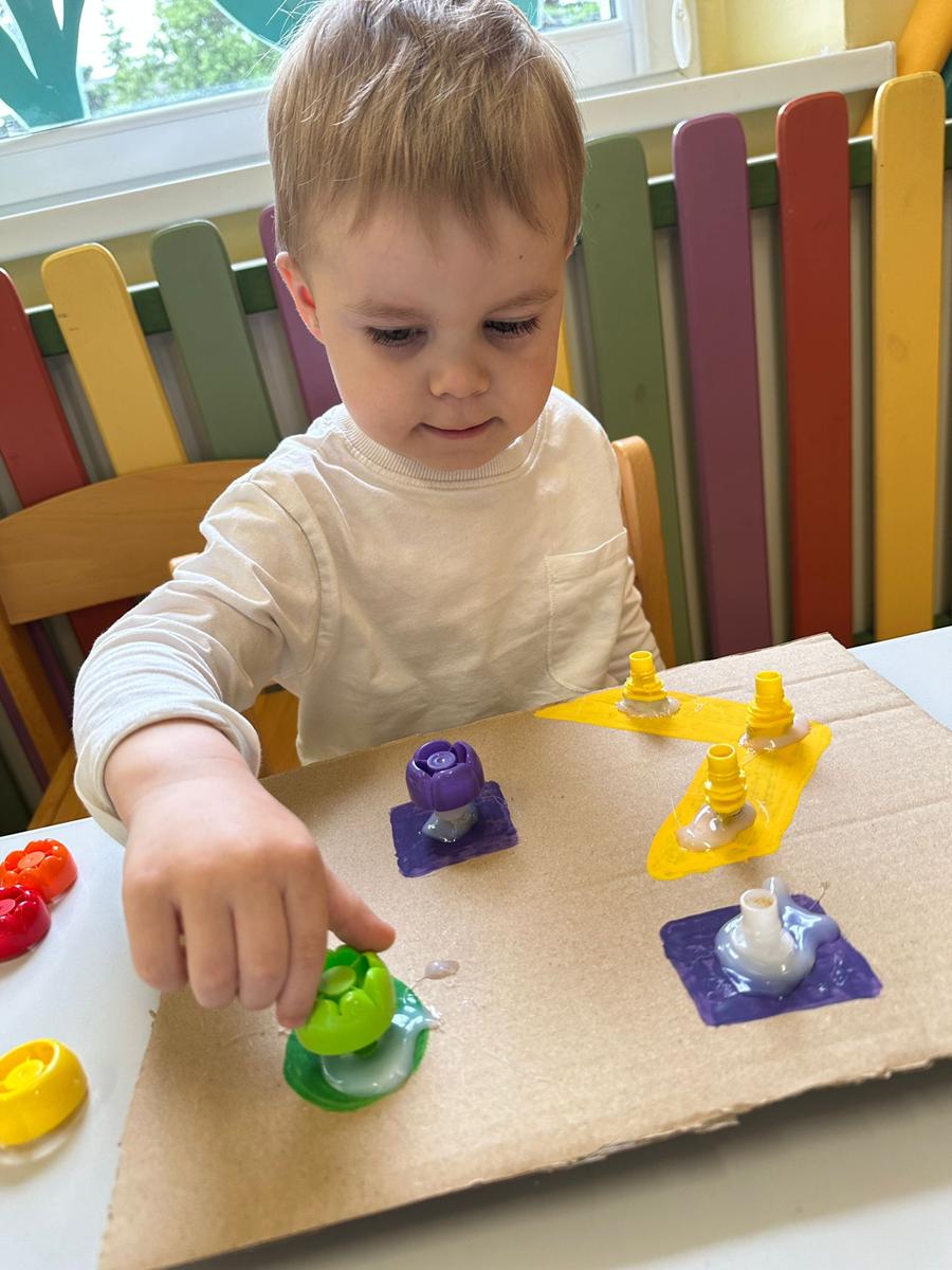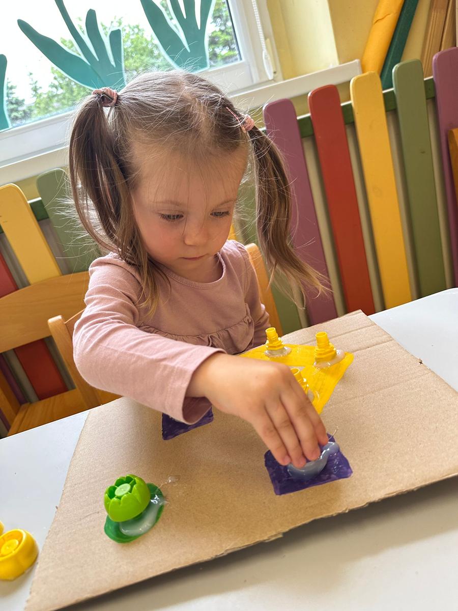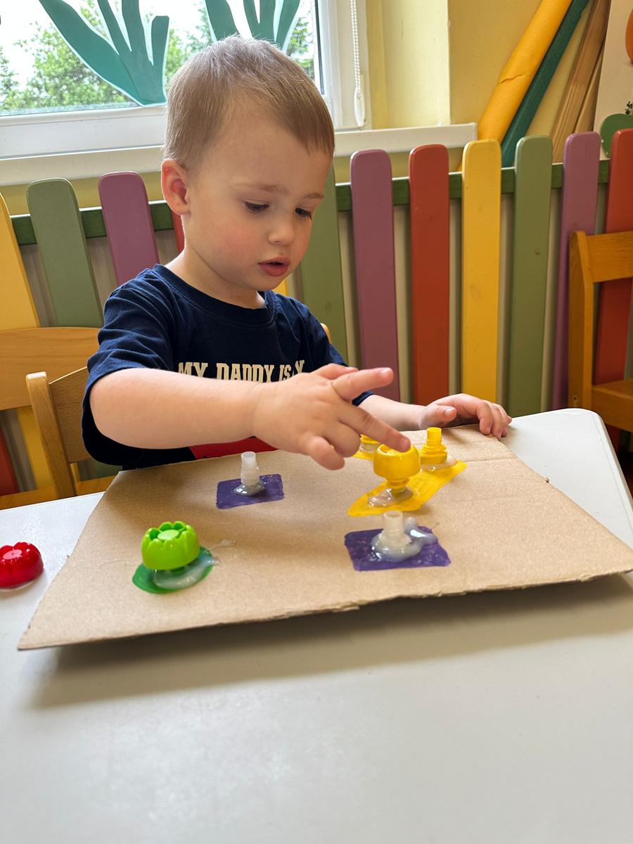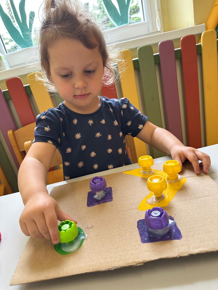 Zakręcanie nakrętek, szczególnie w zabawie, ma istotne znaczenie dla rozwoju dziecka, wpływając na jego umiejętności motoryczne i koordynację, a także na rozwój koncentracji i poczucia samodzielności. Dodatkowo dzieci miały za zadanie zakręcenie nakrętki w odpowiednim kolorze.