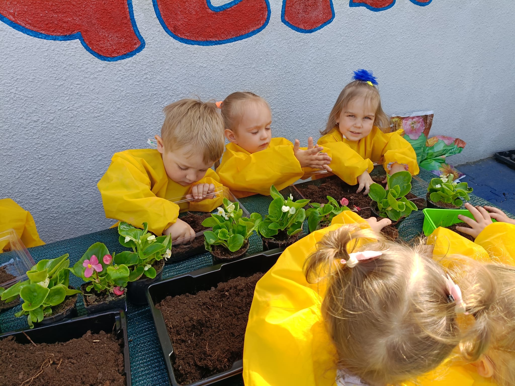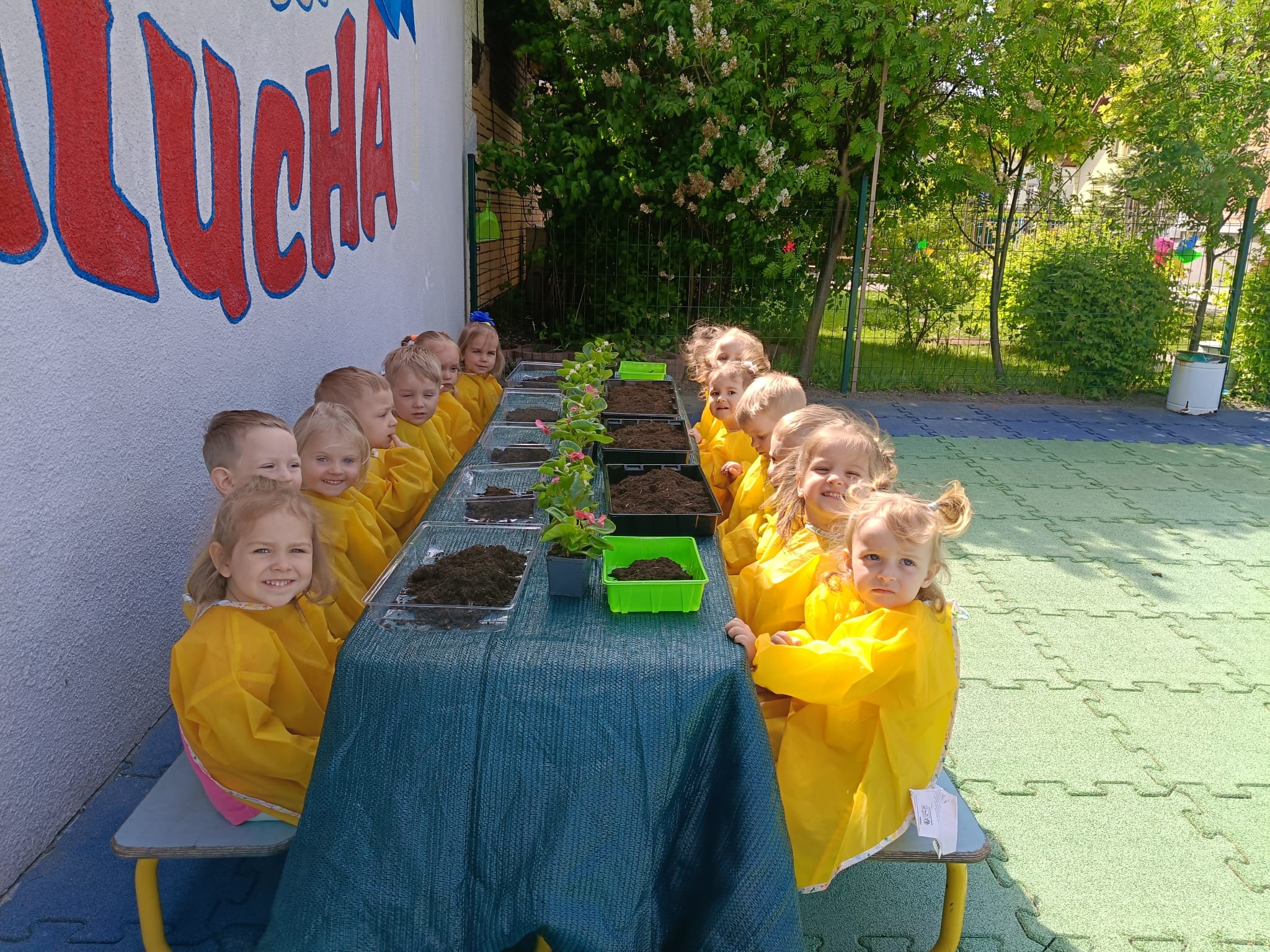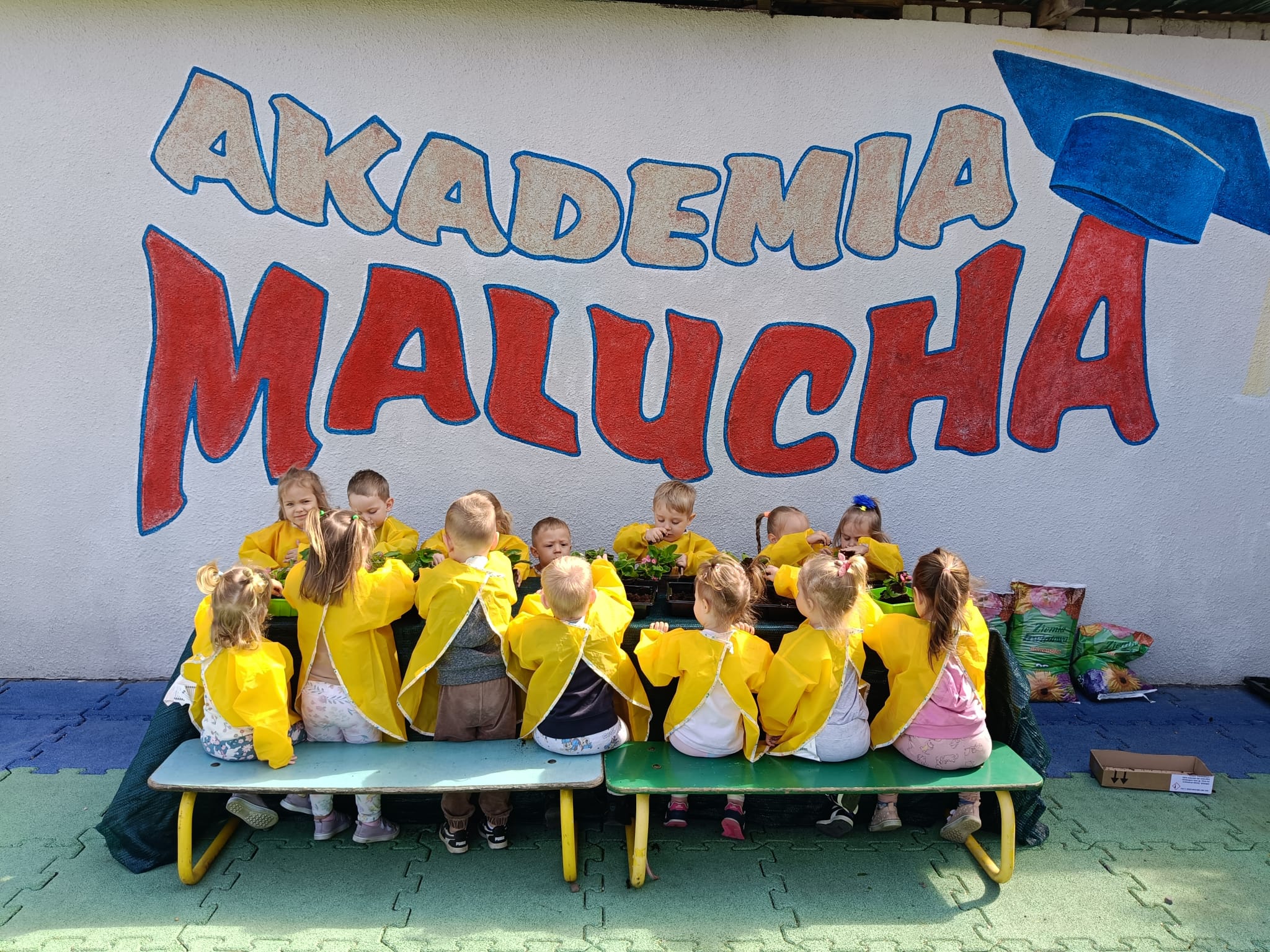 Mali ogrodnicy w grupie żłobkowej z Akademii Malucha