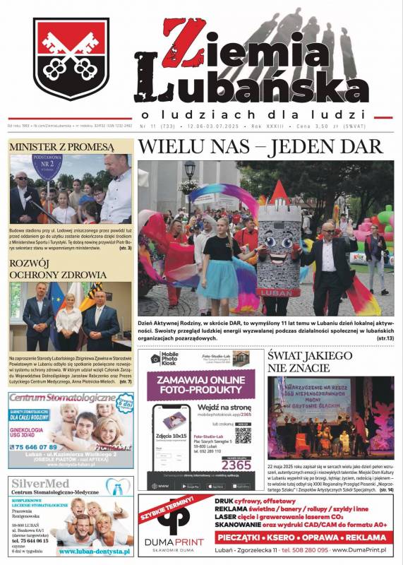 Na łamach gazety piszemy o wielu ważnych wydarzeniach i informacjach, m.in.: o Dniu Aktywnej Rodziny (z obszerną fotorelacją), o promesie z Ministerstwa Sportu i Turystyki na usunięcie skutków popowodziowych na stadionie przy ul. Ludowej, o 34. rocznicy powołania Straży Granicznej w OSS SG w Lubaniu, o rozwoju systemu ochrony zdrowia w Lubaniu, o XXXI Regionalnym Przeglądzie Piosenki "Nieprzetartego Szlaku" i Zespołów Artystycznych Szkół Specjalnych (z licznymi zdjęciami), o XVIII Międzynarodowych Igrzyskach Sportowych Osób Niepełnosprawnych w Lubaniu (również z galerią), o jubileuszu 35 lat samorządu, o Nocy Muzeów w Lubaniu, o jubileuszu 80 lat Szkoły Podstawowej nr 1 w Lubaniu (także z ciekawymi zdjęciami), o XXV gali laureatów powiatowych konkursów, o jubileuszu 500 lat Reformacji w Lubaniu, o Festiwalu Twórczości Dziecięcej SZKRAB w Lubaniu, o przygotowaniach do jubileuszu 80-lecia Miejskiego Domu Kultury w Lubaniu - w tym o wyjątkowej w sakli kraju ceramicznej płaskorzeźbie Włodzimierza Boruńskiego, która od września znajdzie się w otwartej Galerii im. Włodzimierza Boruńskiego w Miejskim Domu Kultury i o wielu innych ważnych sprawach...