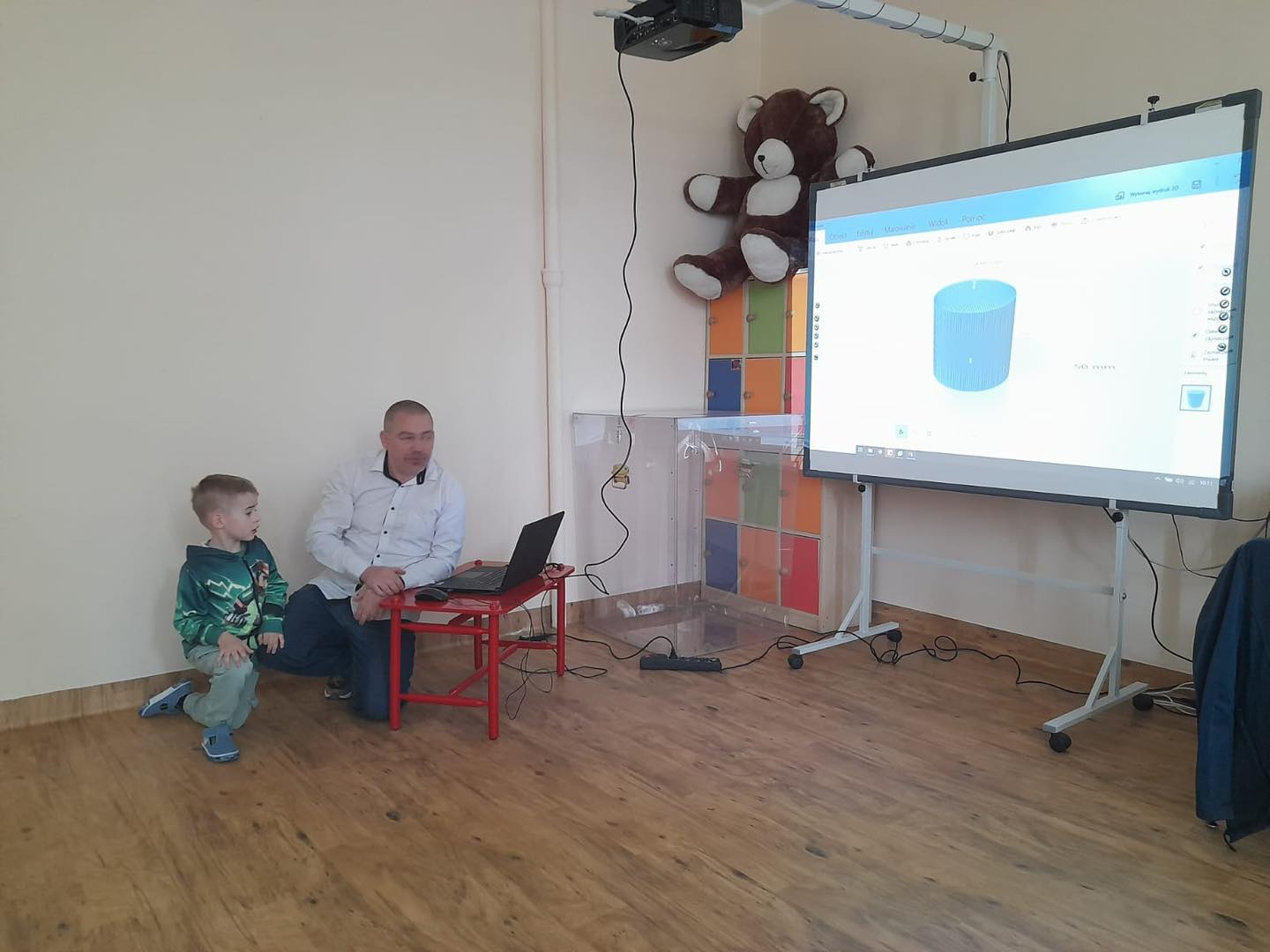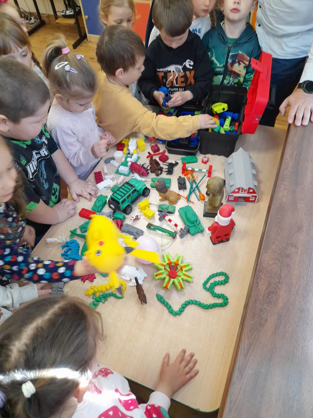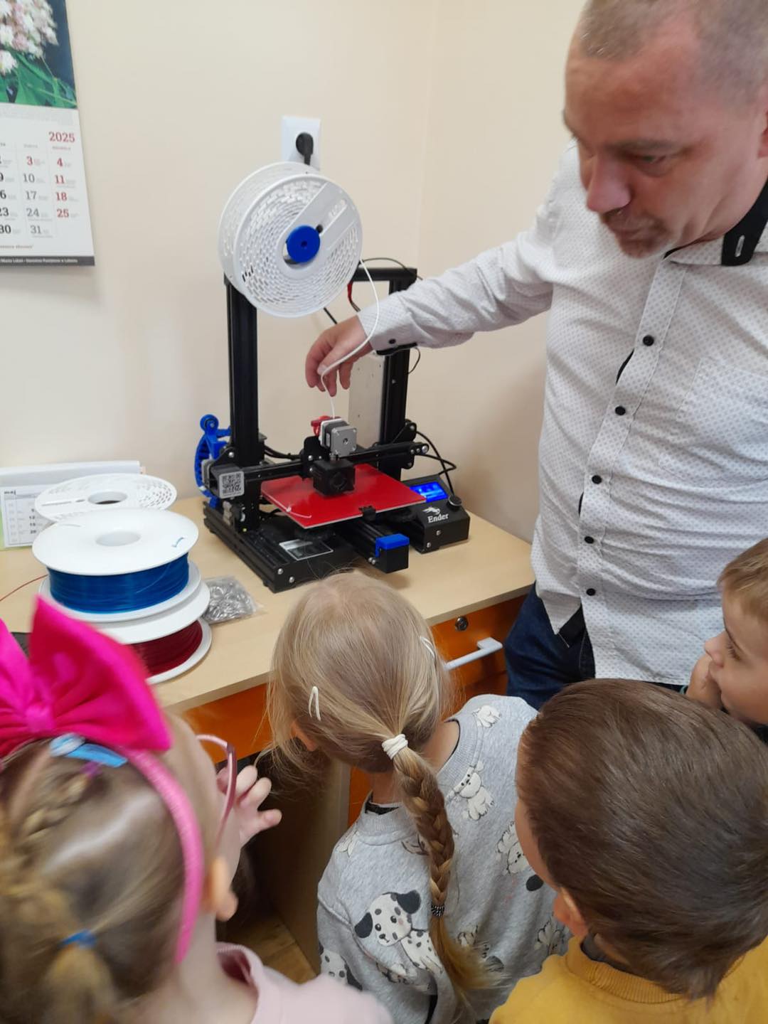 Dzisiaj grupę 4 latków odwiedził tata Kubusia, Pan Adam, który pokazał dzieciom drukarkę 3D, za pomocą której można wydrukować np. różnego rodzaju figurki, zabawki, przedmioty itp. Dzieci z zainteresowaniem słuchały, w jaki sposób można wydrukować trójwymiarową rzecz. Pan Adam bardzo ciekawie opowiadał o swojej pasji, która niezwykle zaciekawiła dzieci. Ponadto mogliśmy zobaczyć, dotknąć i pobawić się zabawkami, które stworzył tata Kuby. To niezwykle, pouczające przeżycie za które bardzo dziękujemy Panu Adamowi.