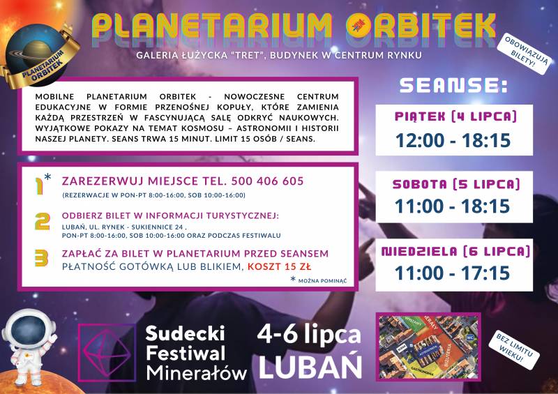 Już można rezerwować wizytę w ORBITEK - Mobilne Planetarium w Przedszkolu i Szkole , które odwiedzi nas w trakcie sudeckiego Festiwalu Minerałów!