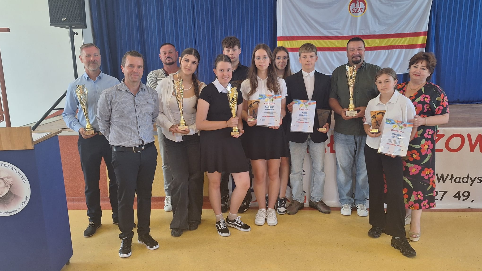 W dniu 24 czerwca, w Zespole Szkół Ponadpodstawowych im. Adama Mickiewicza w Lubaniu, odbyło się uroczyste podsumowanie współzawodnictwa sportowego szkół w kategorii dziewcząt oraz chłopców – w ramach Igrzysk Dzieci i Młodzieży Szkolnej. W kategorii Igrzysk Dzieci uczniowie naszej szkoły zajęli zacne II miejsce wśród dziewcząt i III pozycję wśród chłopców. Natomiast w kategorii Igrzysk Młodzieży Szkolnej SP1 uplasowała się na zaszczytnym II miejscu wśród dziewcząt i bardzo prestiżowym I w rywalizacji chłopców. Przedstawicielom wyróżnionych placówek wręczono też okolicznościowe puchary za poszczególne pozycje w ostatecznej klasyfikacji. Ponadto uczniowie lubańskiej Jedynki otrzymali pamiątkowe statuetki, a byli to: Vanessa Grześków (5b), Jeremi Paluch (6c), Karolina Markudis (8a) oraz Kacper Świderski (8c). Warto przypomnieć, że sportowa rywalizacja, w obu kategoriach ww. Igrzysk, toczyła się przez cały rok szkolny, tj. od września 2024 r. do czerwca 2025 r.