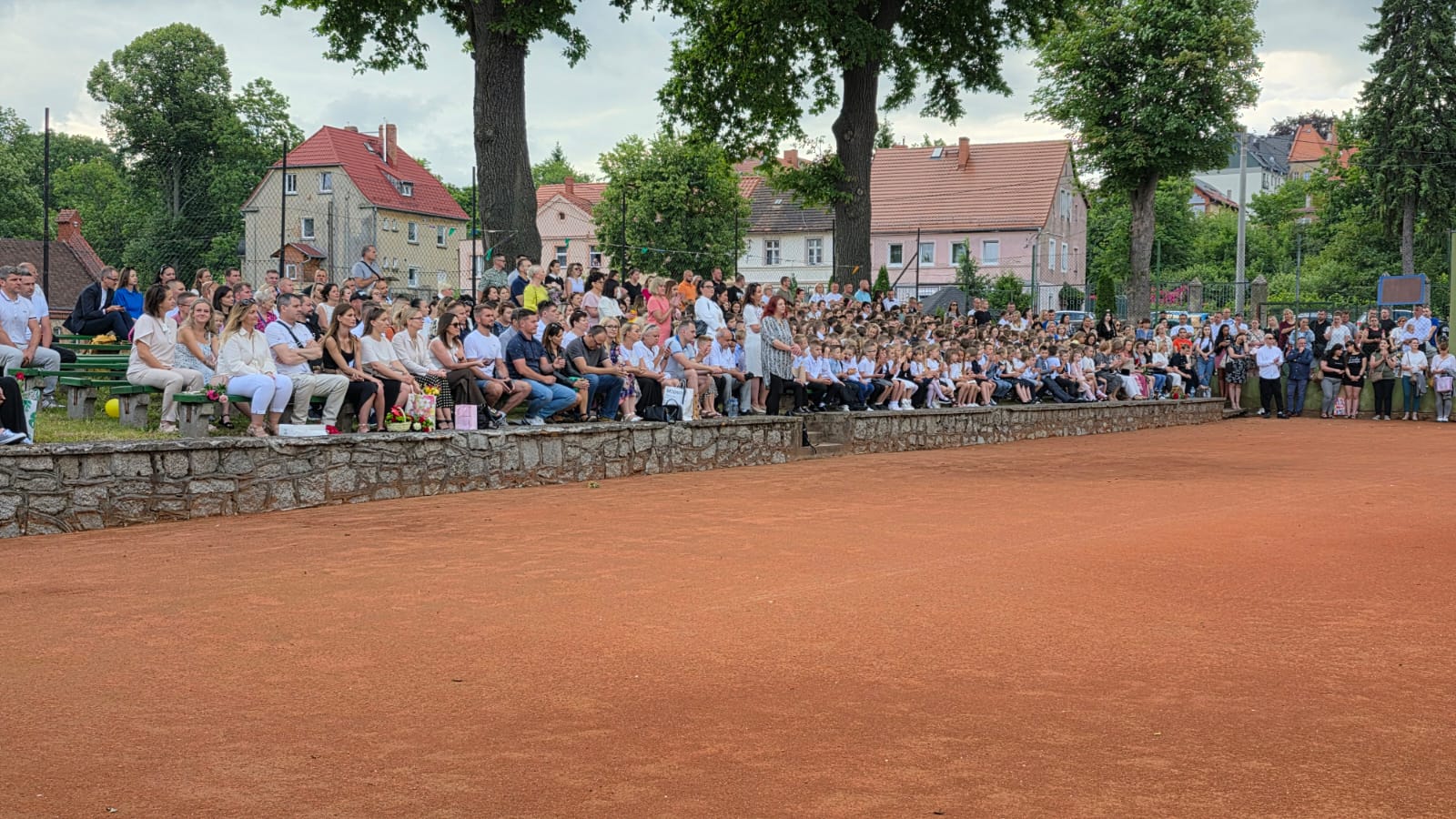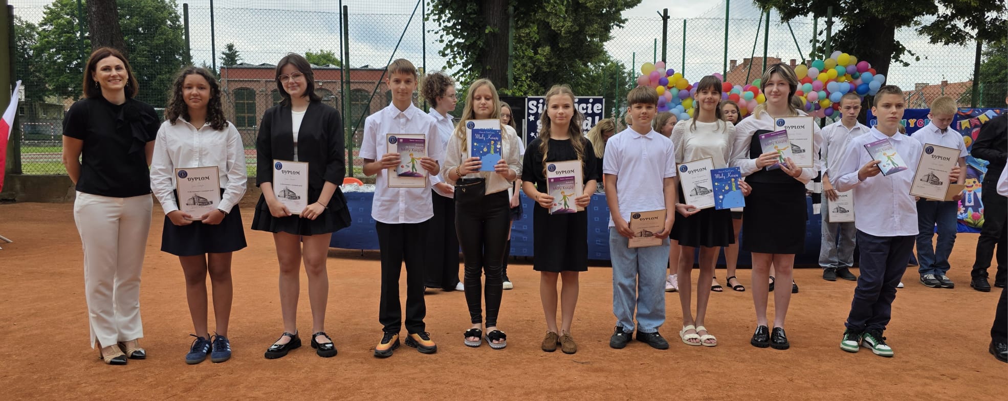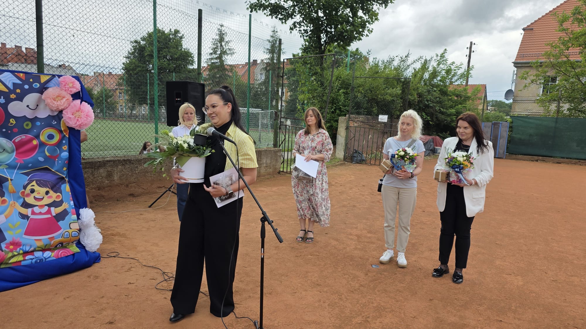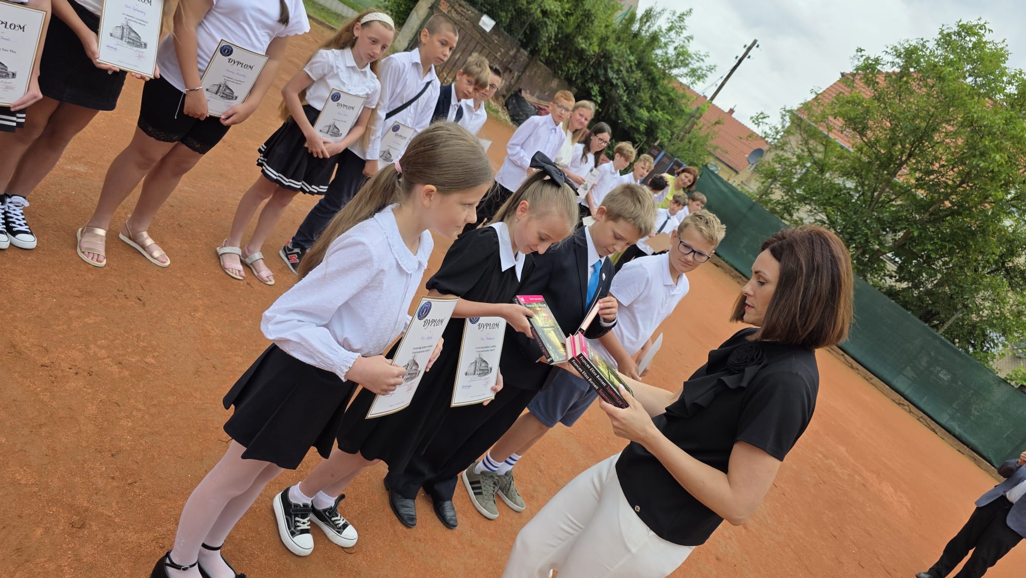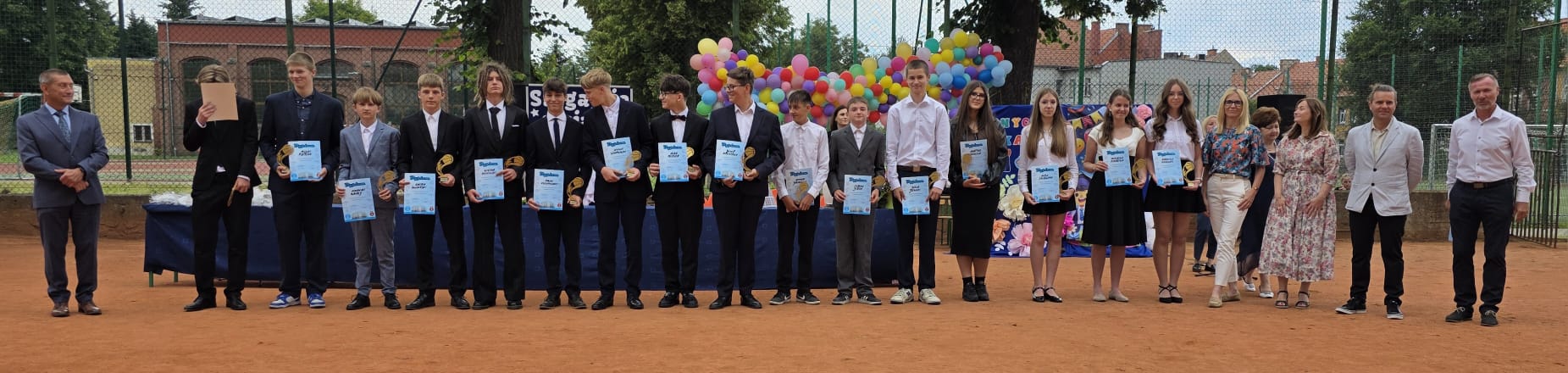 W letni, słoneczny piątek (27 czerwca), w SP1, odbyły się uroczyste zakończenia roku szkolnego 2024/2025 w turach dla kl. I-V i VI-VIII. Najpierw Pani Dyrektor Jedynki Beata Myśliwiec serdecznie podziękowała wszystkim za trud, starania oraz pracę wykonaną przez ostatnich 10 miesięcy. Później wręczyła wyróżniającym się uczniom nagrody i świadectwa z czerwonym paskiem, a także pogratulowała licznych sukcesów. Szczególnym momentem apelów były występy artystyczne, w tym pożegnanie czterech wyjątkowych klas: 8abcd, które całą uroczystość uświetniły przepięknym odtańczeniem poloneza. Szczególne i serdeczne podziękowania należą się rodzicom naszych uczniów za wszelką udzielaną nam pomoc, a także życzliwą współpracę. Dziękujemy pięknie wszystkim za kolejny, owocny rok szkolny. Życzymy całej społeczności SP1 – bezpiecznych, pogodnych, pełnych radości i relaksu wakacji! Do zobaczenia już niebawem, tj. 1 września!