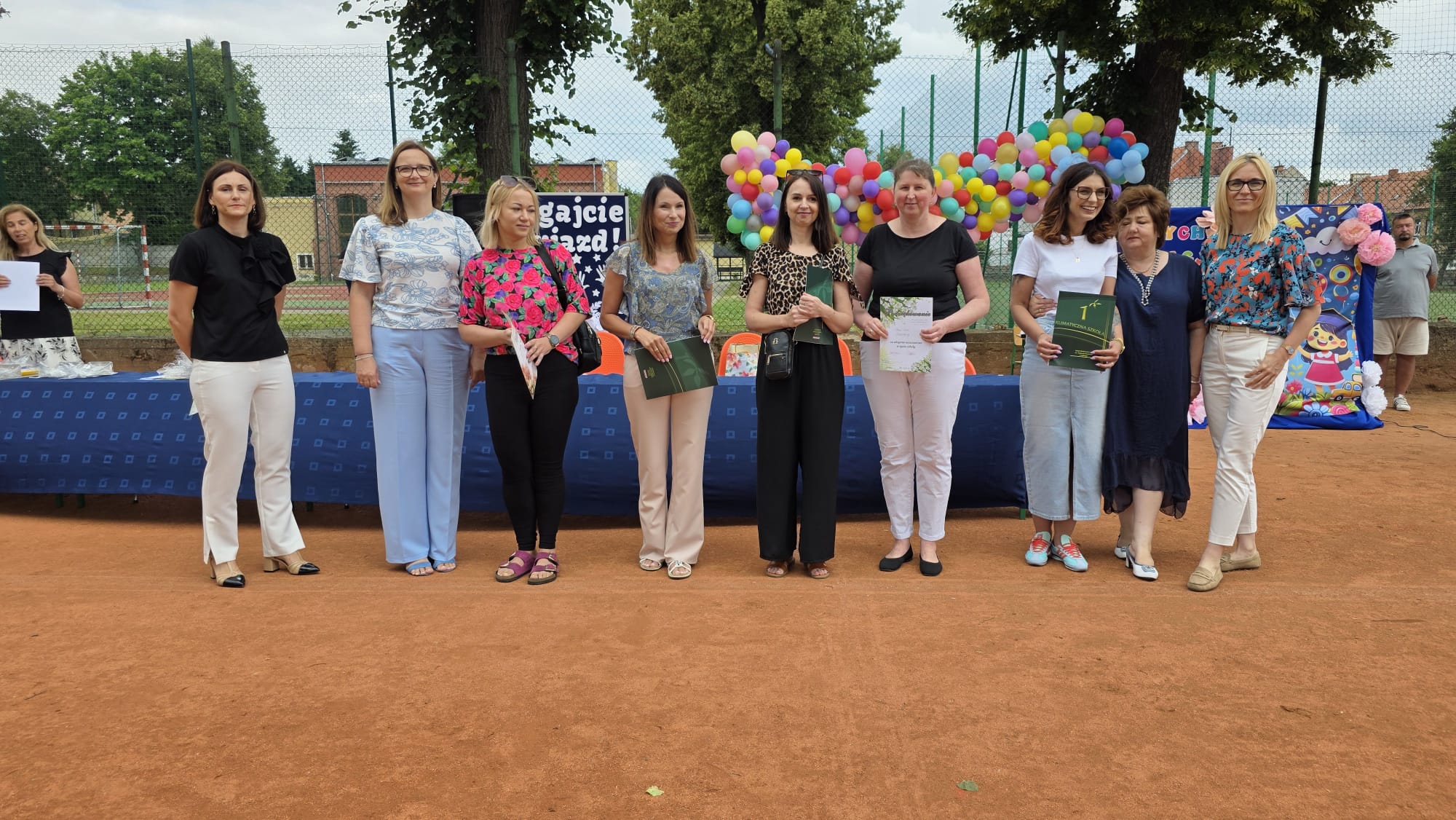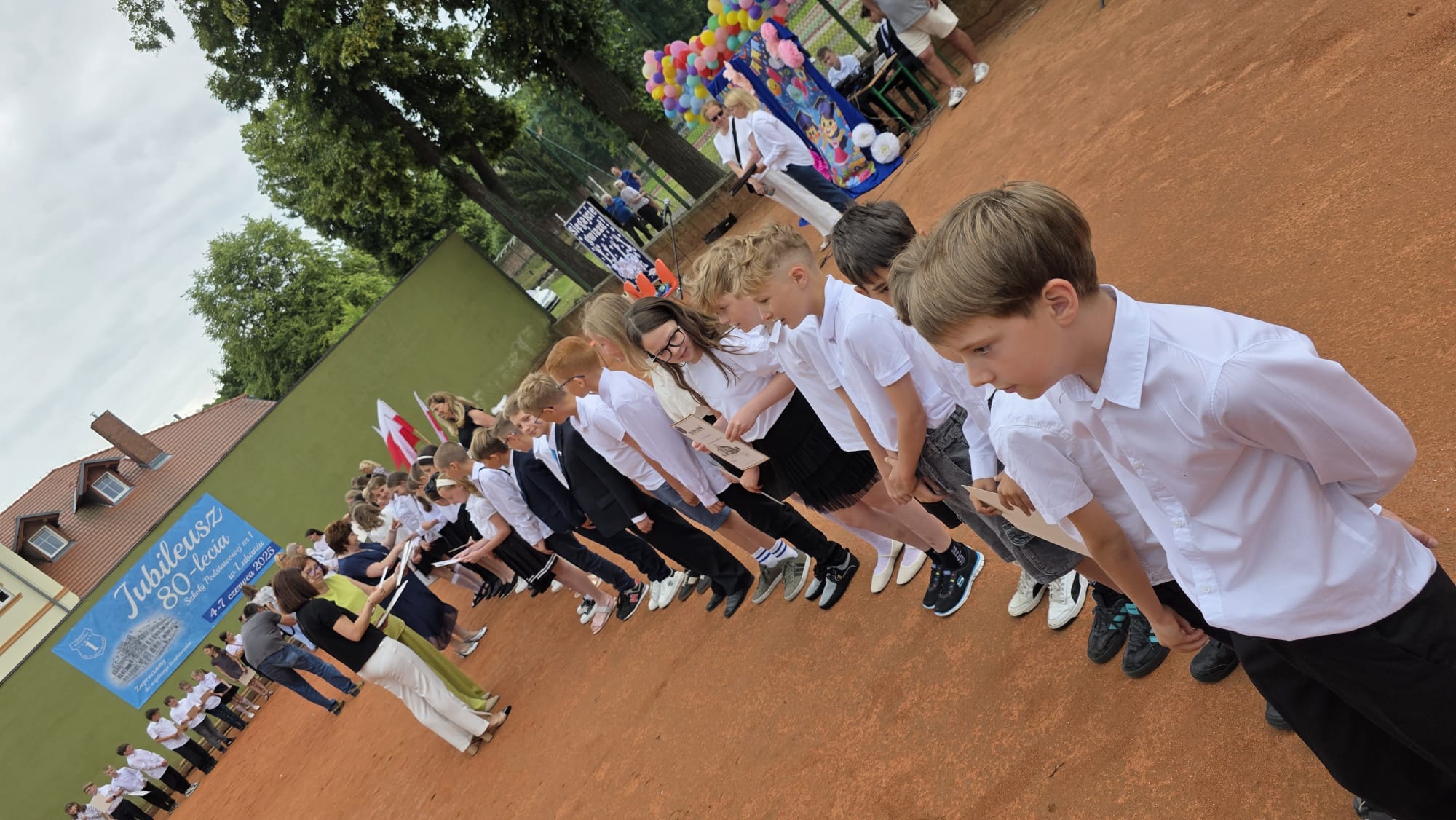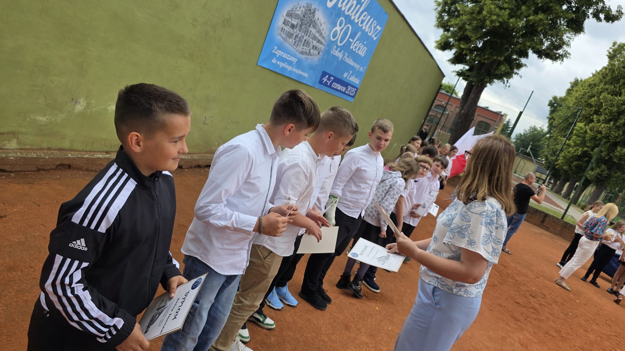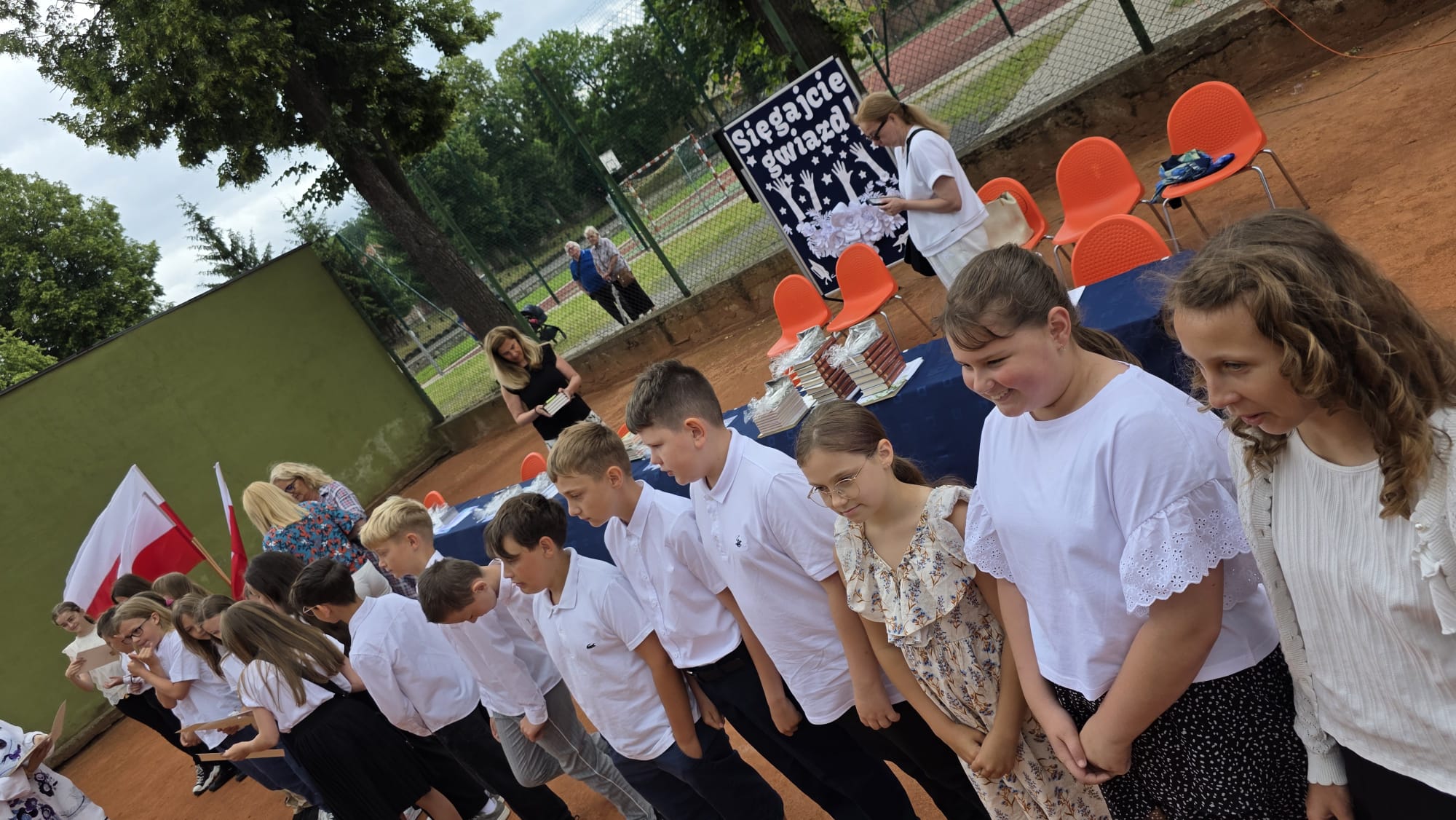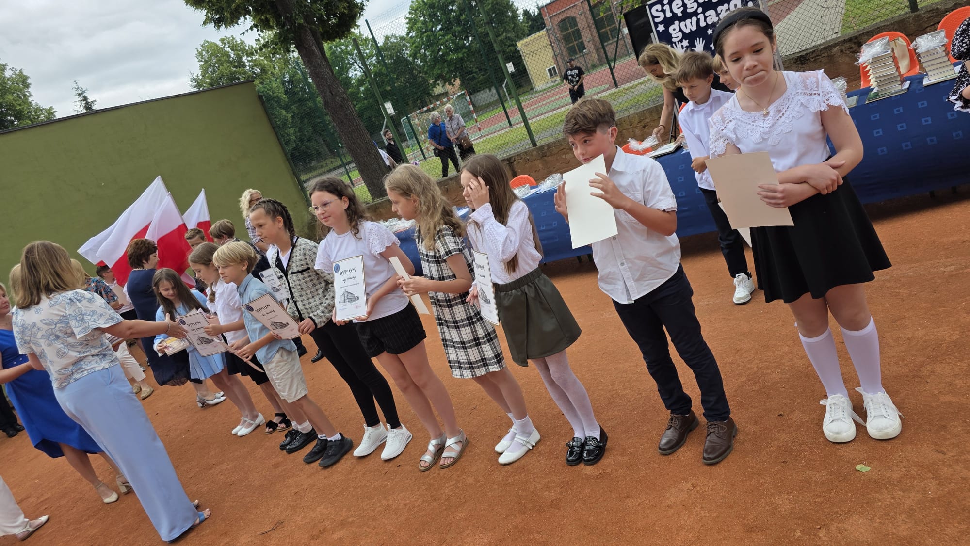 W letni, słoneczny piątek (27 czerwca), w SP1, odbyły się uroczyste zakończenia roku szkolnego 2024/2025 w turach dla kl. I-V i VI-VIII. Najpierw Pani Dyrektor Jedynki Beata Myśliwiec serdecznie podziękowała wszystkim za trud, starania oraz pracę wykonaną przez ostatnich 10 miesięcy. Później wręczyła wyróżniającym się uczniom nagrody i świadectwa z czerwonym paskiem, a także pogratulowała licznych sukcesów. Szczególnym momentem apelów były występy artystyczne, w tym pożegnanie czterech wyjątkowych klas: 8abcd, które całą uroczystość uświetniły przepięknym odtańczeniem poloneza. Szczególne i serdeczne podziękowania należą się rodzicom naszych uczniów za wszelką udzielaną nam pomoc, a także życzliwą współpracę. Dziękujemy pięknie wszystkim za kolejny, owocny rok szkolny. Życzymy całej społeczności SP1 – bezpiecznych, pogodnych, pełnych radości i relaksu wakacji! Do zobaczenia już niebawem, tj. 1 września!