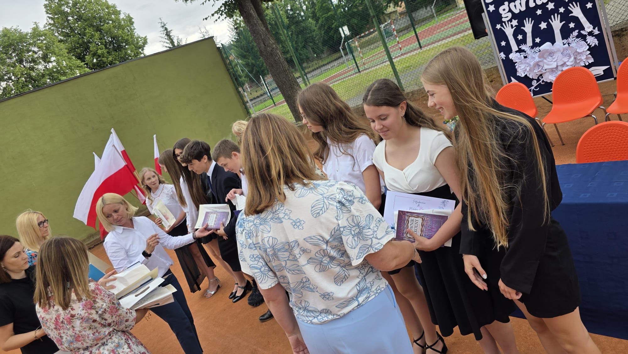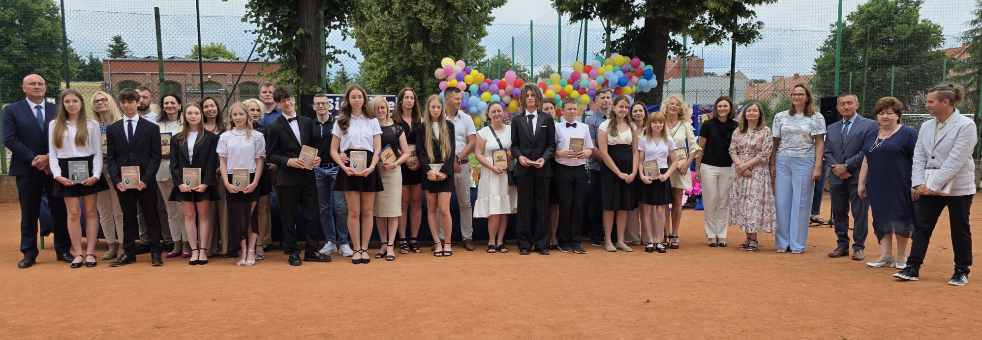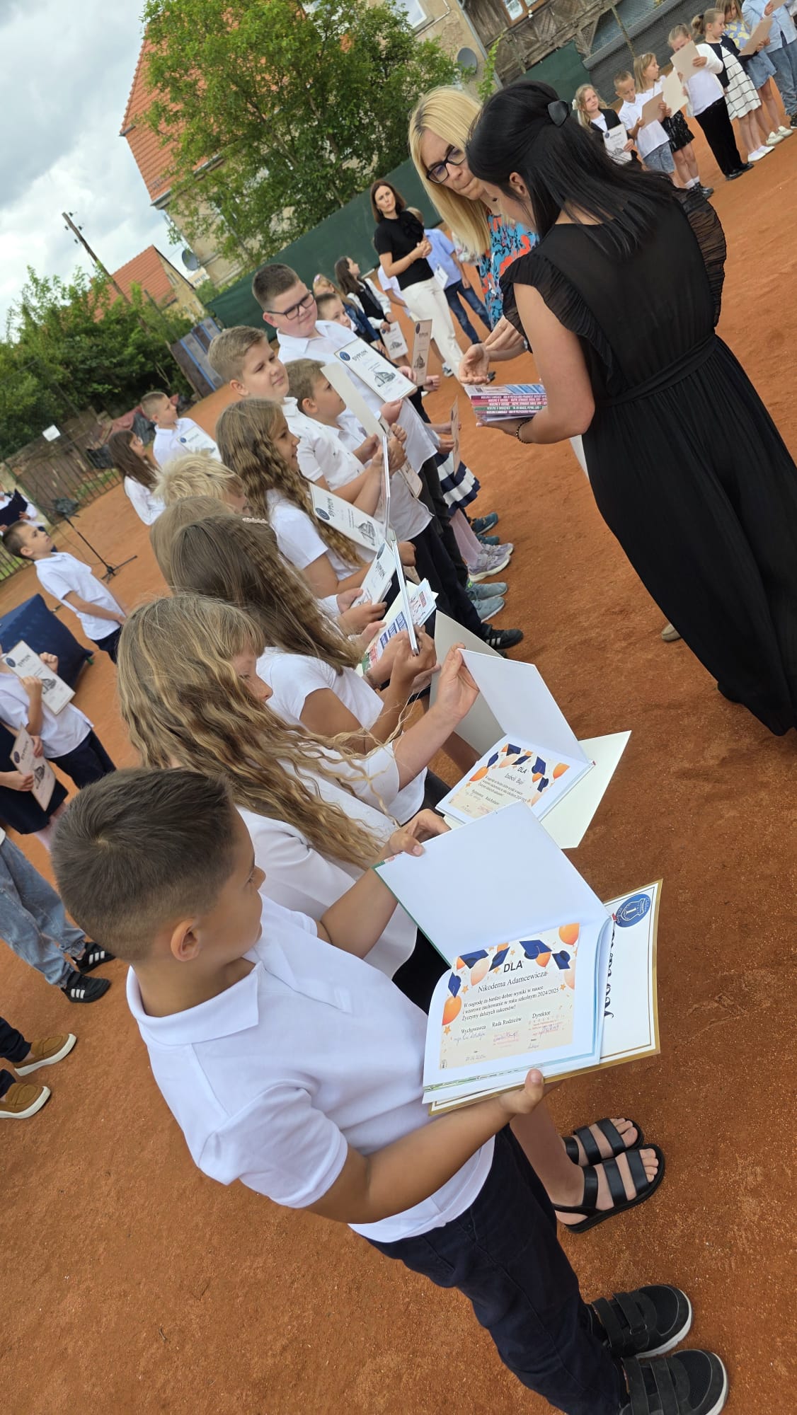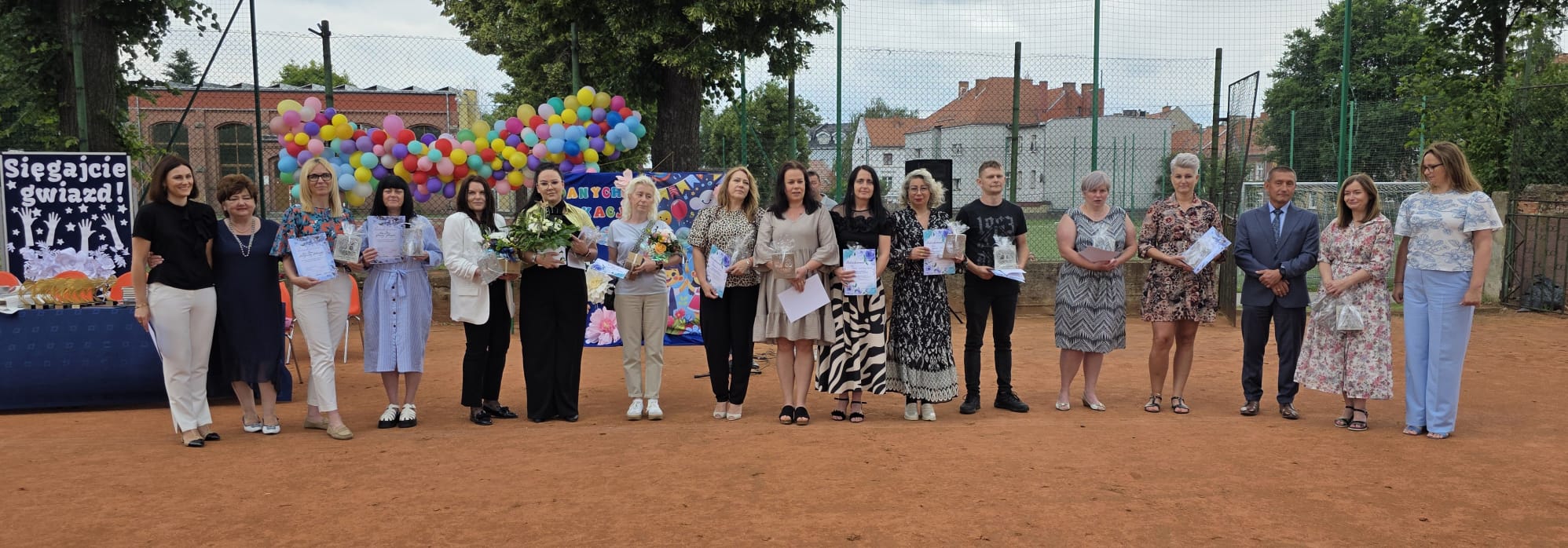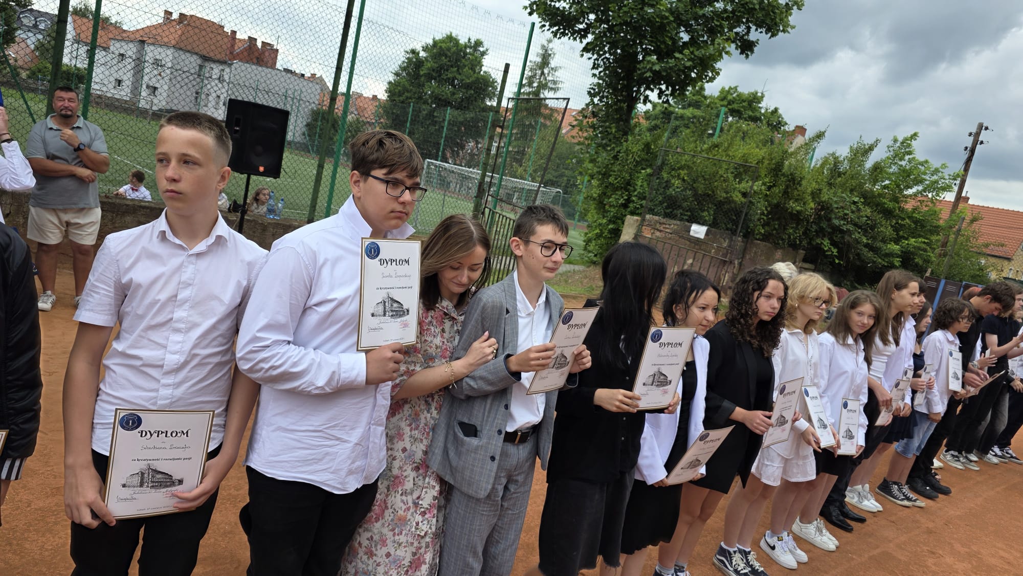 W letni, słoneczny piątek (27 czerwca), w SP1, odbyły się uroczyste zakończenia roku szkolnego 2024/2025 w turach dla kl. I-V i VI-VIII. Najpierw Pani Dyrektor Jedynki Beata Myśliwiec serdecznie podziękowała wszystkim za trud, starania oraz pracę wykonaną przez ostatnich 10 miesięcy. Później wręczyła wyróżniającym się uczniom nagrody i świadectwa z czerwonym paskiem, a także pogratulowała licznych sukcesów. Szczególnym momentem apelów były występy artystyczne, w tym pożegnanie czterech wyjątkowych klas: 8abcd, które całą uroczystość uświetniły przepięknym odtańczeniem poloneza. Szczególne i serdeczne podziękowania należą się rodzicom naszych uczniów za wszelką udzielaną nam pomoc, a także życzliwą współpracę. Dziękujemy pięknie wszystkim za kolejny, owocny rok szkolny. Życzymy całej społeczności SP1 – bezpiecznych, pogodnych, pełnych radości i relaksu wakacji! Do zobaczenia już niebawem, tj. 1 września!